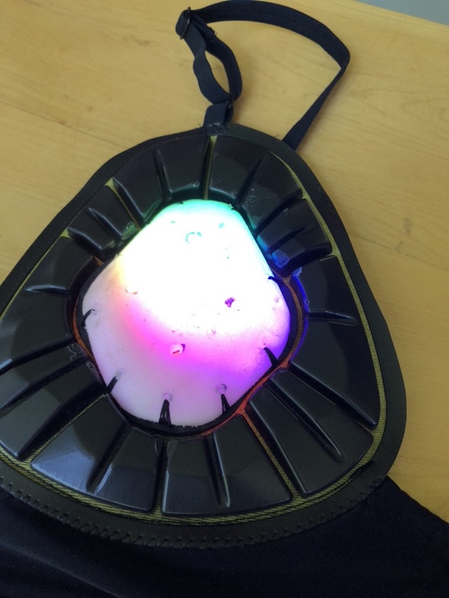 for fun .. I also created an Ironman-like back light he can wear under it when he’s not playing.