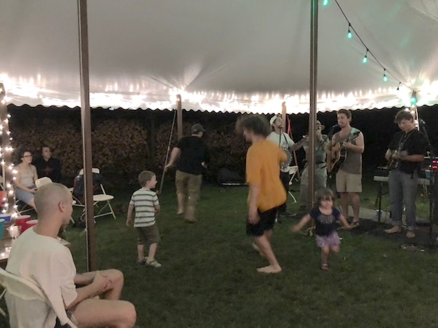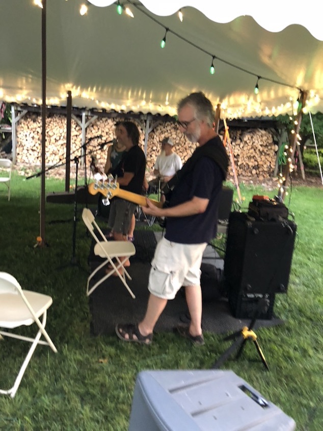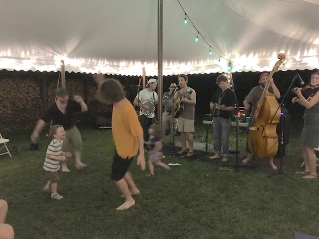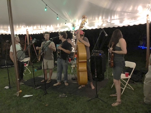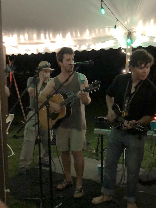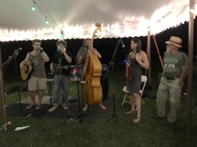 outside band number 2 ‘Paps Porch’ great blue grass was playing.. Our friend Jane sat in on fiddle.. and Ozzie.. who used to go to school in the house played harmonica.. they were excellent !