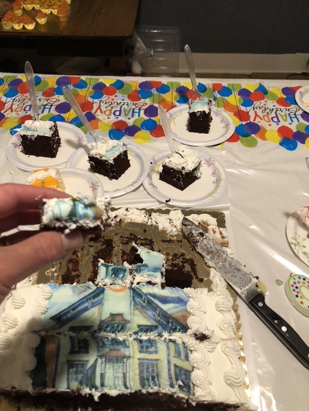 then we went in and cut the cool cakes diane had made.. 4 different cakes with 4 different pictures of the house !