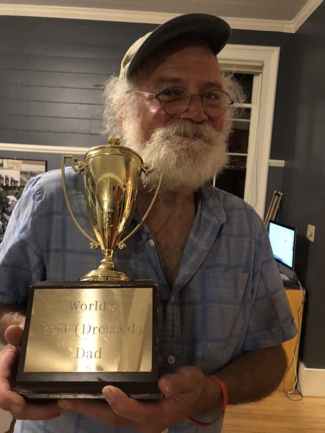 max gave me a surprise.. it’s a trouphy soemone brang to oe of his smashtruck events.. at smash truck people bring things sp they can smash them with sledgehammers and crowbars.. Max saved this from the wrecker because he thought I deserved it (Bessed dressed dad.. LOL !)
