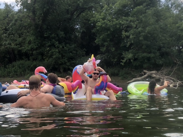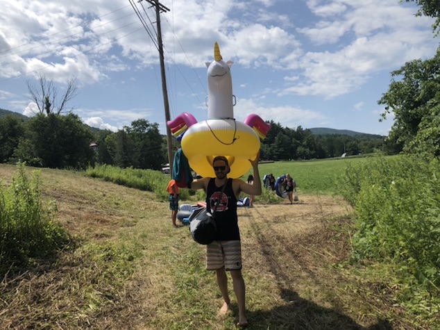 I woke around 6:30 AM on Saturday after going to bed at 3:30 AM. Once again we were partial hosts of the FLoataplooza .. t’s a charity event where 300 (maybe more) people donate for the pleasure of floating 4 hours down the Winooski from basically our front yard.