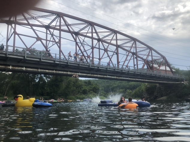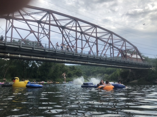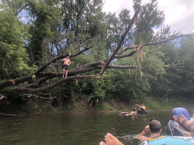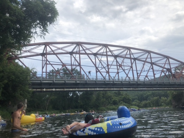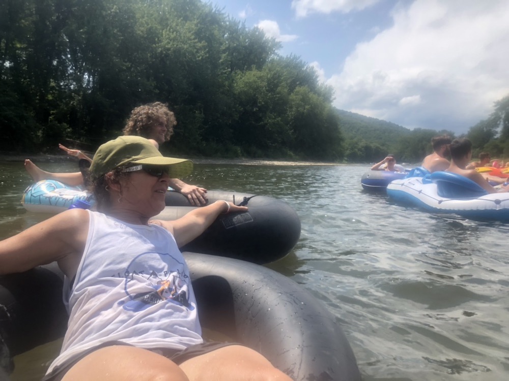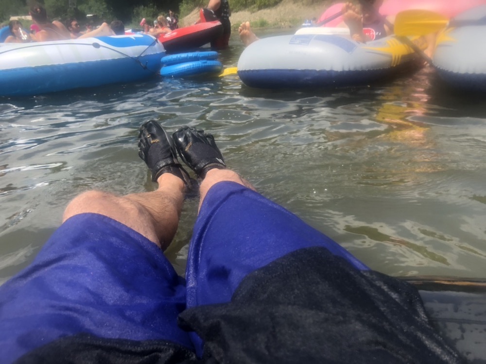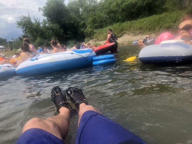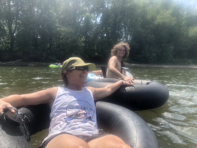 it took 4 hours to float down.. it was mostly warm.. but a cool wind broke out near the end.. it actually blew us a little way up river before diane pulled us around the bend.