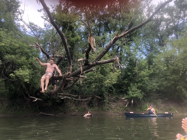 at one point we stopped to let a few of our folsk jump off a fallen tree.. here’s Ian showing great form