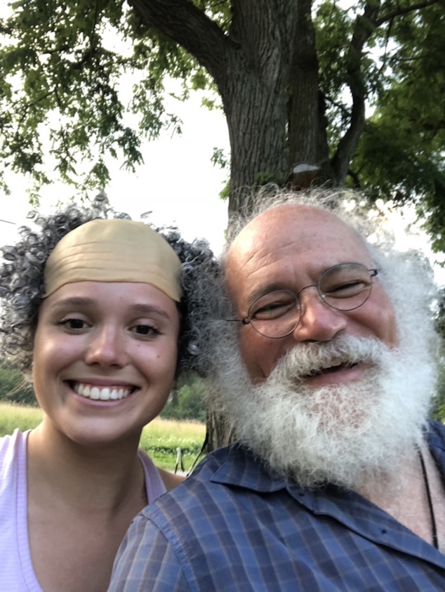 our garage sale was still goign on.. freind Kira tried on the bald scientist wig.. what do you thinK ? Can you tell who’s who ?