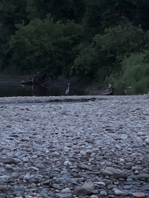 revived by a short hike to the river with DIane and the dogs tonight. we saw 2 beautiful heron’s .. here’s one of them. hope oyu can see