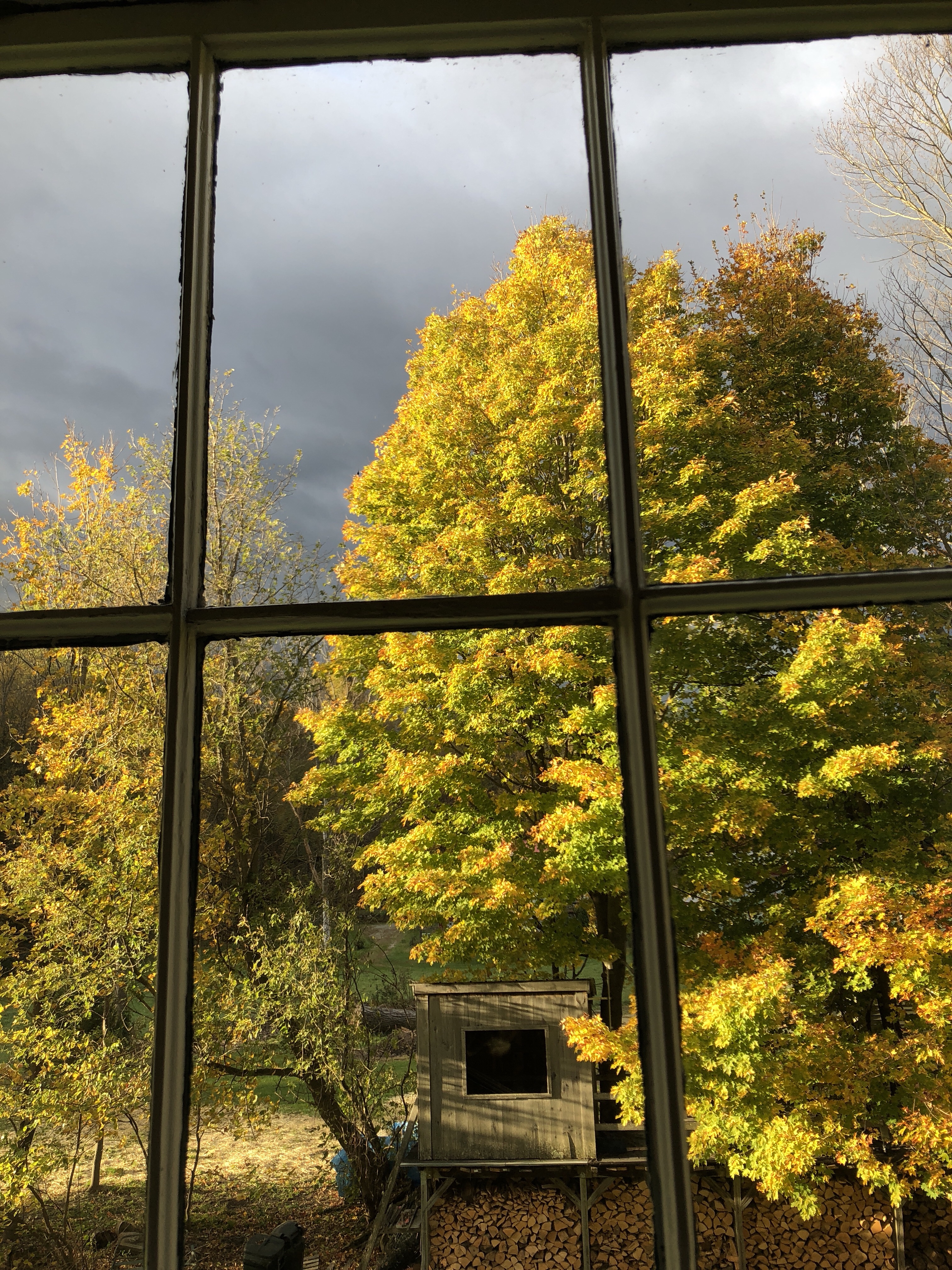 Outside was beautiful… Gray skies highlighting the few leaves that are left