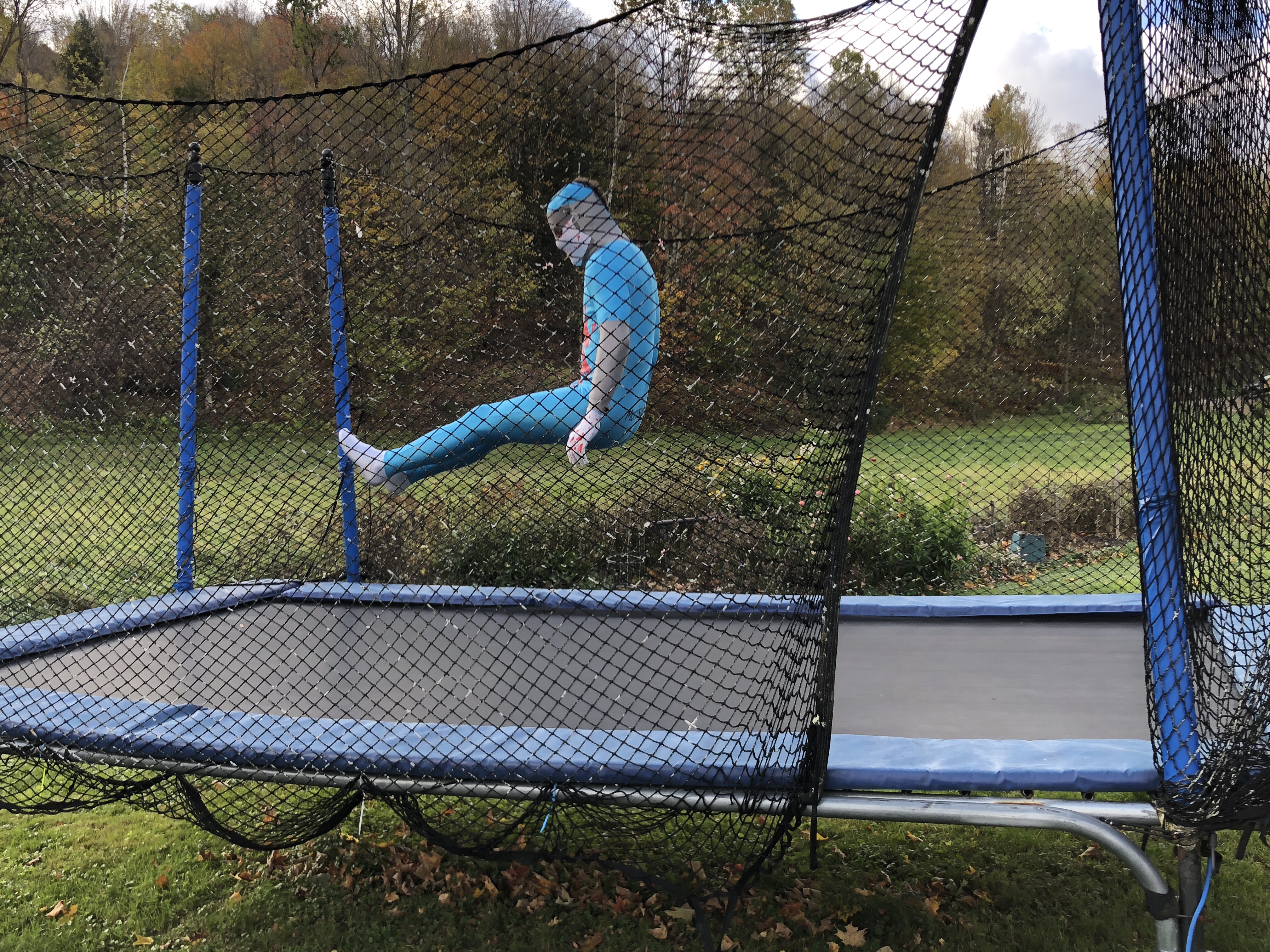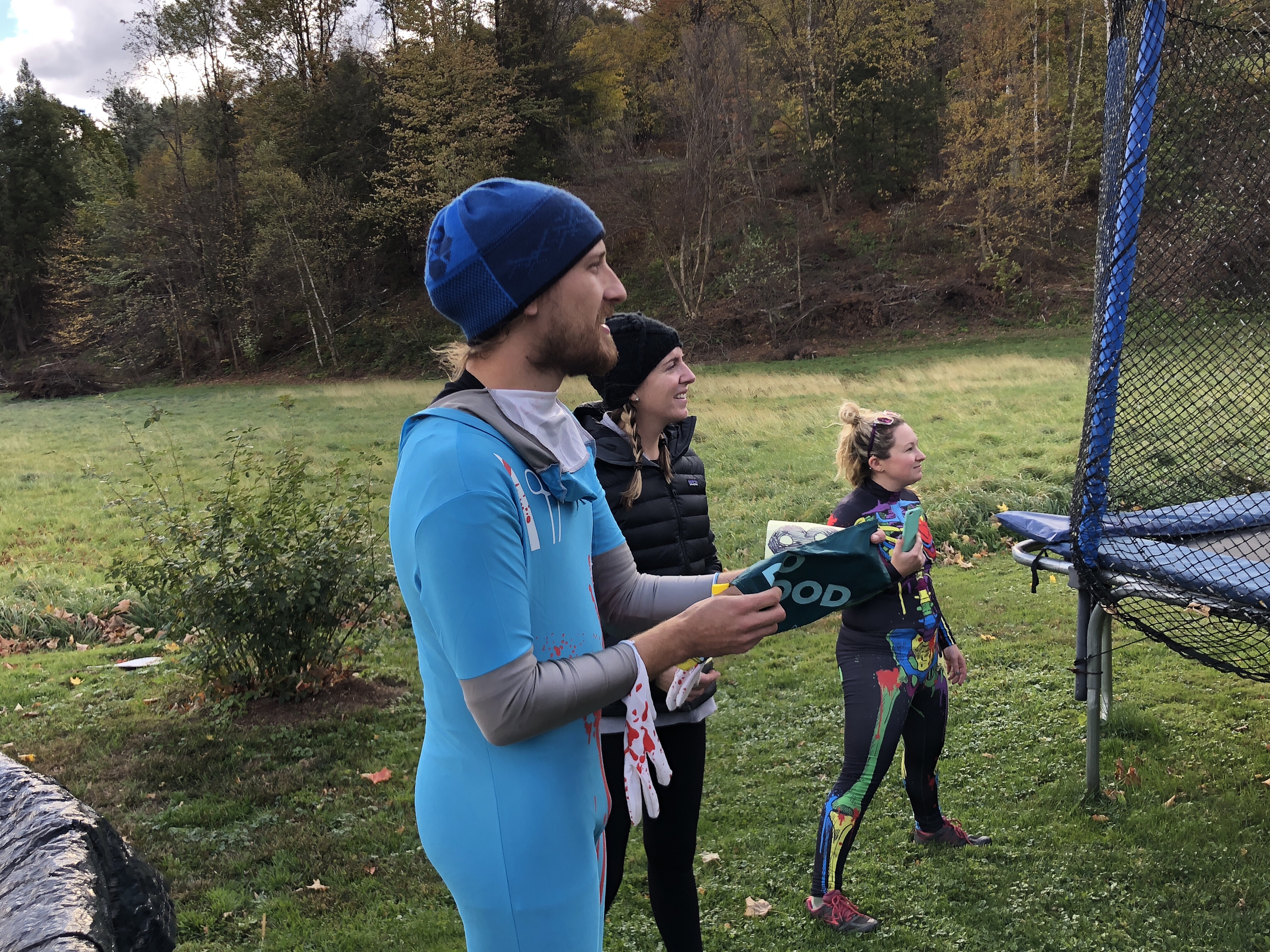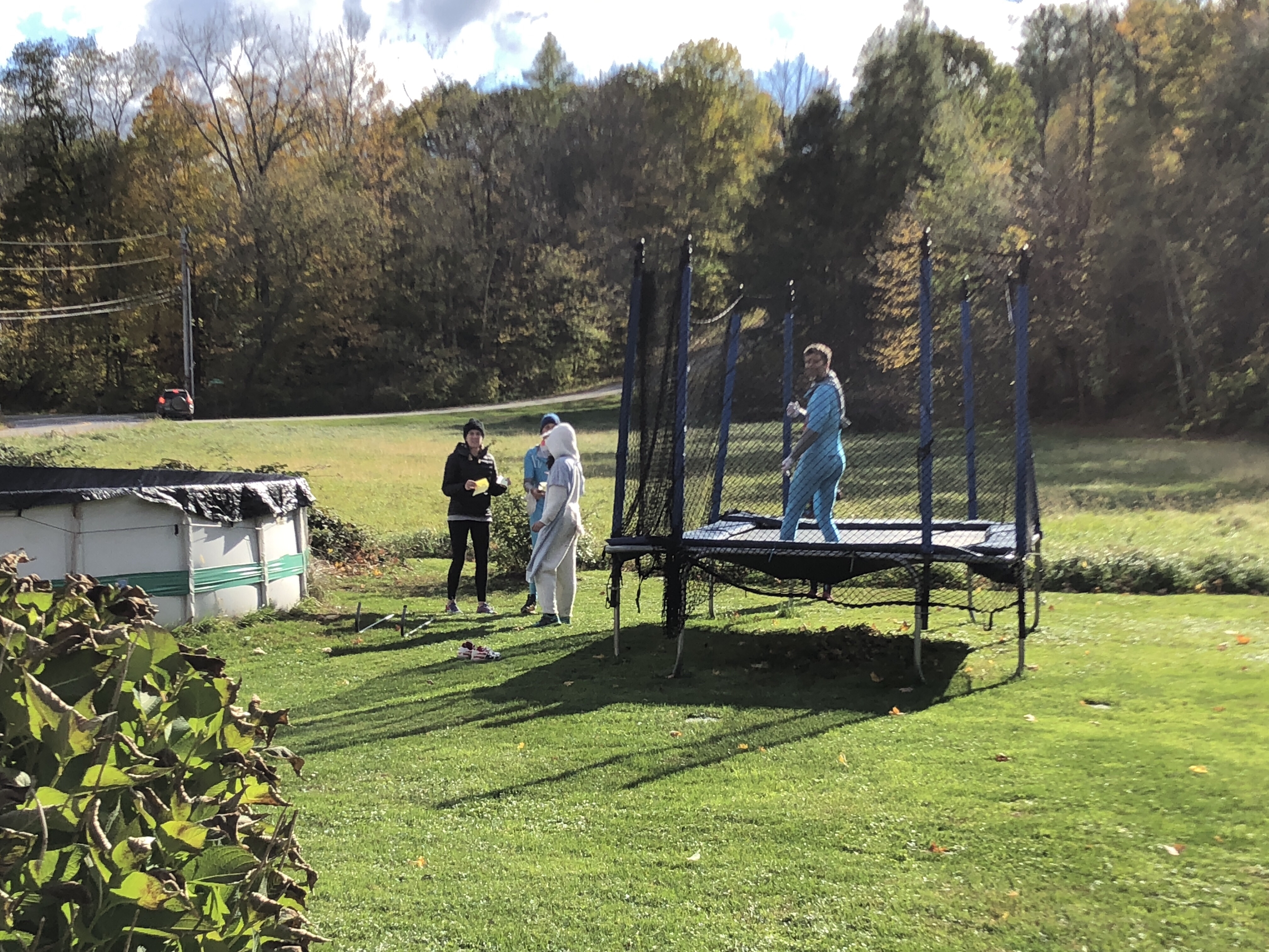 We had a weird surprise with a group of nurses in strange costume stopped and asked if they could jump on her trampoline. They were part of a weird scavenger hunt for charity. Pretty fun