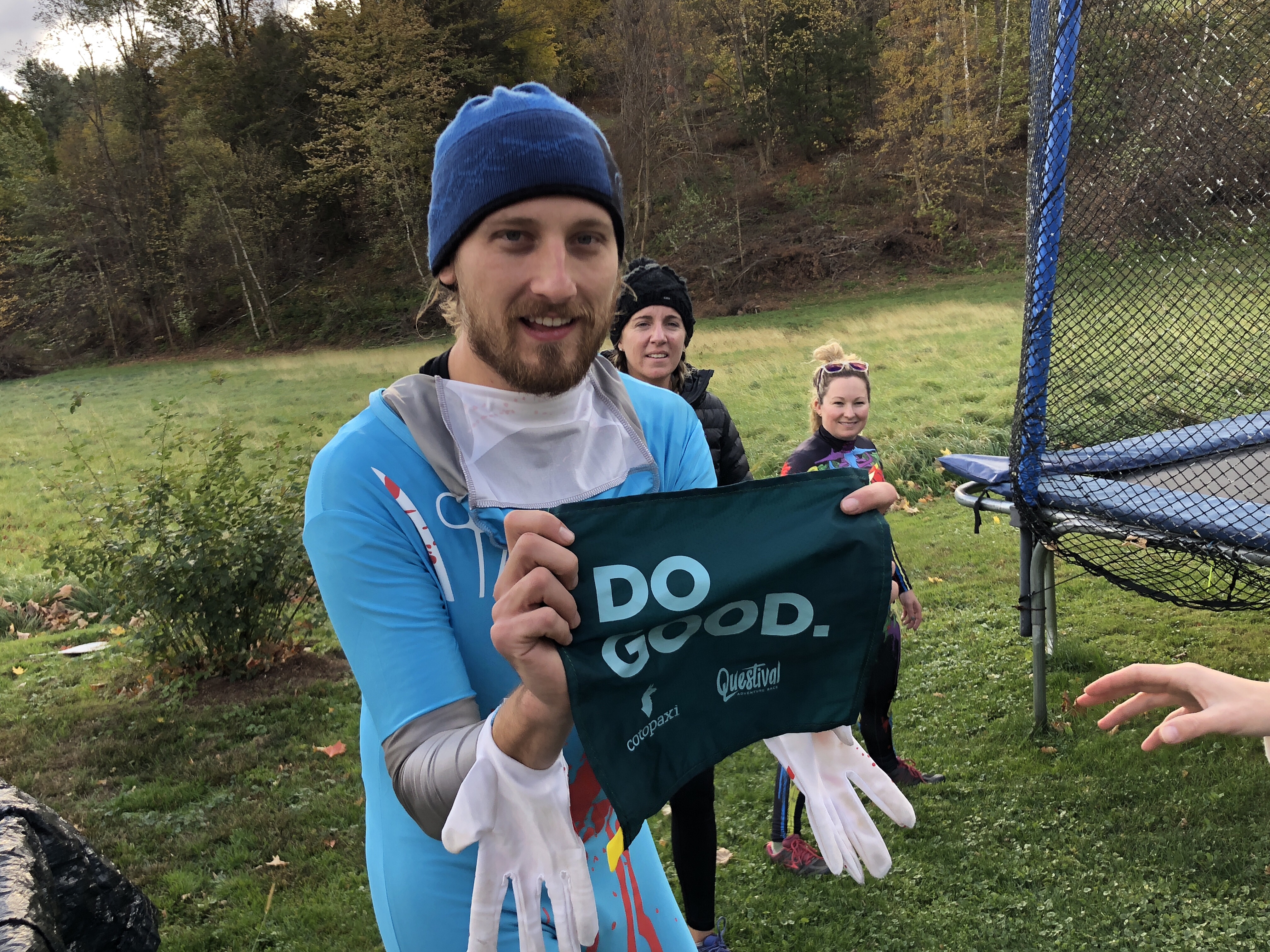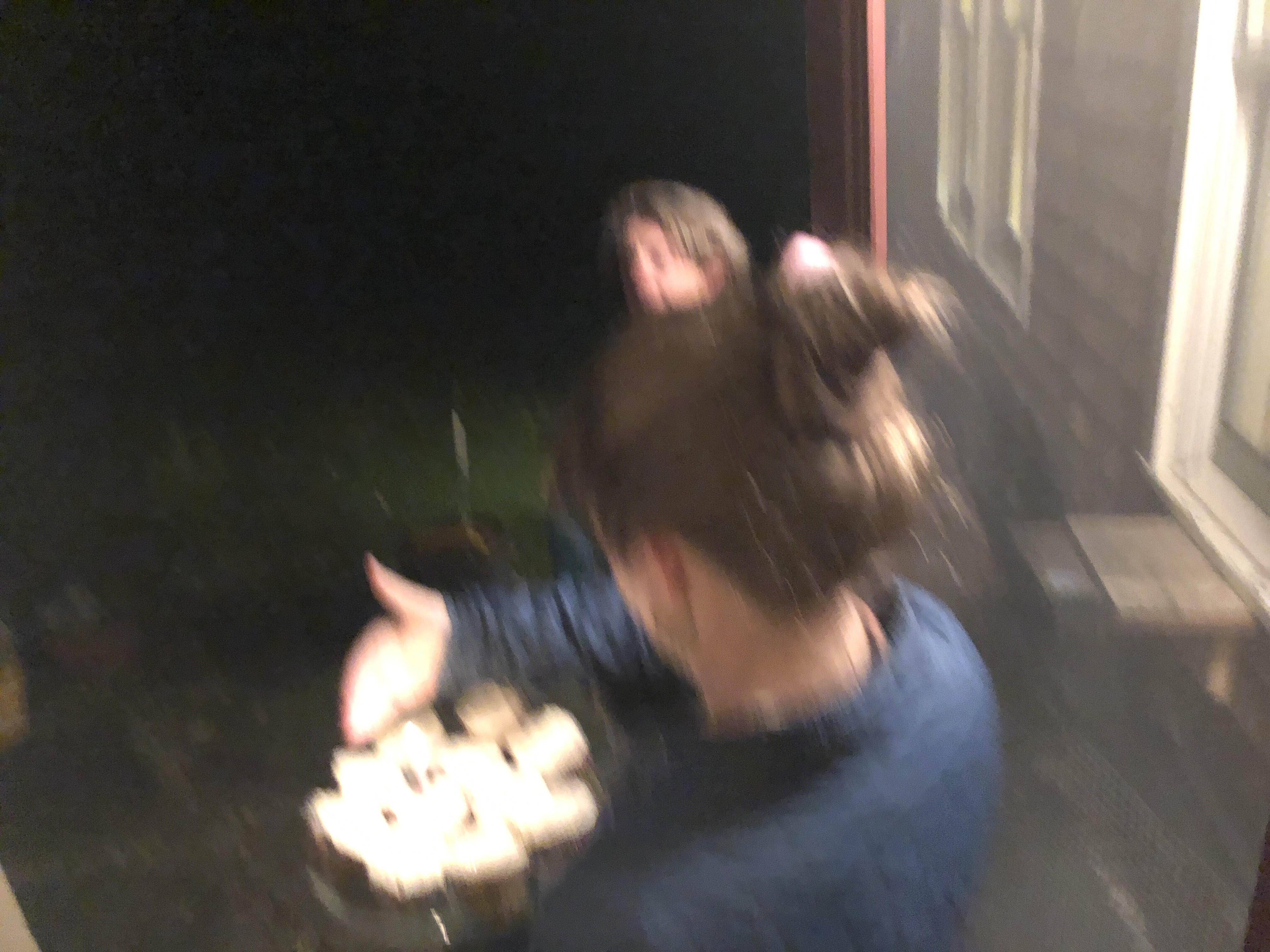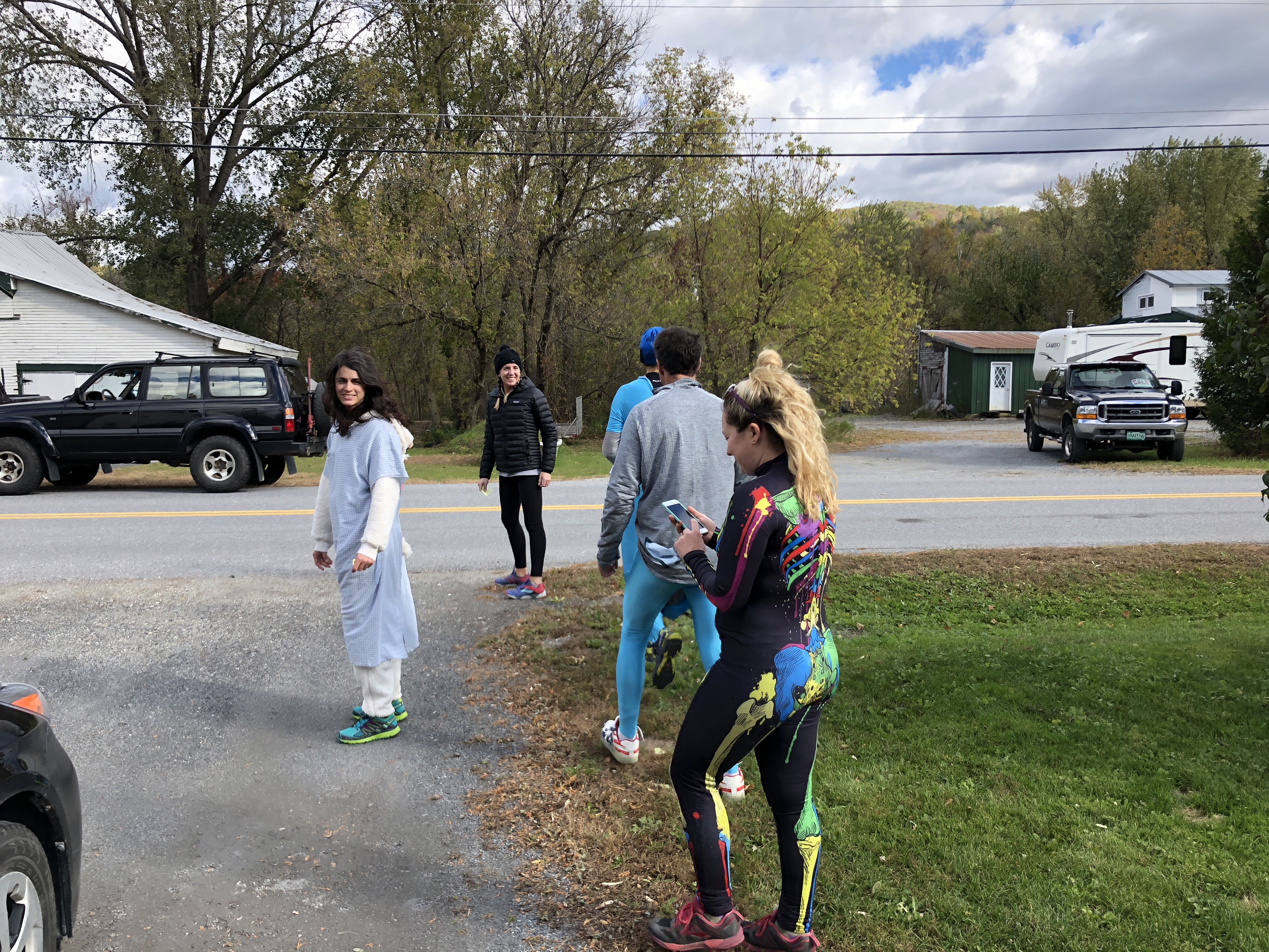 We had a weird surprise with a group of nurses in strange costume stopped and asked if they could jump on her trampoline. They were part of a weird scavenger hunt for charity. Pretty fun