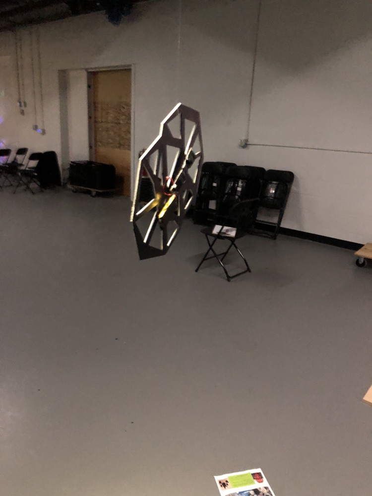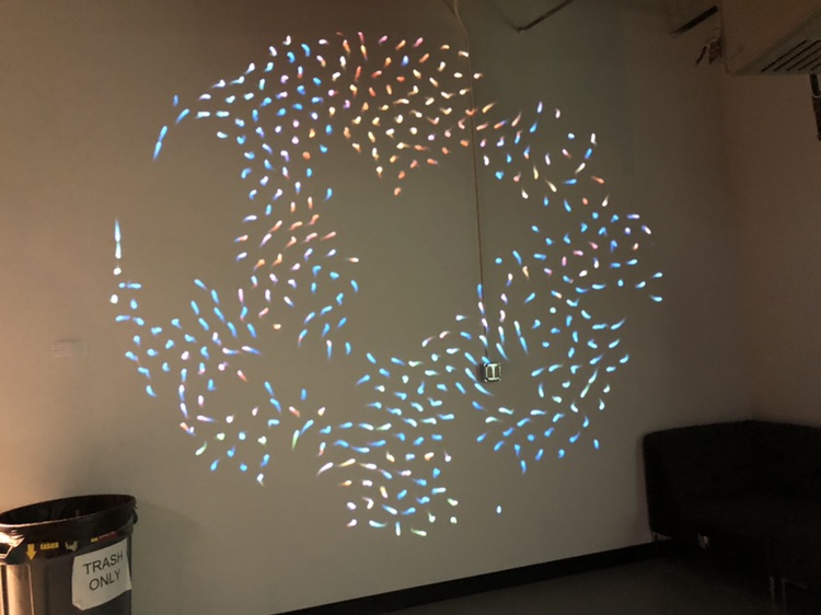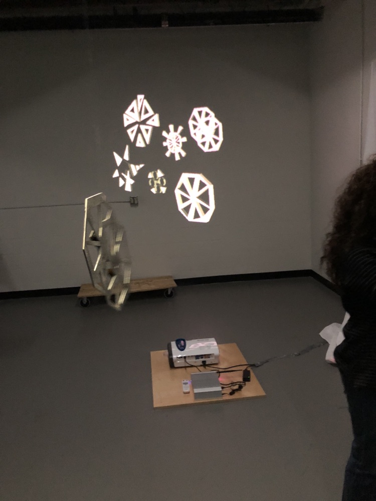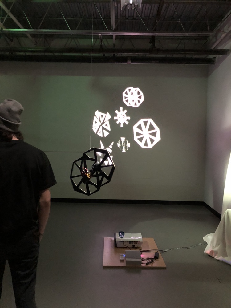 Jen showed our piece.. which is a free floating star with a positional sensor.. when you rotate the star.. a projected image on the wall rotates.. It’s pretty hypnotic.
