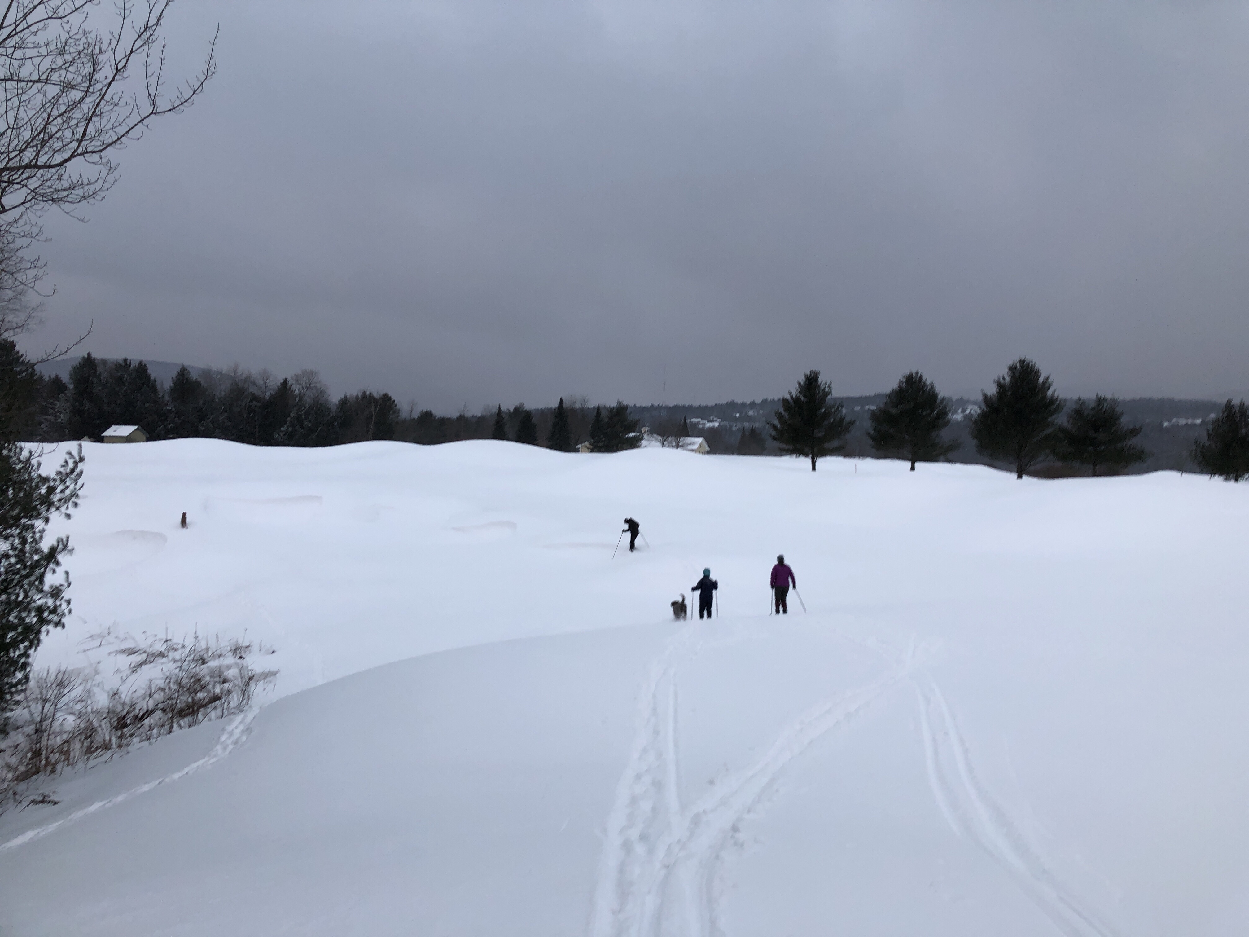 Later in the afternoon Dan and I met up with John and Lauren and took all of our dogs for a ski right before sunset. It was cold and blowing but beautiful outside
