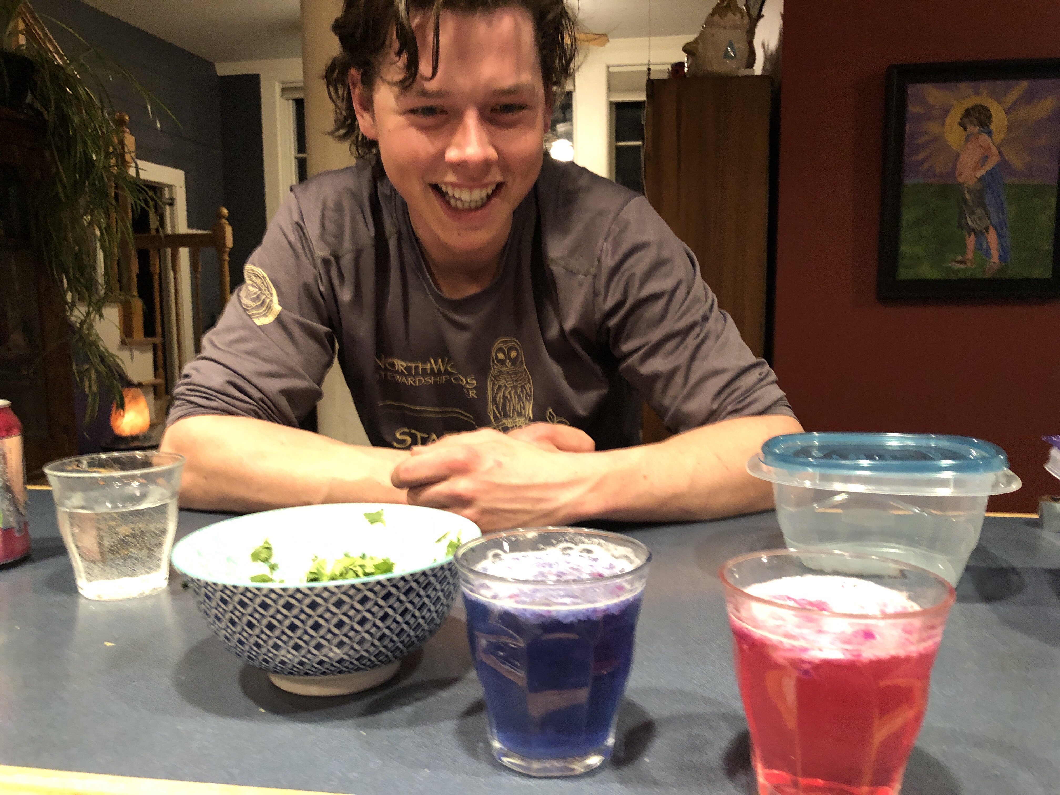 Lots of clean up . Got to demo red cabbage ph reaction to Elliot