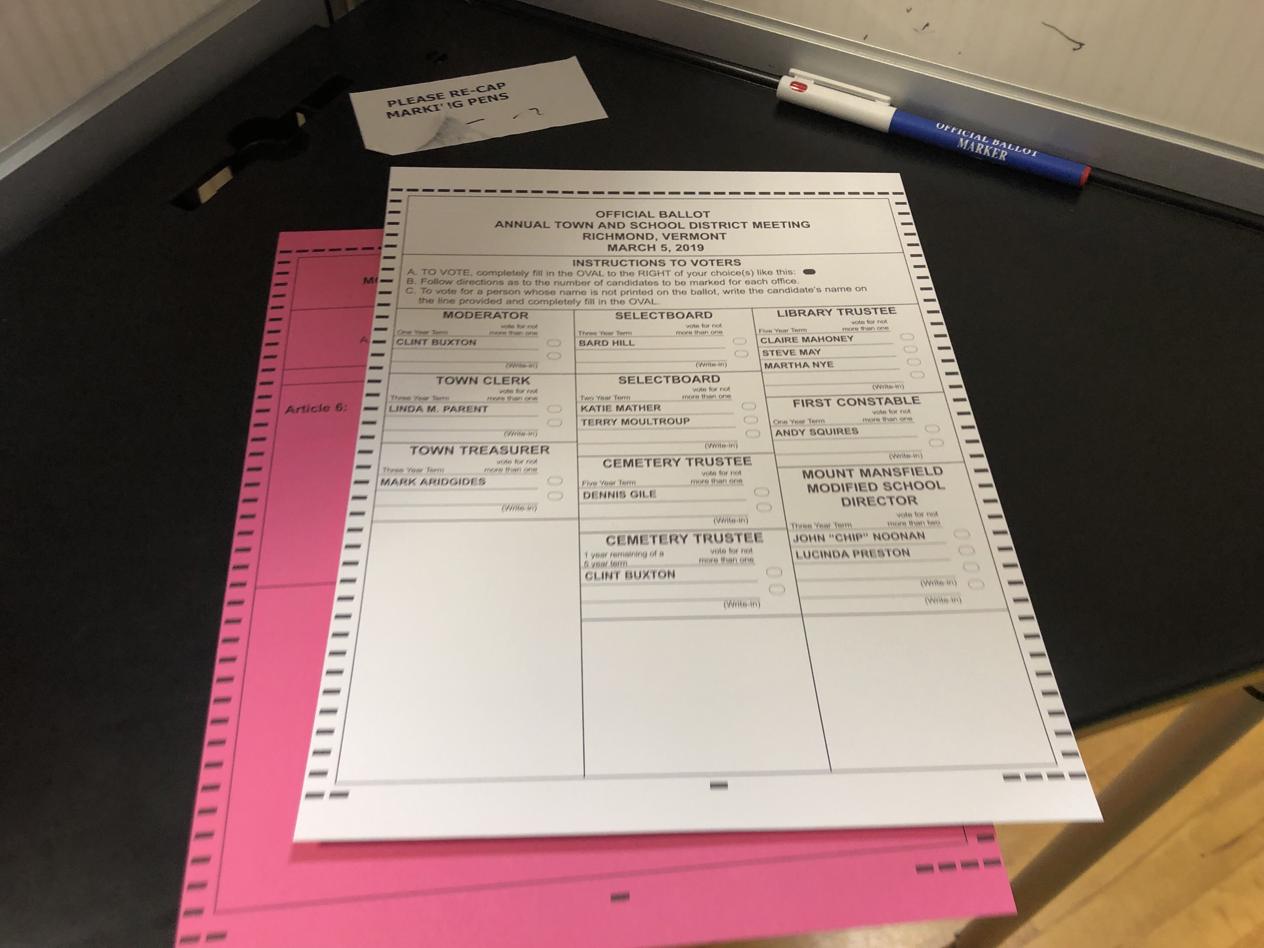 Like most good Vermonters, I took this morning off to attend to democracy. Vermont still practice it the old-fashioned way. The first Tuesday in March All schools are closed… Some businesses to and everyone takes off work. And he goes and stands in a gym, library or church or Grange Hall to take care of their towns business for the year. I’ve been going to our town meeting every year I was in town since 1981. Many of the same folks are in there. In fact most of the heads are gray these days… Not too many young people in there. I remember the days that these meetings were full of antiwar and anti-nuclear protest… Today was actually pretty tame. Our good friend Clint Buxton presided… Just like his father used to. We all got a good lesson in Roberts rules and for nearly 3 hours we discussed the town’s business. Maintenance budgets, salaries, repairs, police reports… Nothing very exciting… Which made the whole thing very exciting.