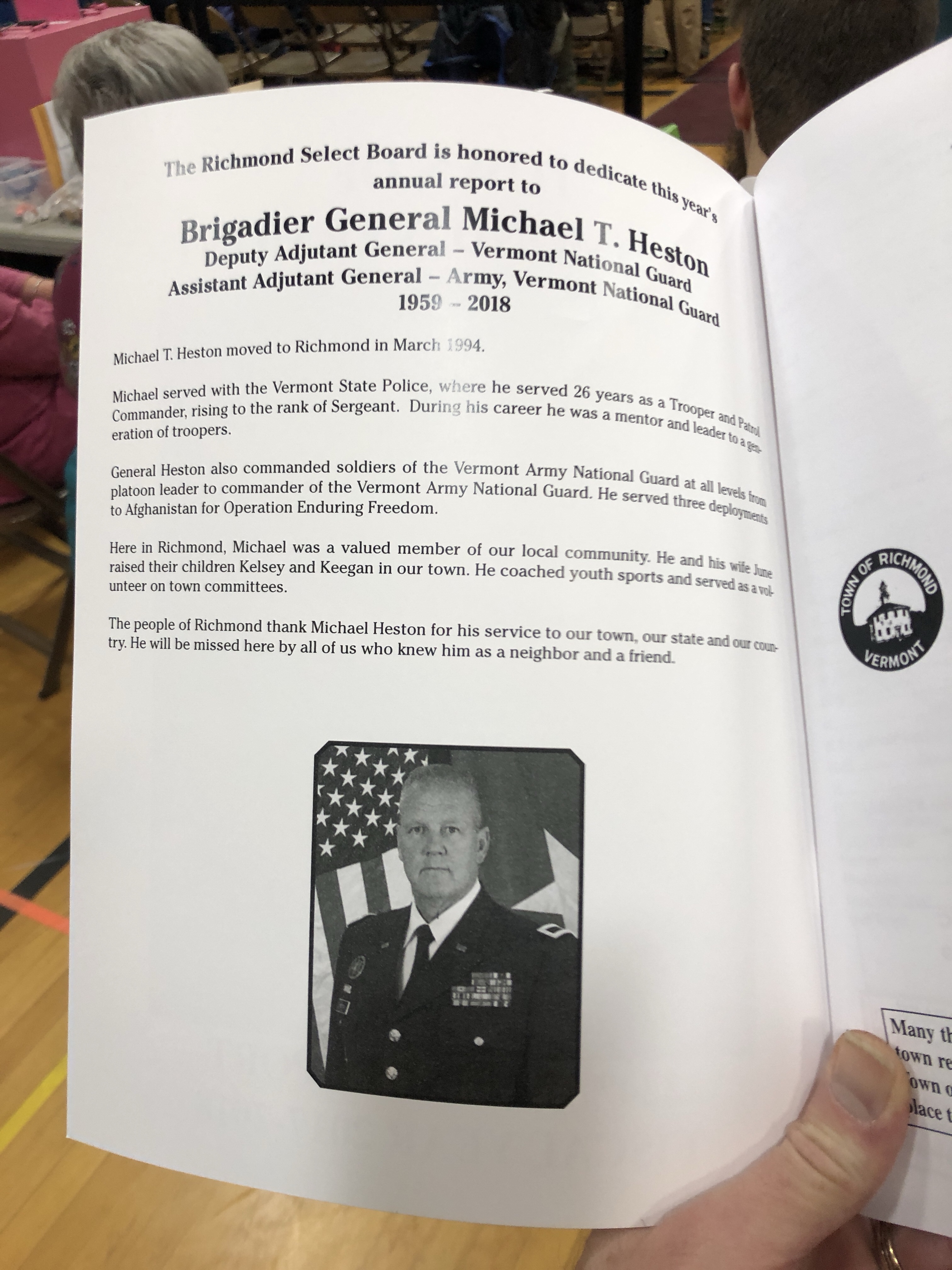 Meeting was dedicated to our friend Mike Hustus died last year… It was a great guy. It used to be a state policeman… Also very senior in the Vermont guard.