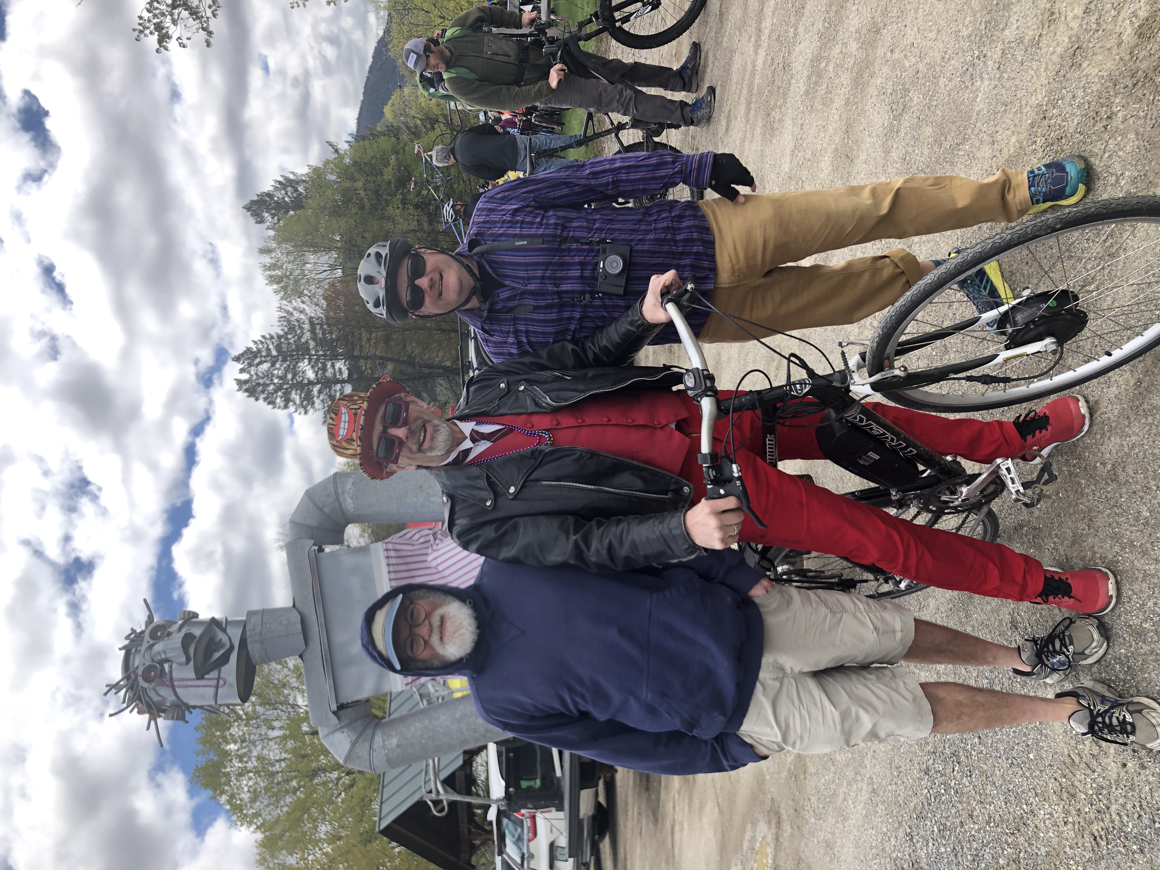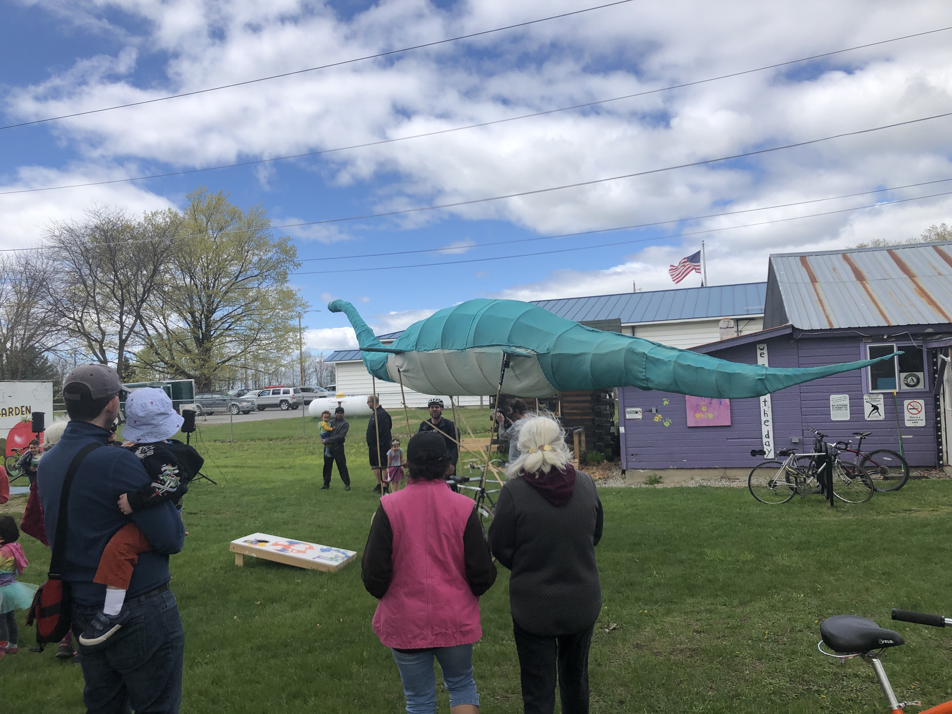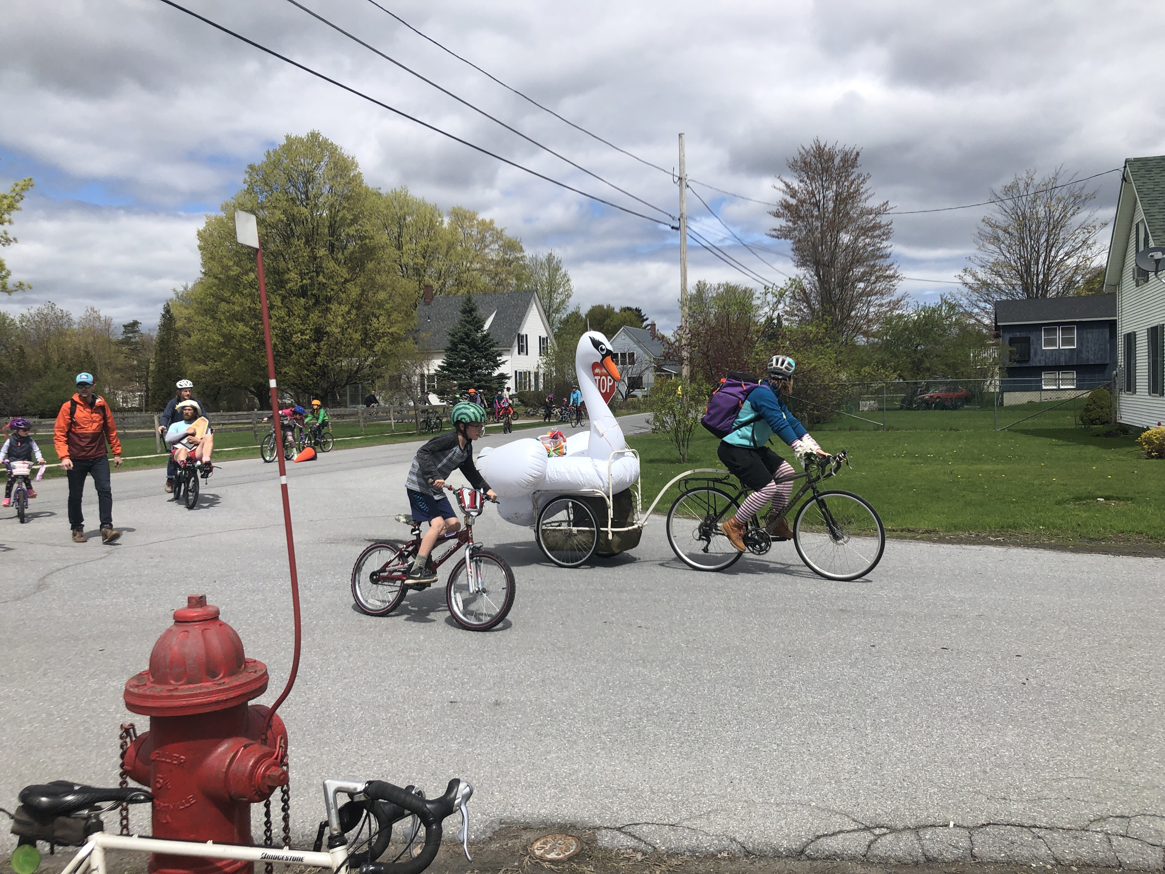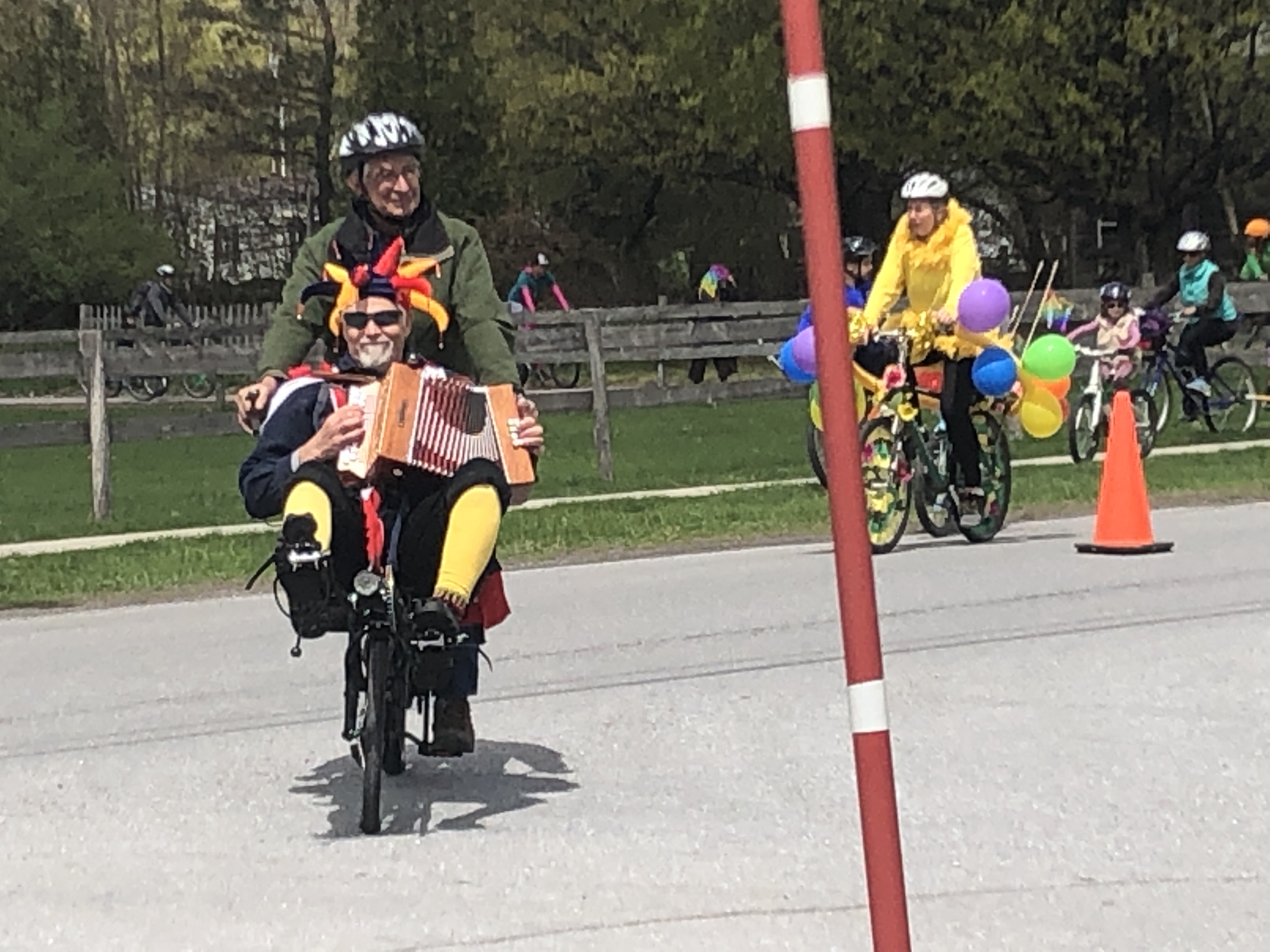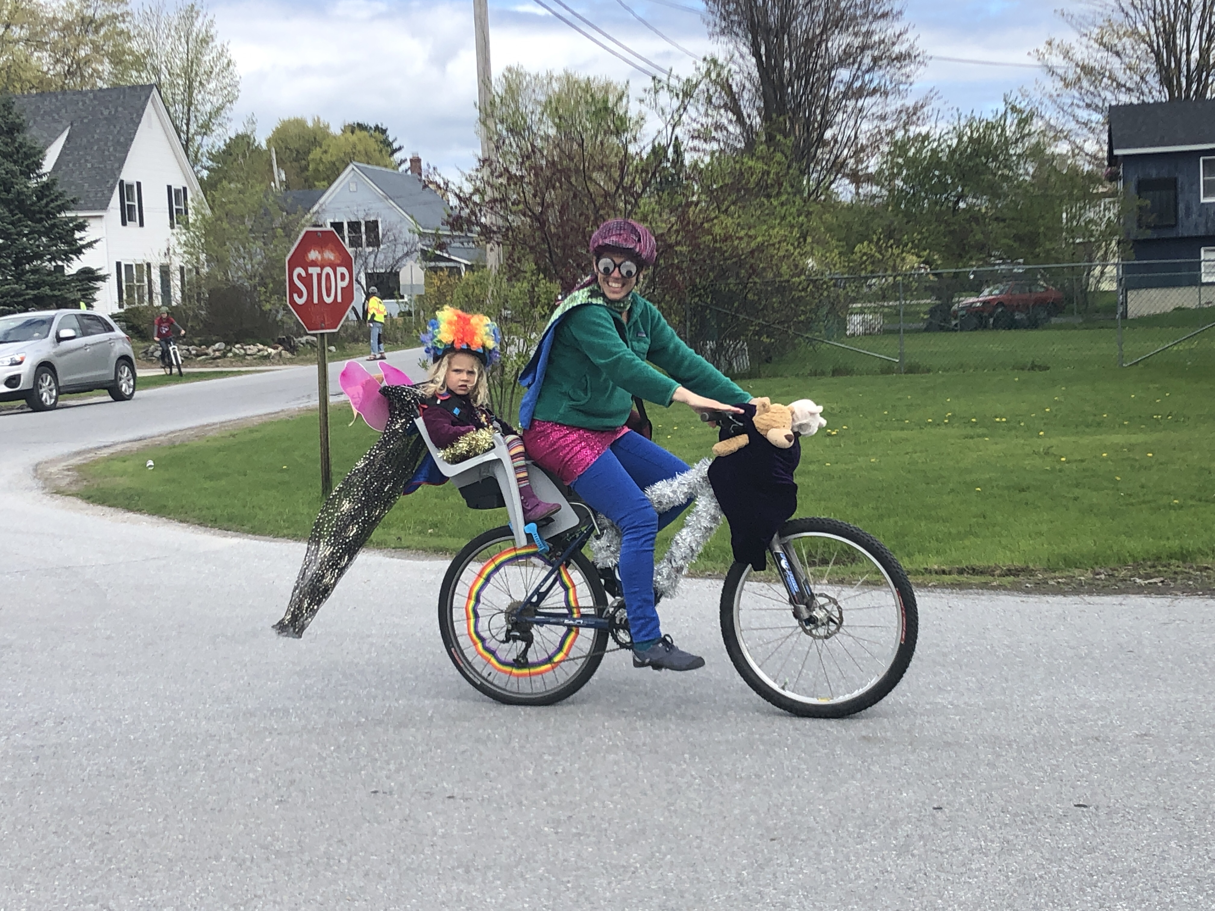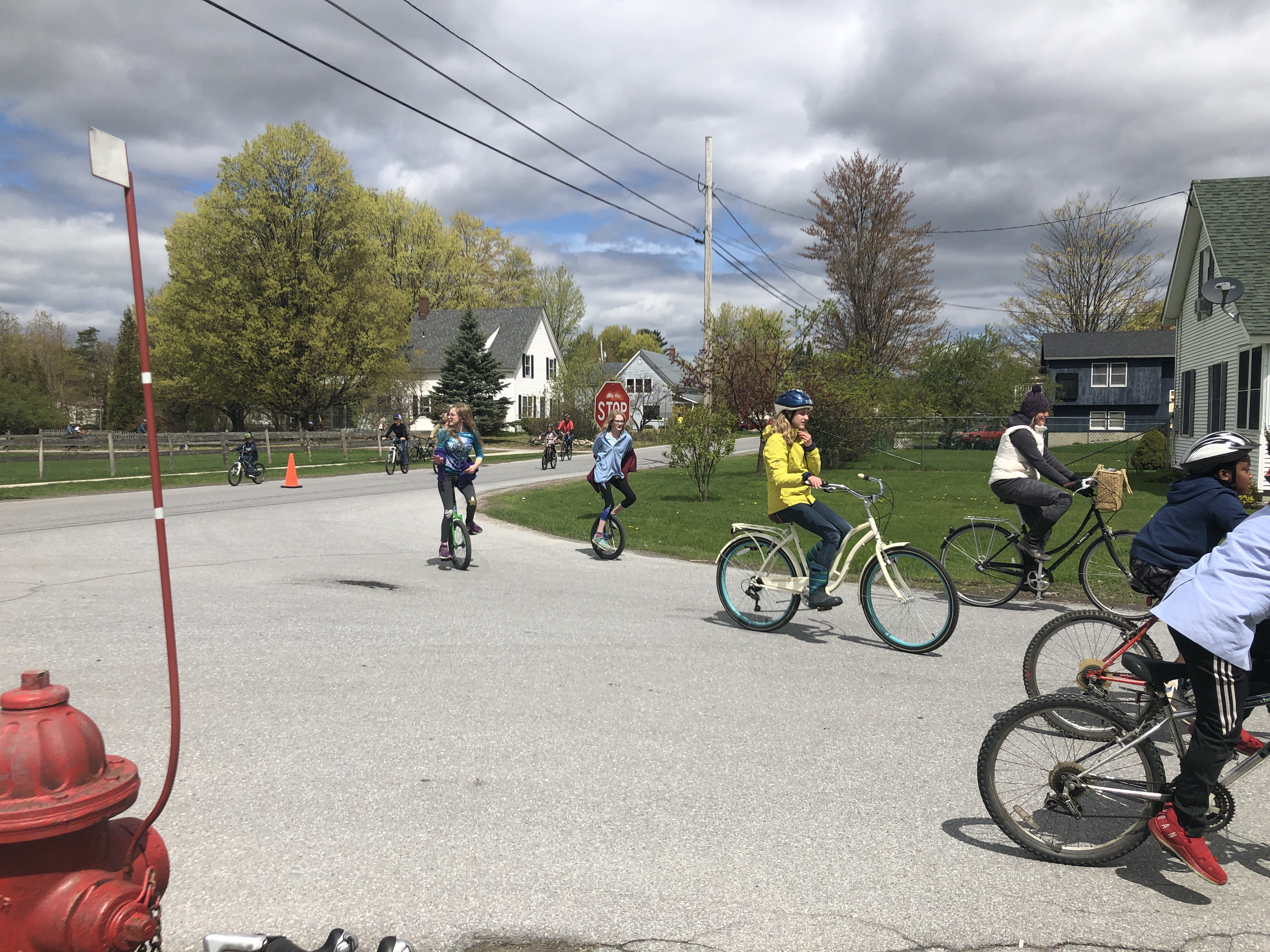 Diane and i had a nice quiet night at home today. I needed it because work has been pretty stressful these past couple of weeks ..We spent most of the day gardening.. but our main venture out was to the Bristol human. Powered kinetic parade . Bristol is a tiny town in west central Vermont that bills itself as the “gateway to the green Mountains” . We got there about 10:30 and met up with our good friend and former roommate Priscilla.. she’s a local and guided us through the sweet town to the high school. There was a good crowd there despite the chilly weather.