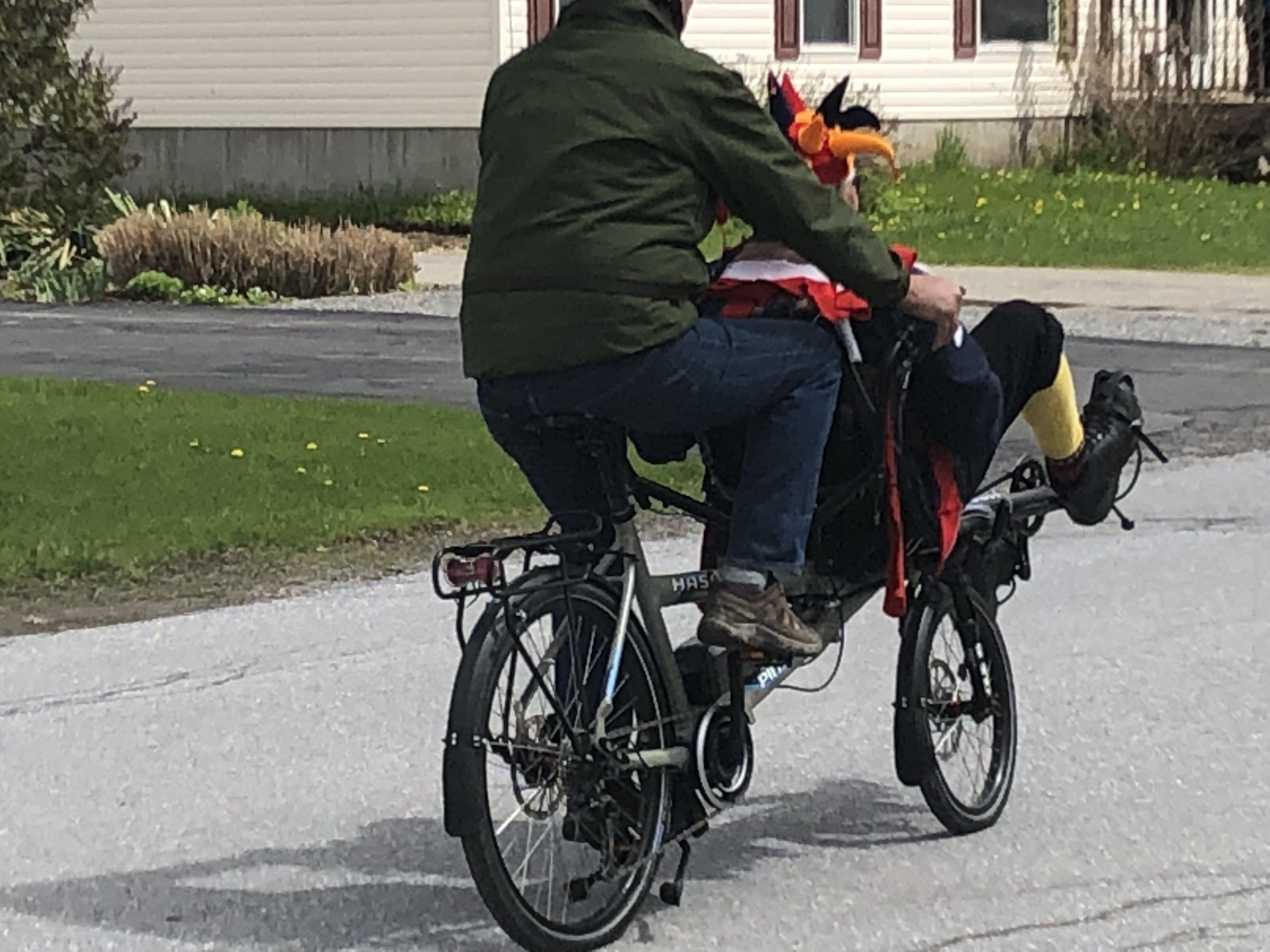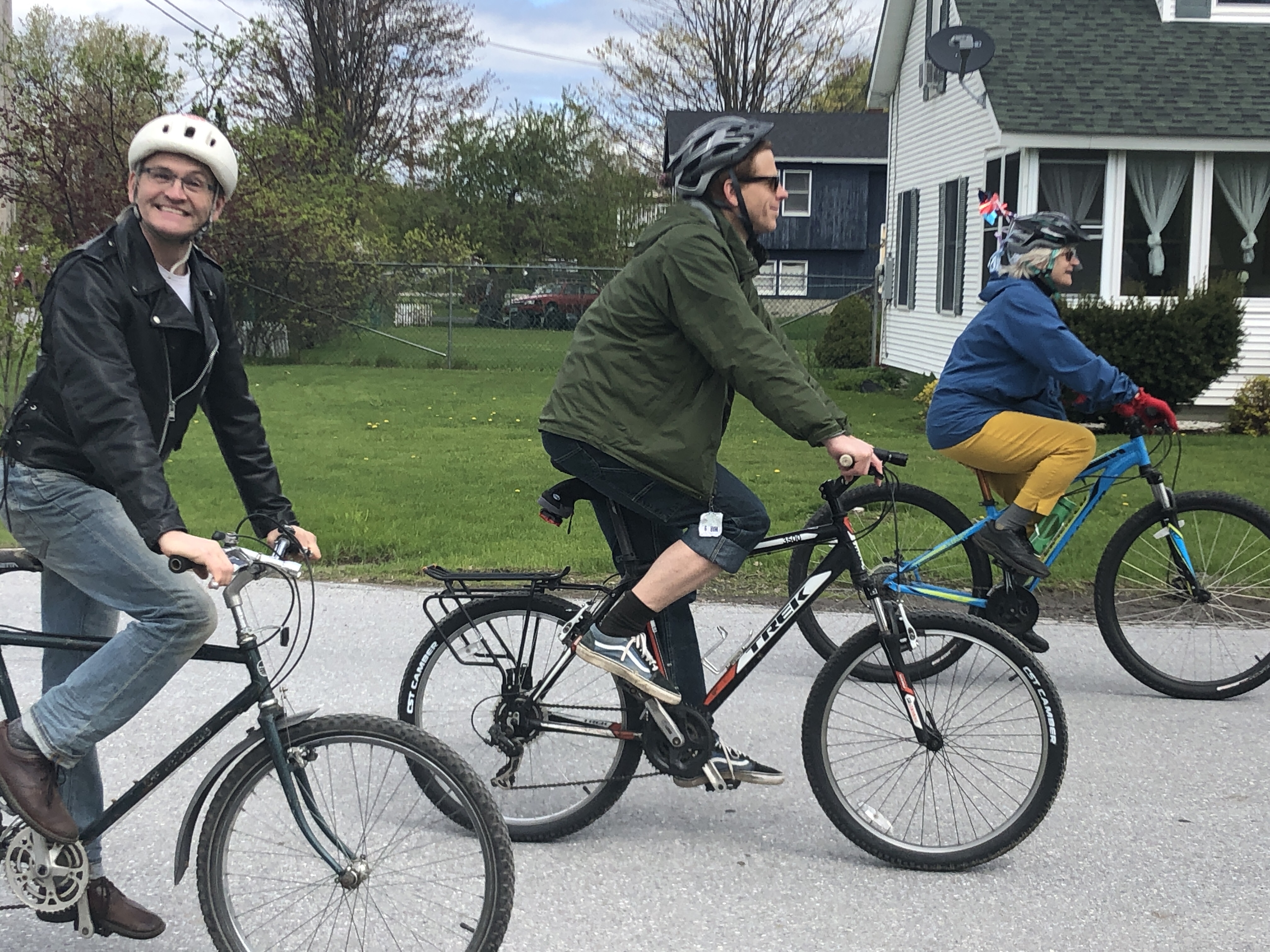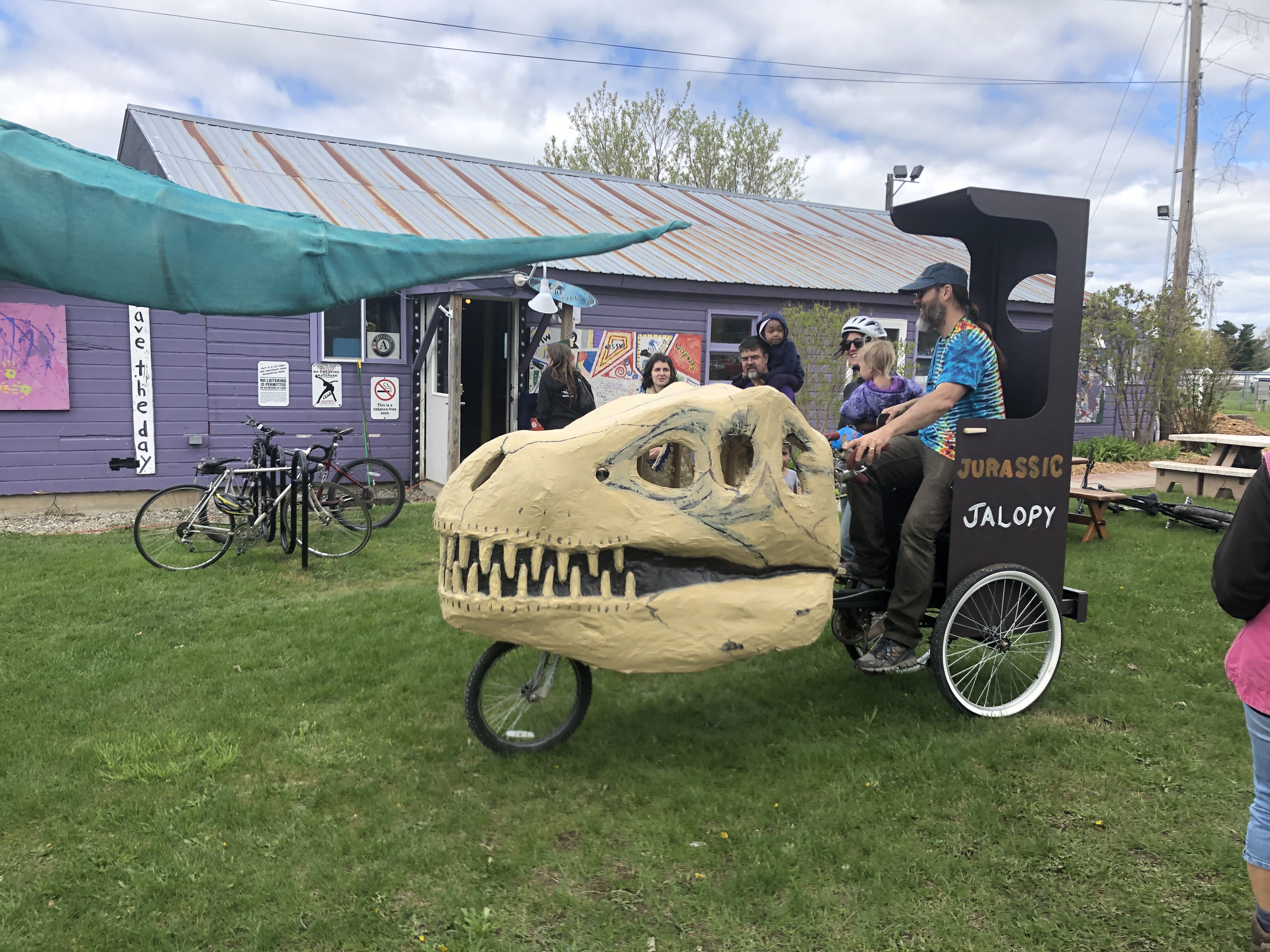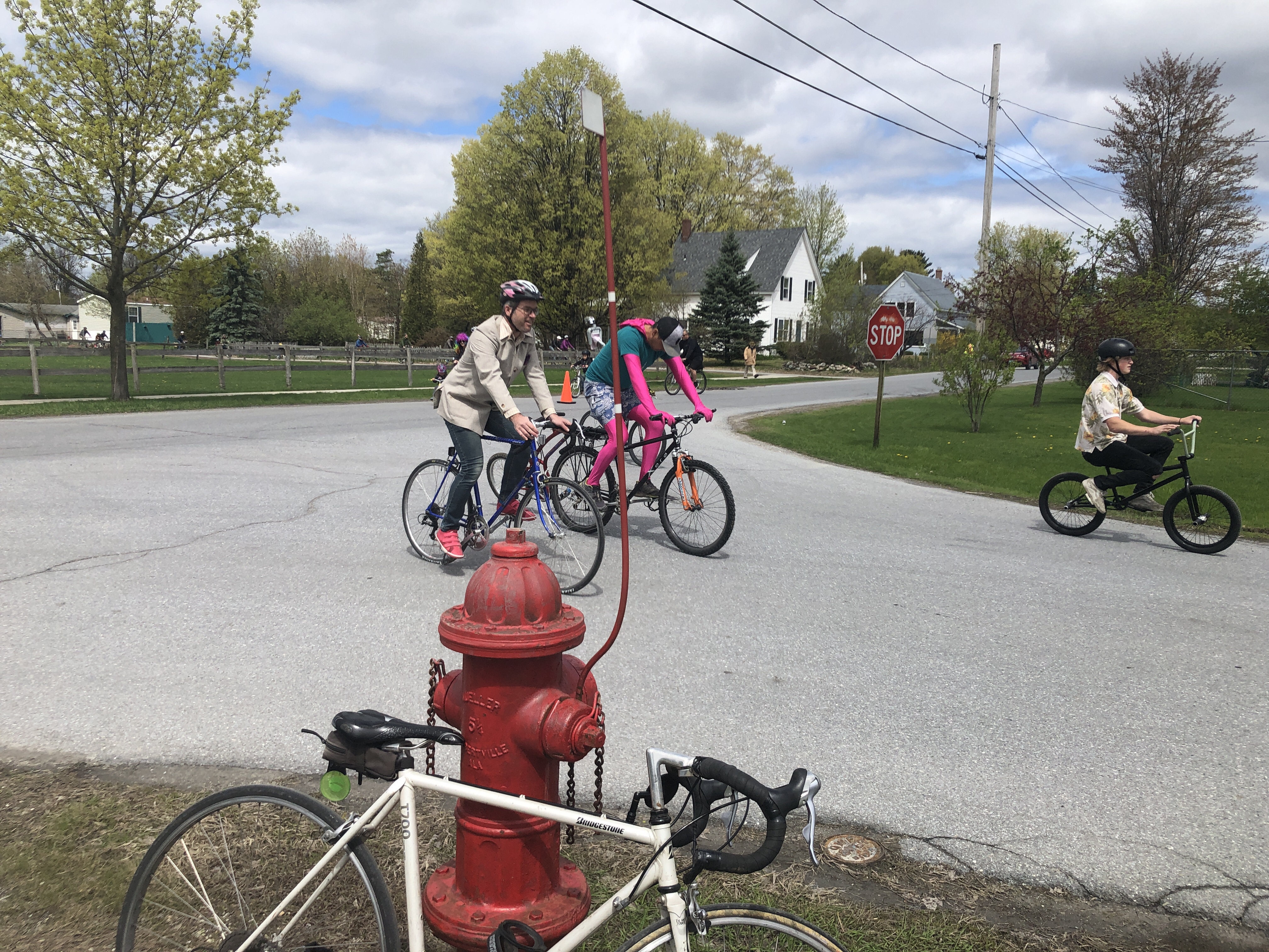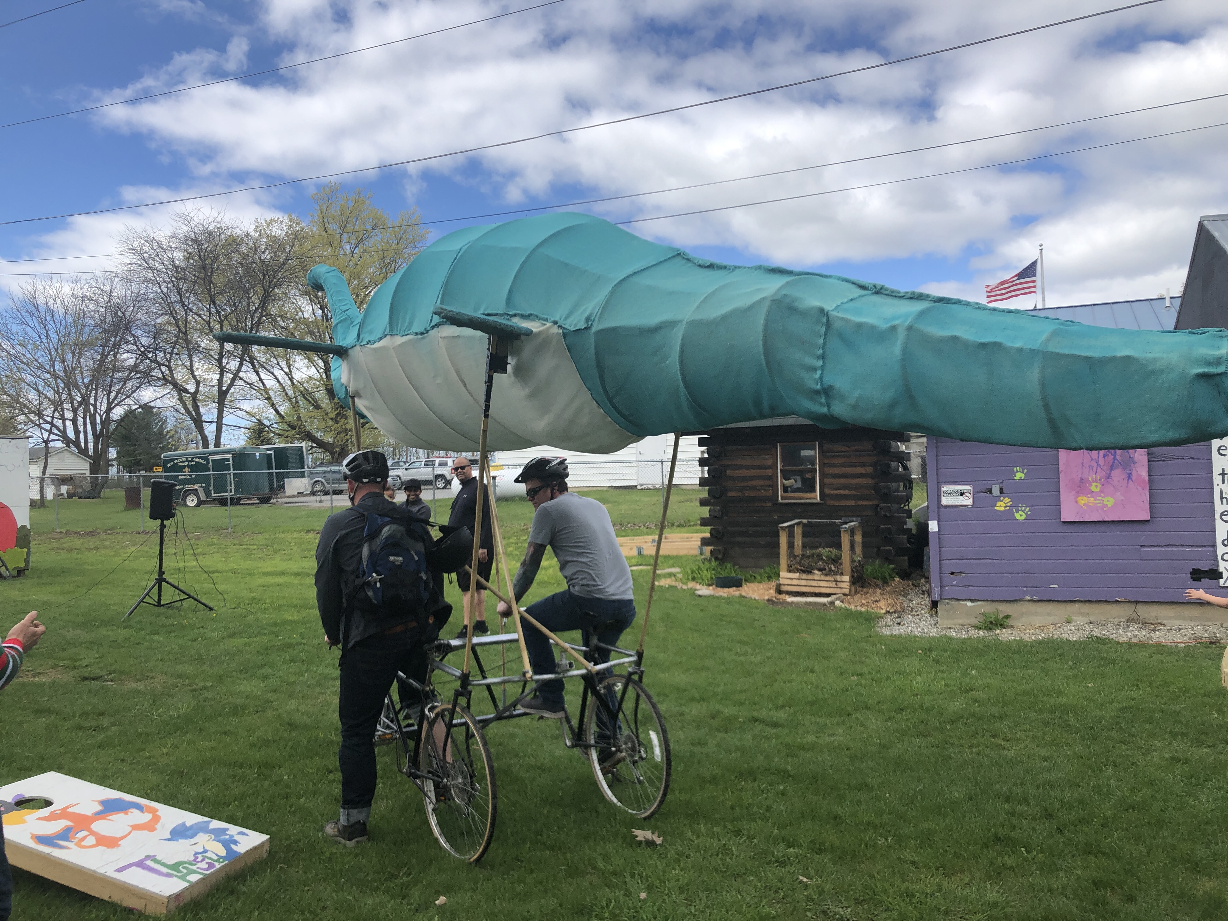 Diane and i had a nice quiet night at home today. I needed it because work has been pretty stressful these past couple of weeks ..We spent most of the day gardening.. but our main venture out was to the Bristol human. Powered kinetic parade . Bristol is a tiny town in west central Vermont that bills itself as the “gateway to the green Mountains” . We got there about 10:30 and met up with our good friend and former roommate Priscilla.. she’s a local and guided us through the sweet town to the high school. There was a good crowd there despite the chilly weather.