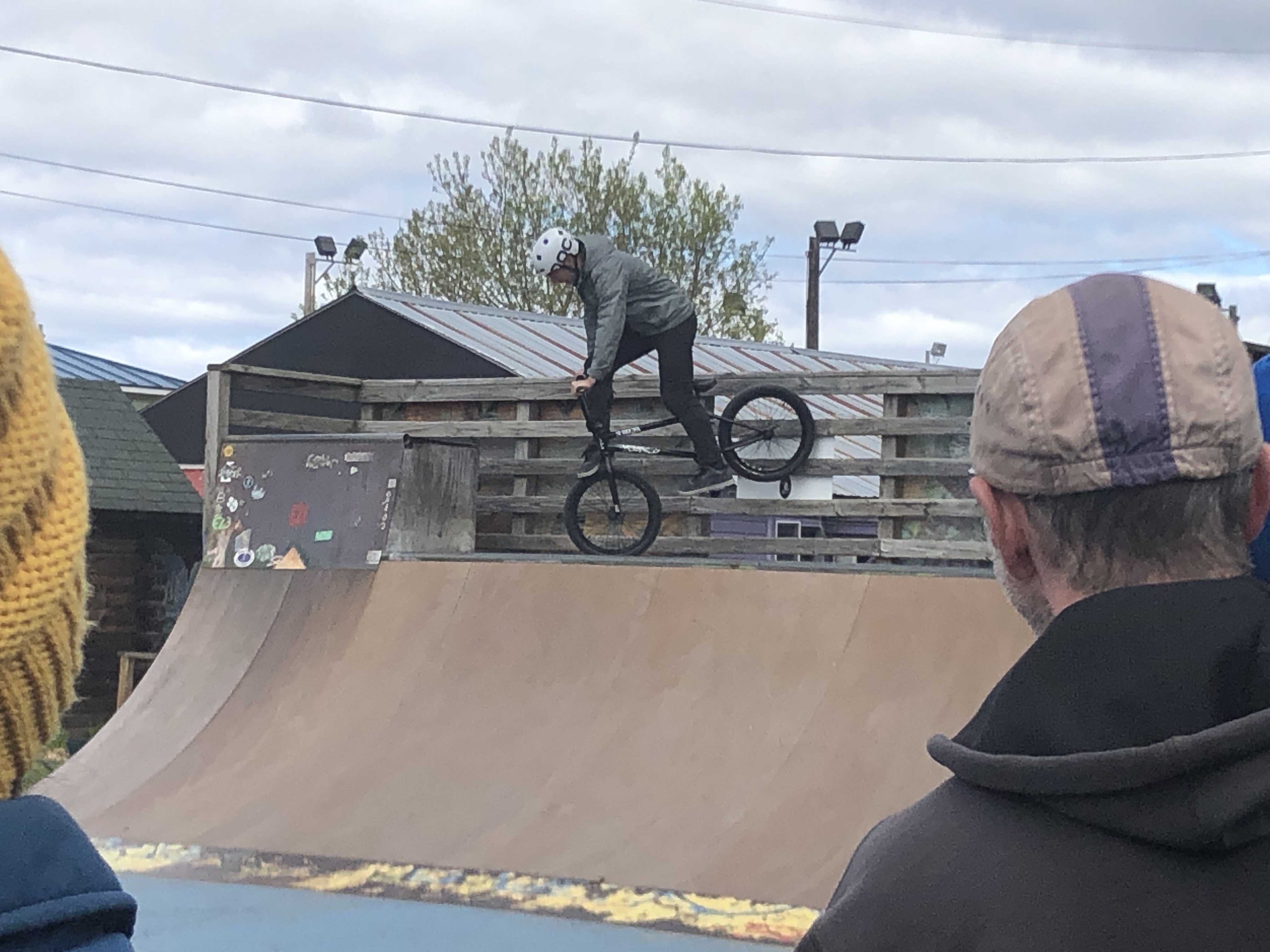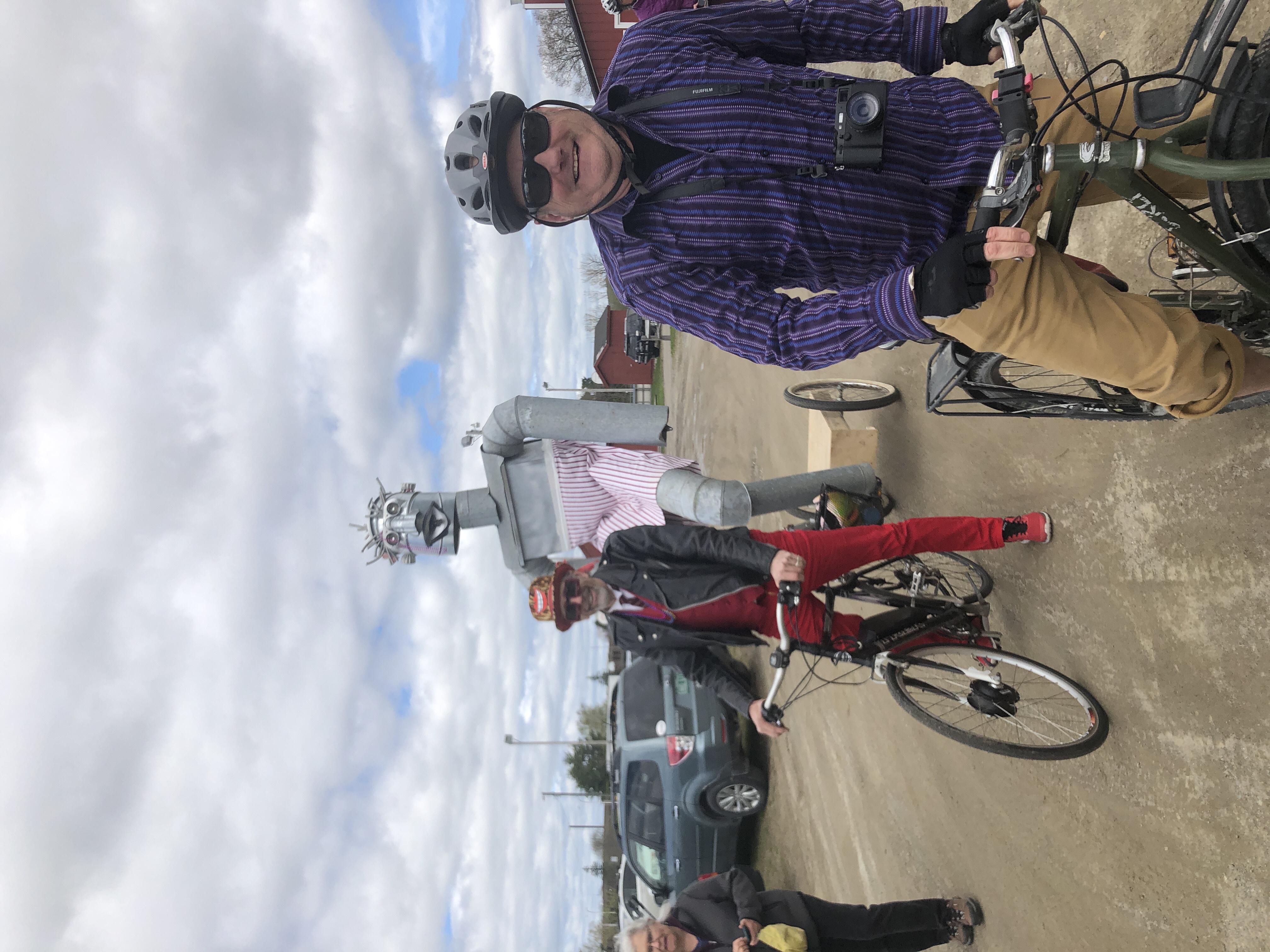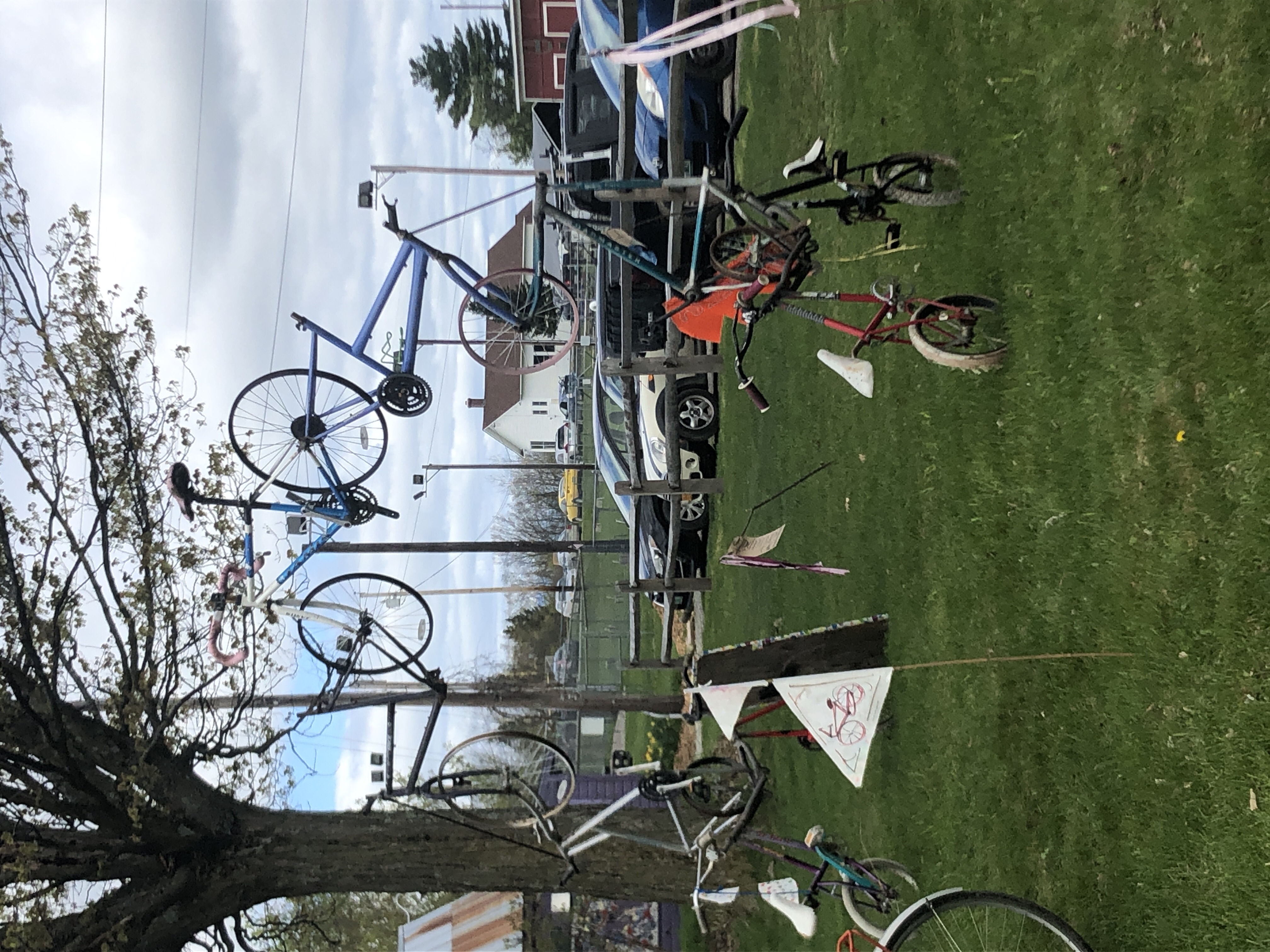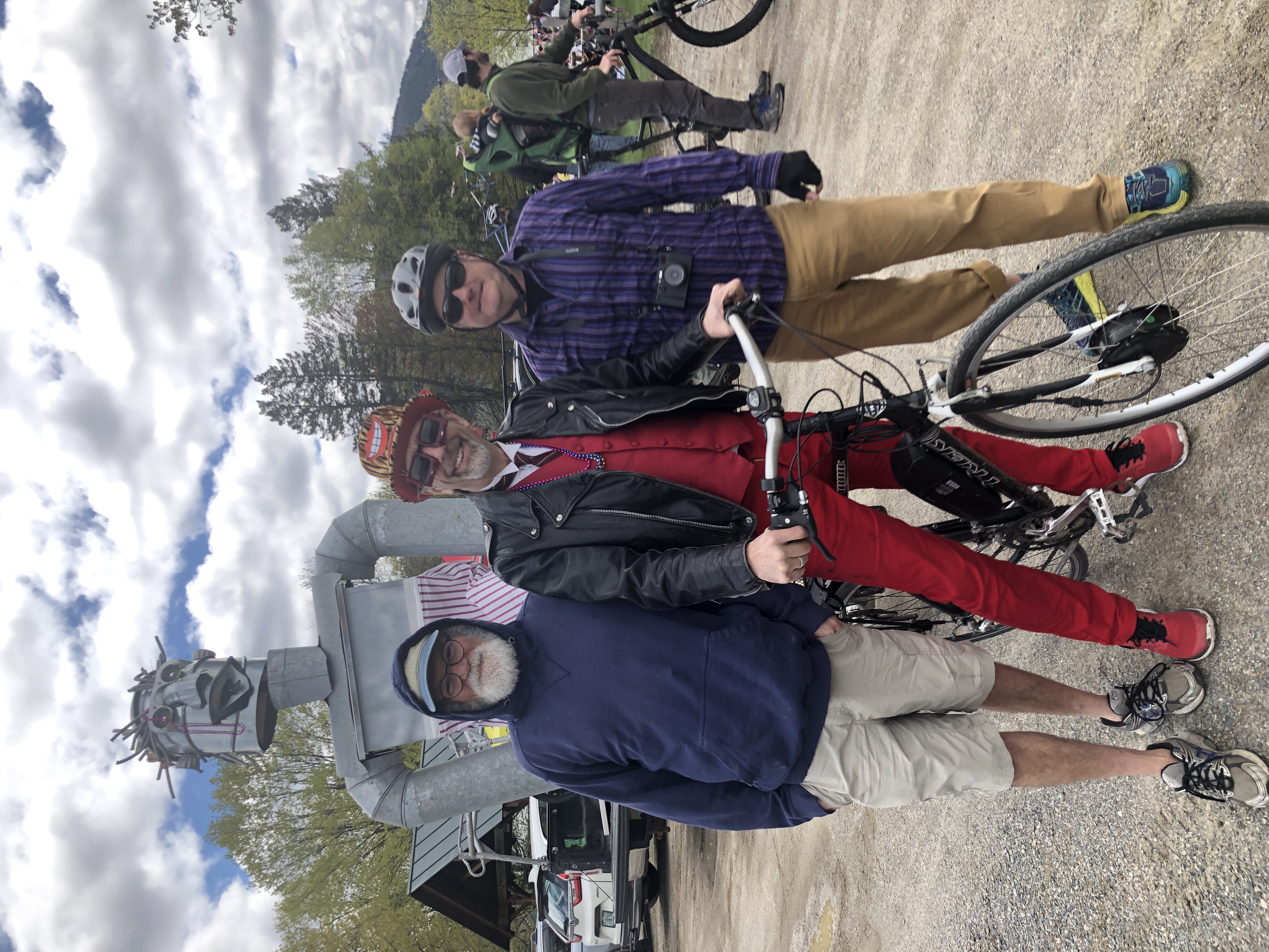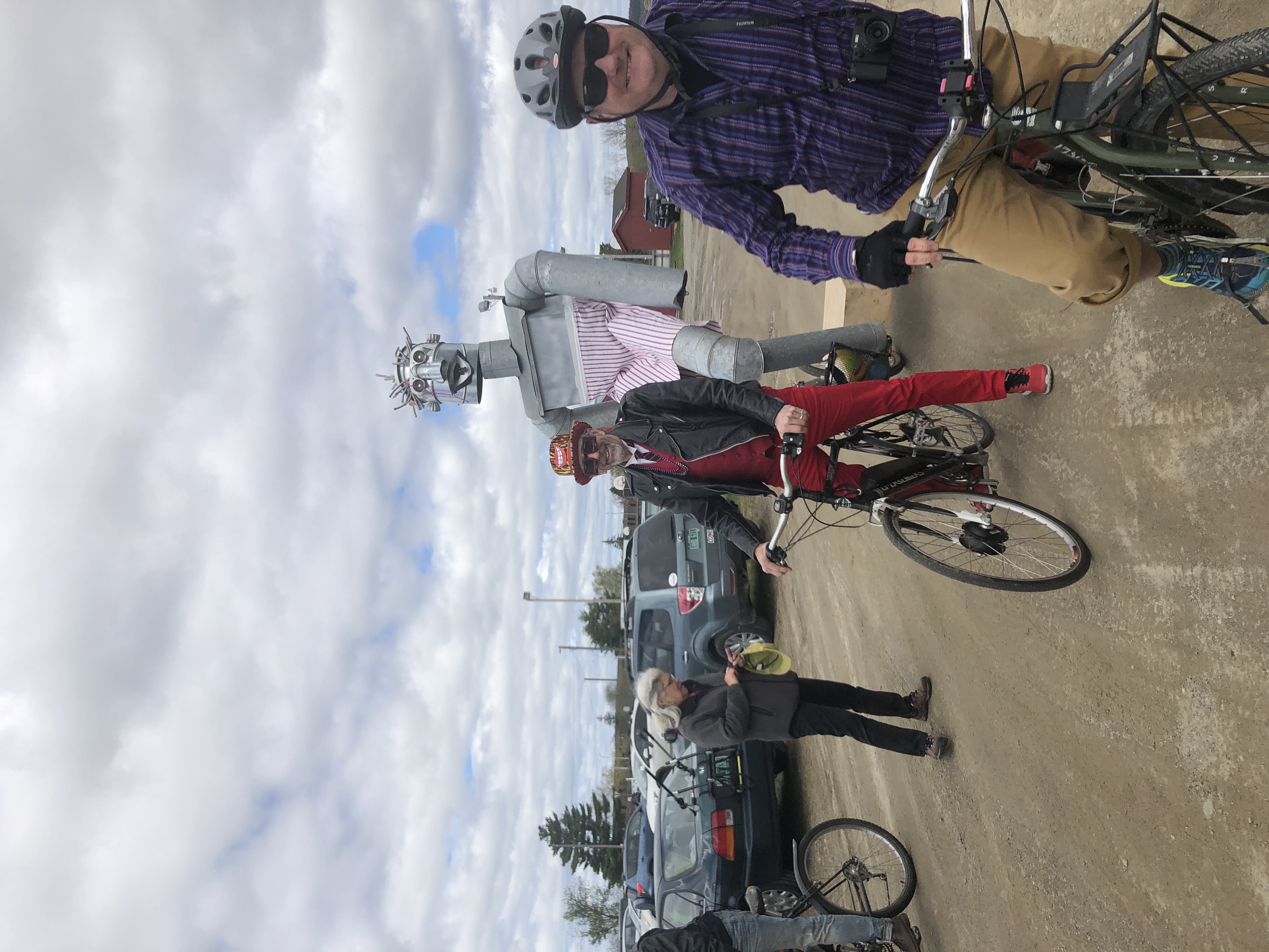 Diane and i had a nice quiet night at home today. I needed it because work has been pretty stressful these past couple of weeks ..We spent most of the day gardening.. but our main venture out was to the Bristol human. Powered kinetic parade . Bristol is a tiny town in west central Vermont that bills itself as the “gateway to the green Mountains” . We got there about 10:30 and met up with our good friend and former roommate Priscilla.. she’s a local and guided us through the sweet town to the high school. There was a good crowd there despite the chilly weather.