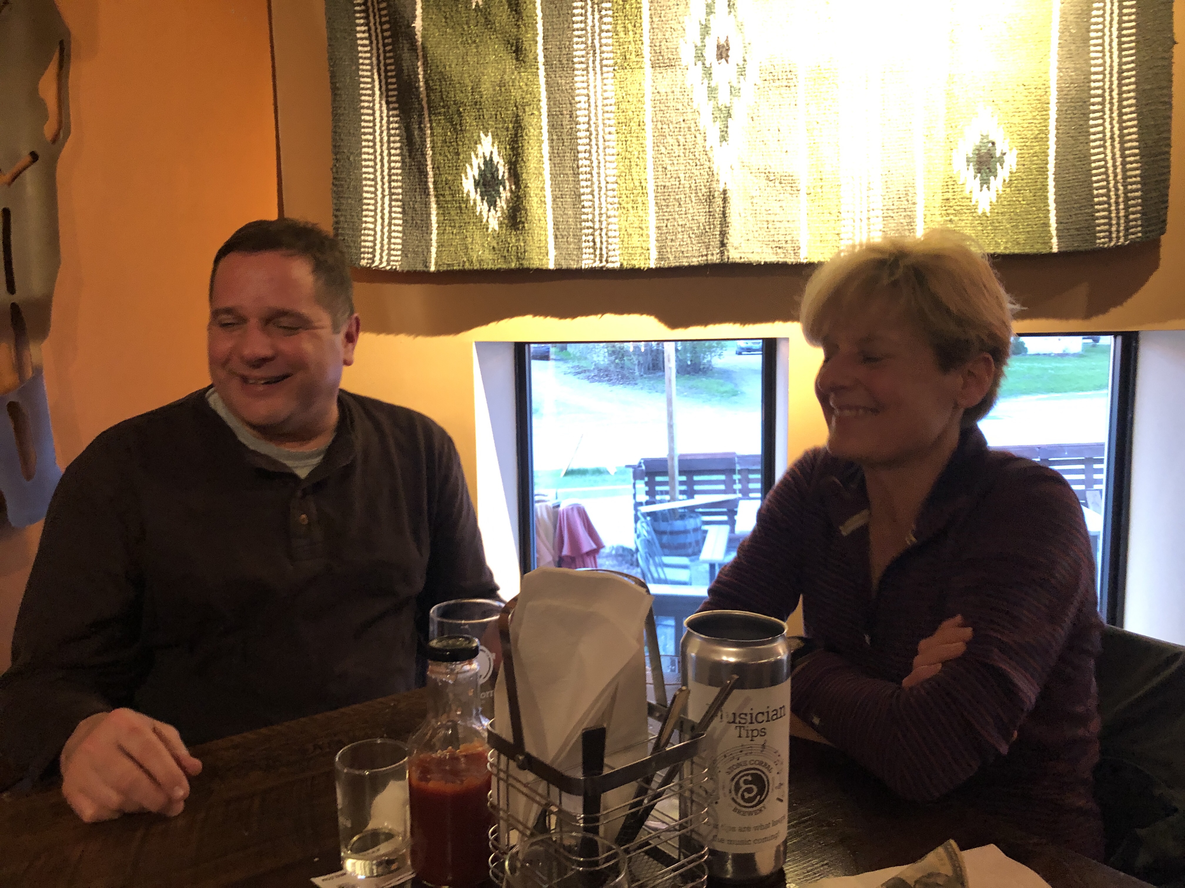 Later this revenge I went in and met my friends mike and Connie . They had my good friend and old boss Les out for dinner . I was a surprise visitor!