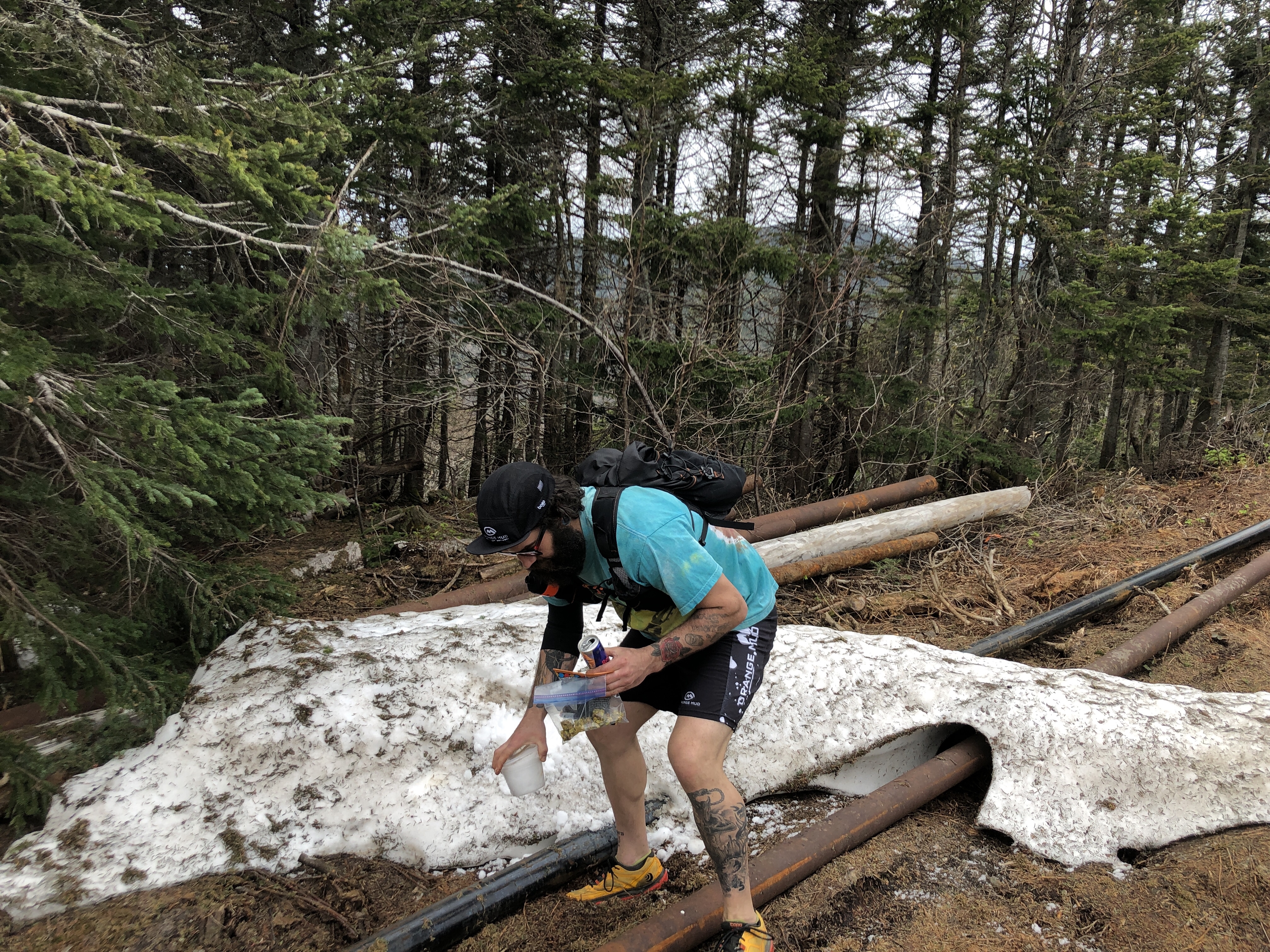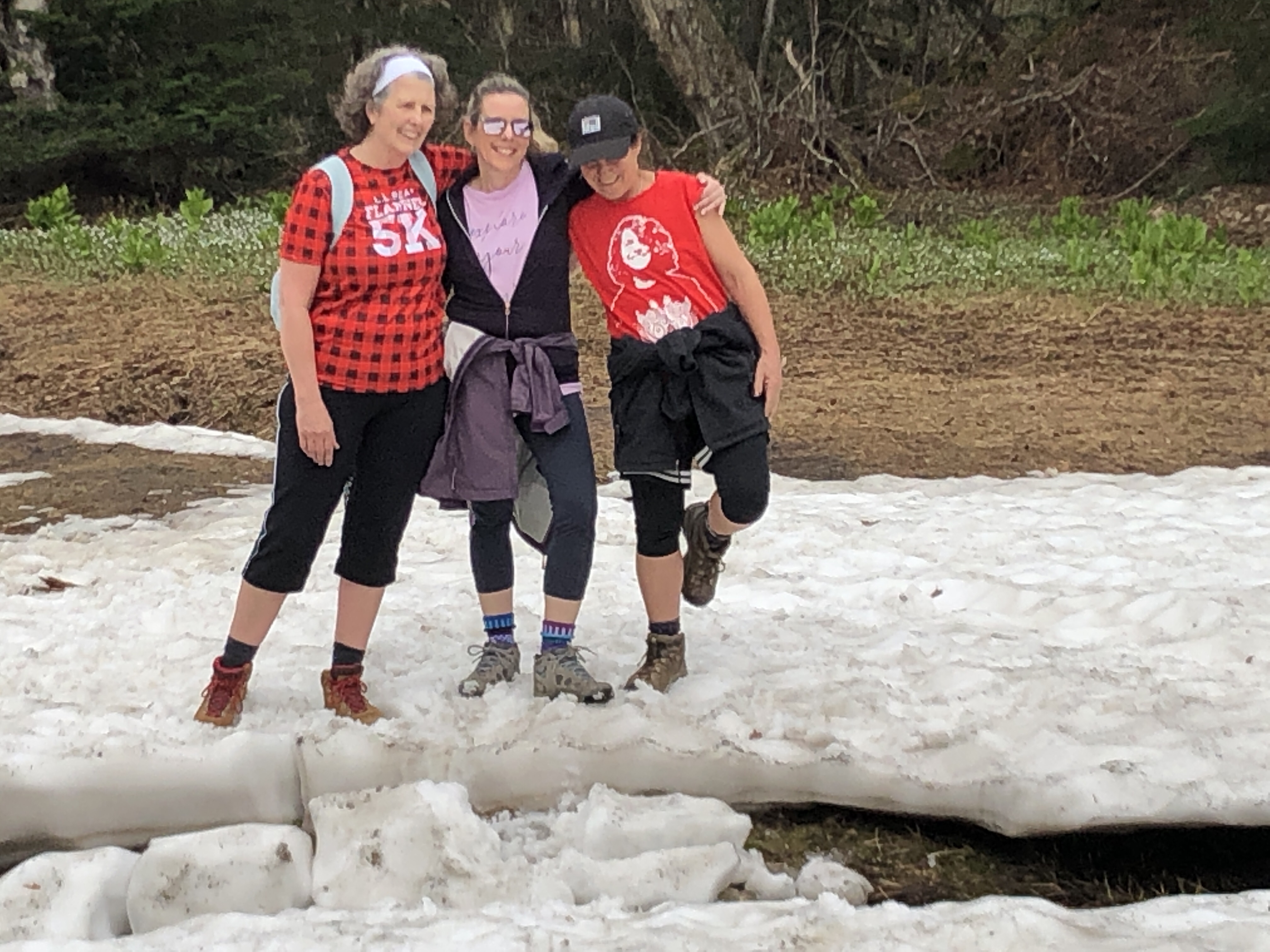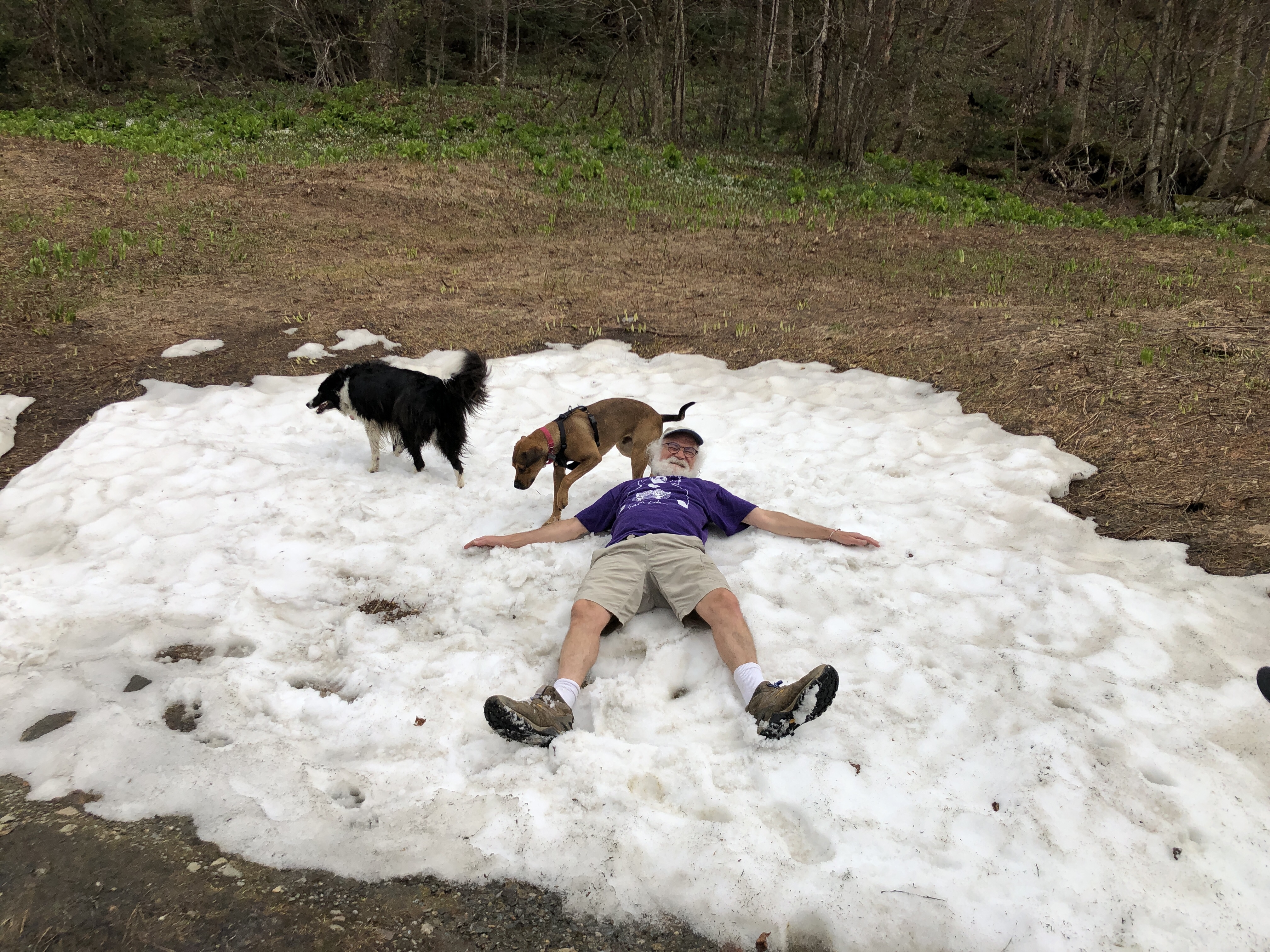 We had to get down quickly because people were showing up at the house for yoga around four… Phil and Jim stop to pick up some snow for the Jim’s Sister Hazel Who hadn’t come on the hike