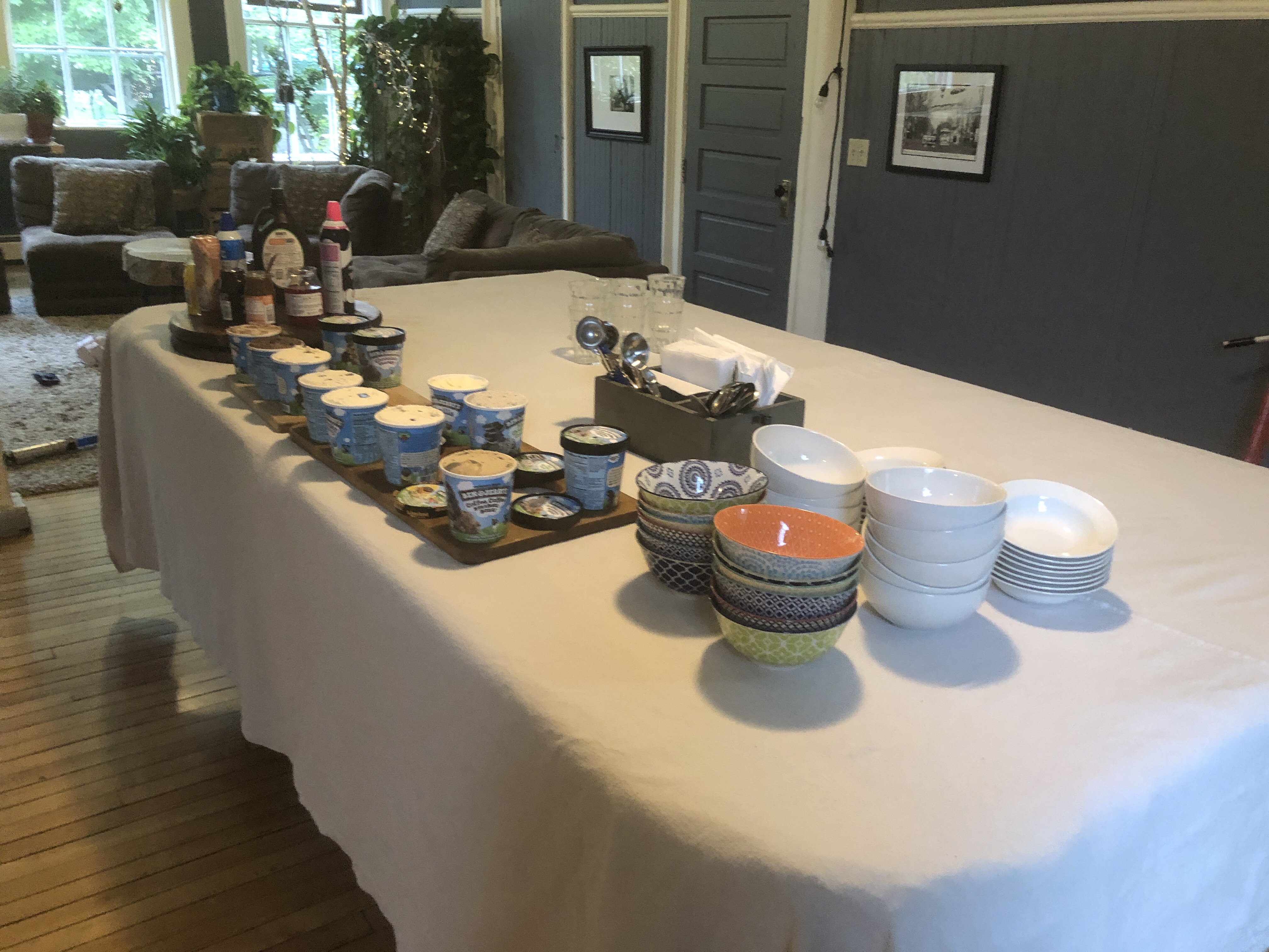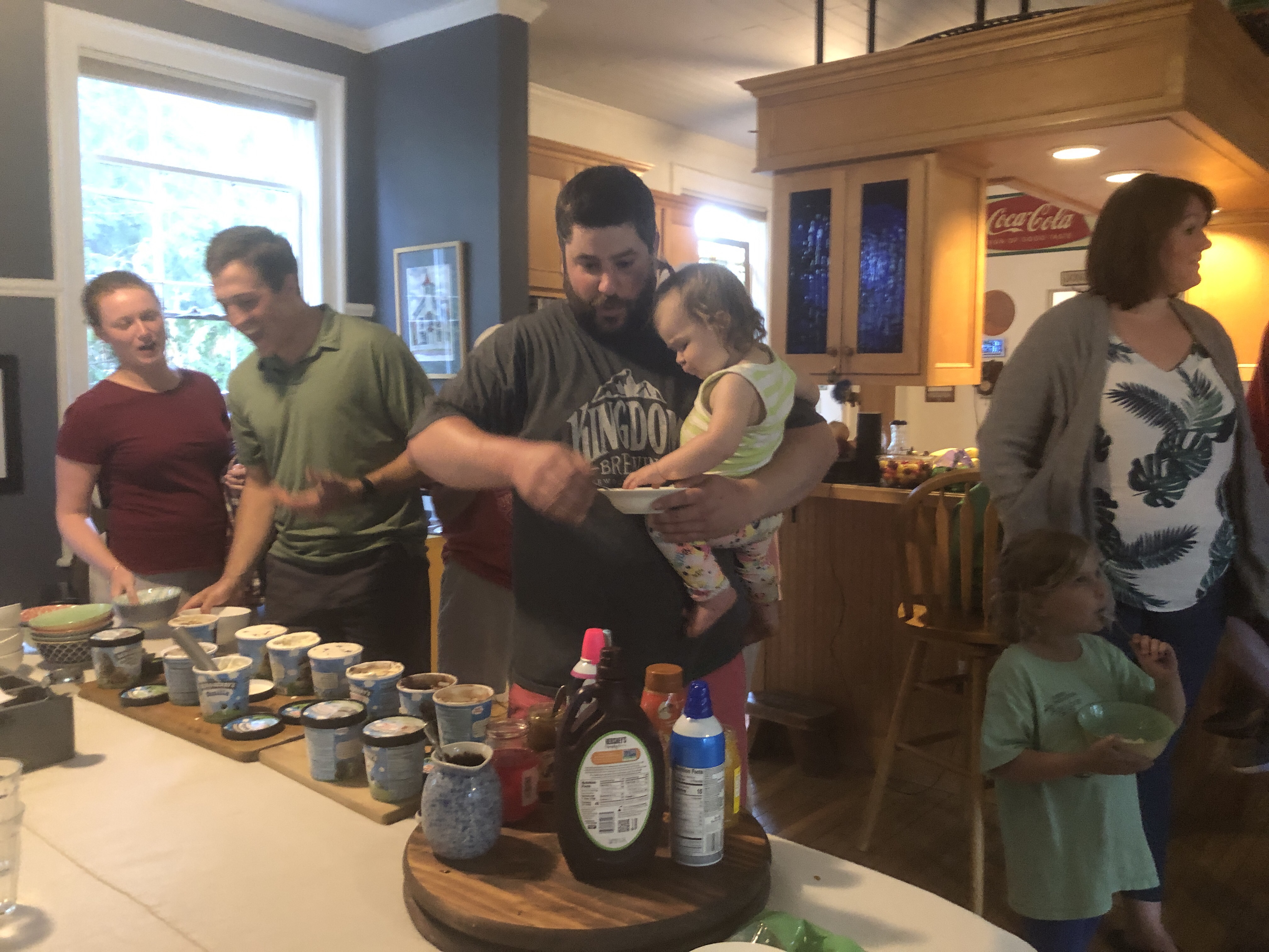 Around seven we had about 30 folks over for a little block party. Our neighbors John, Josh and Ashley are all moving… Just across town thankfully… But we decided it was all great to get together and eat some ice cream.