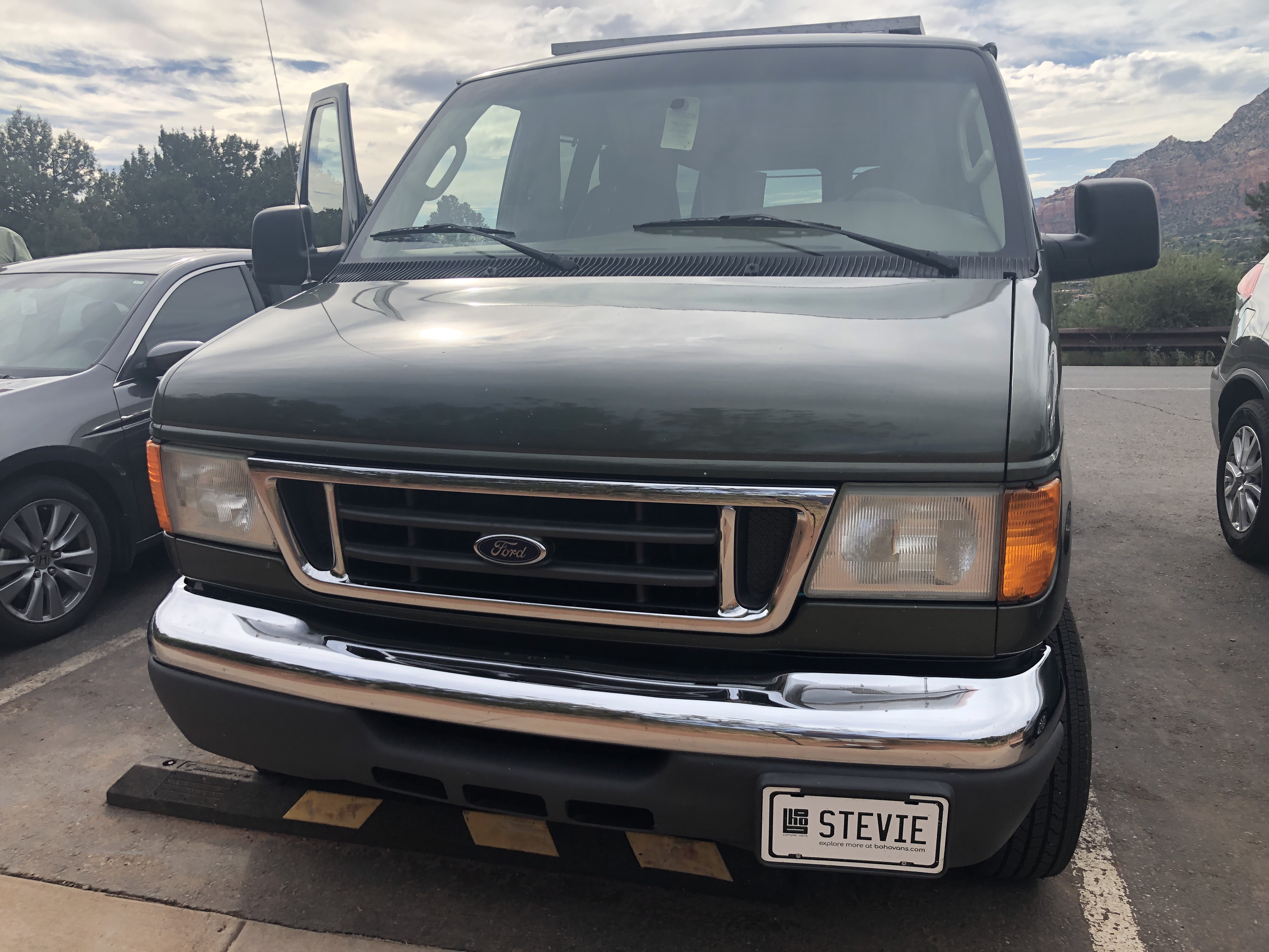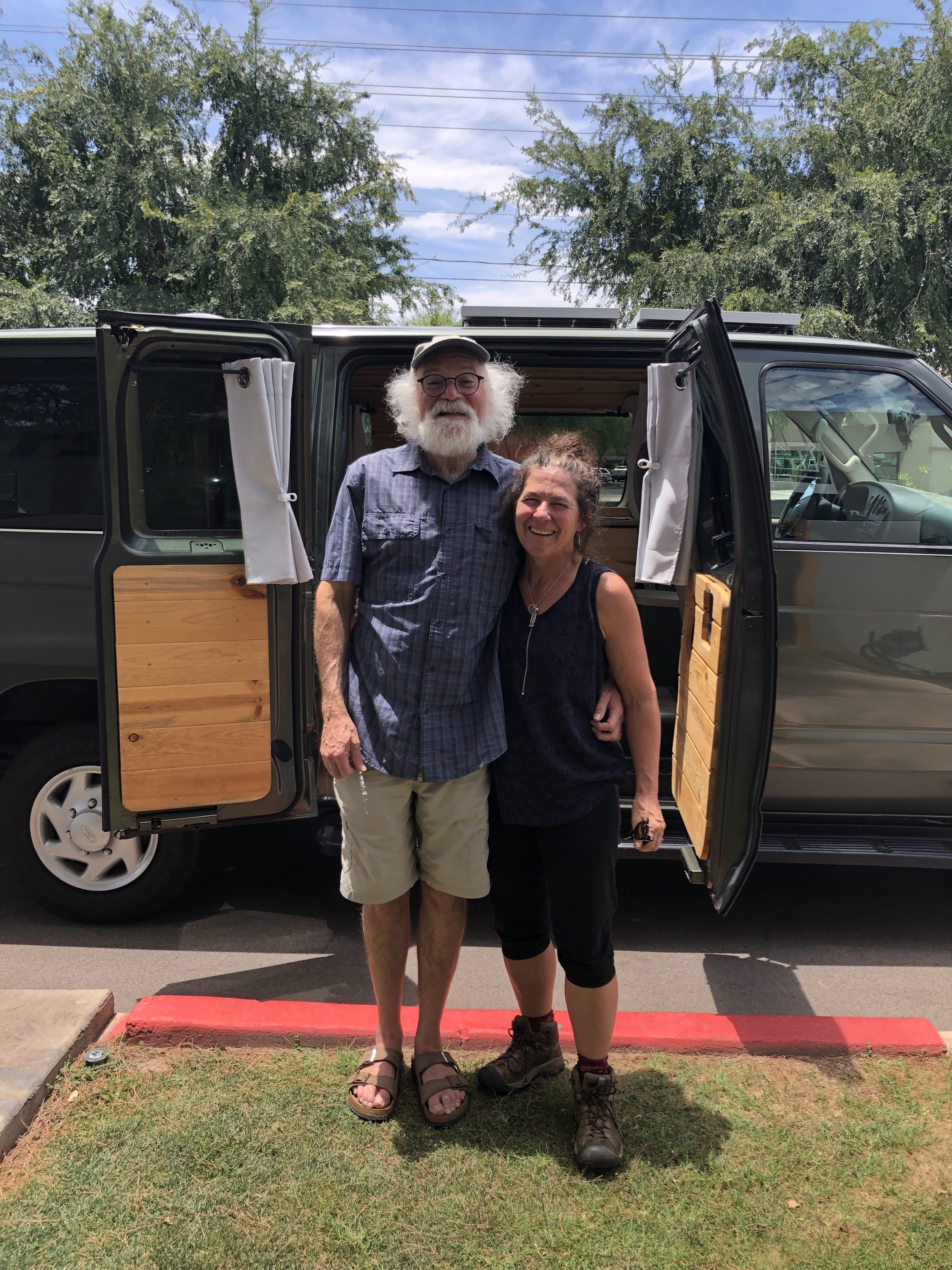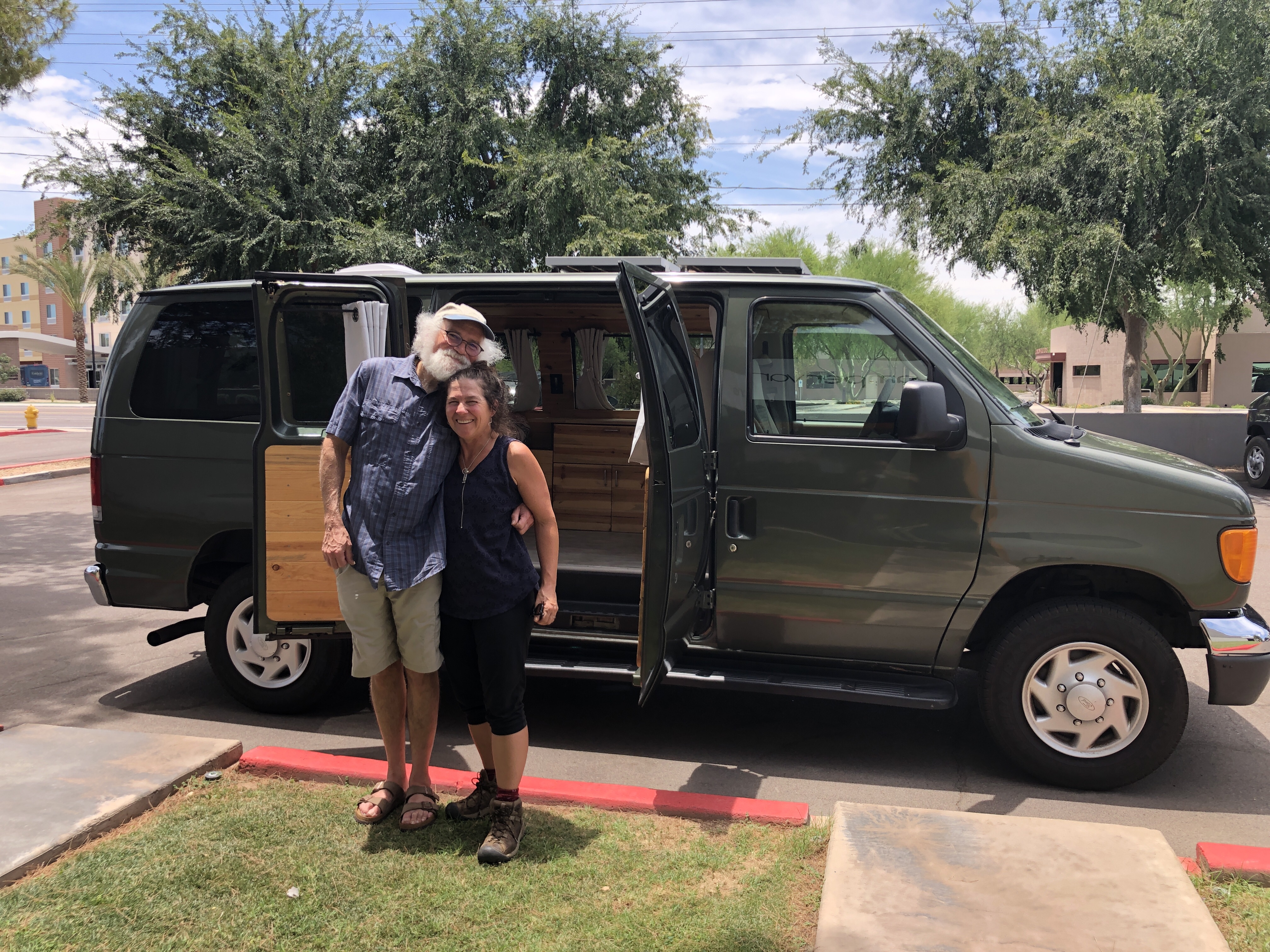 Greetings from Cave Springs Arizona. Diane and I are out here camping for about 10 days in Arizona and New Mexico. We’re gonna meet up with the boys on Tuesday and Wednesday and then go to a festival. As soon as we got out here we went to pick up our rental camper van. We are renting “stevie” from a really nice company called Boho.