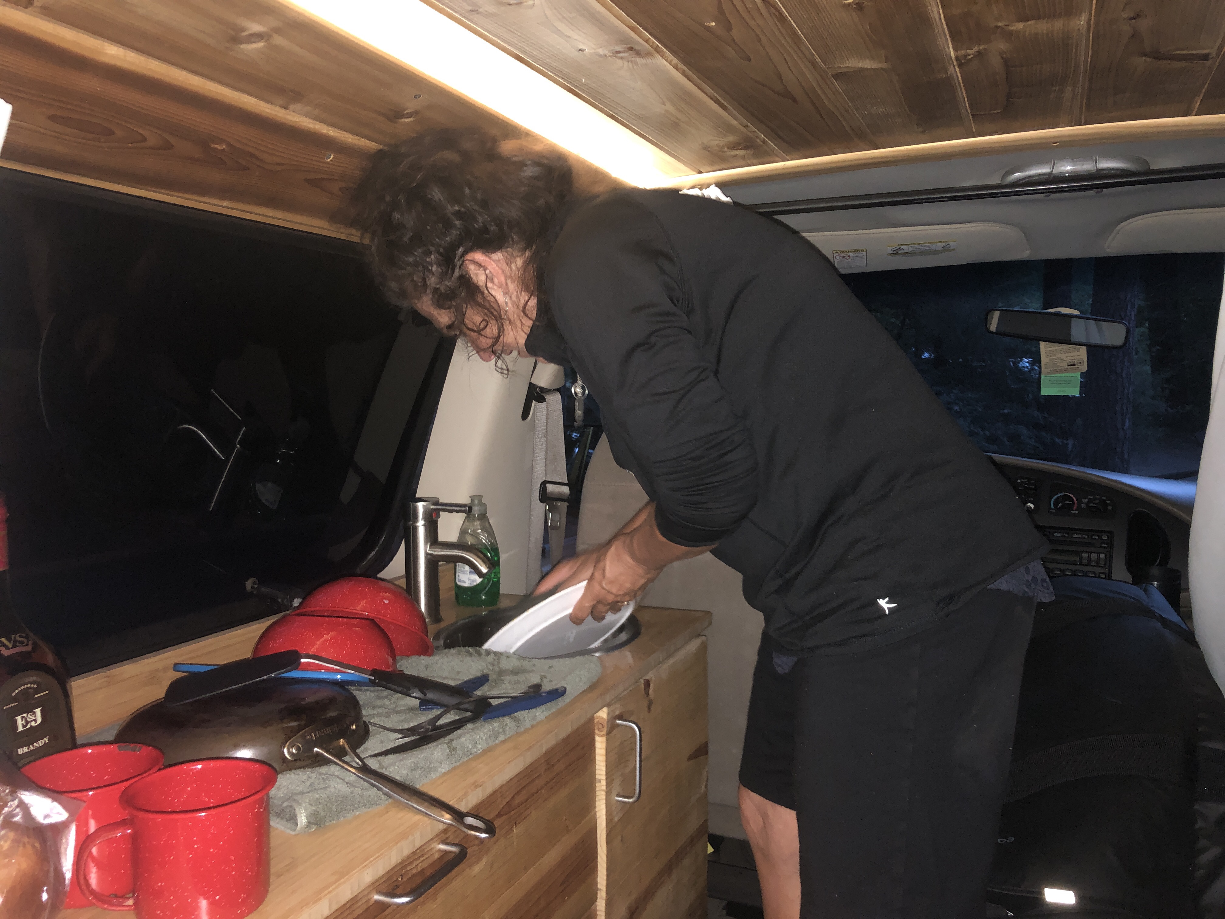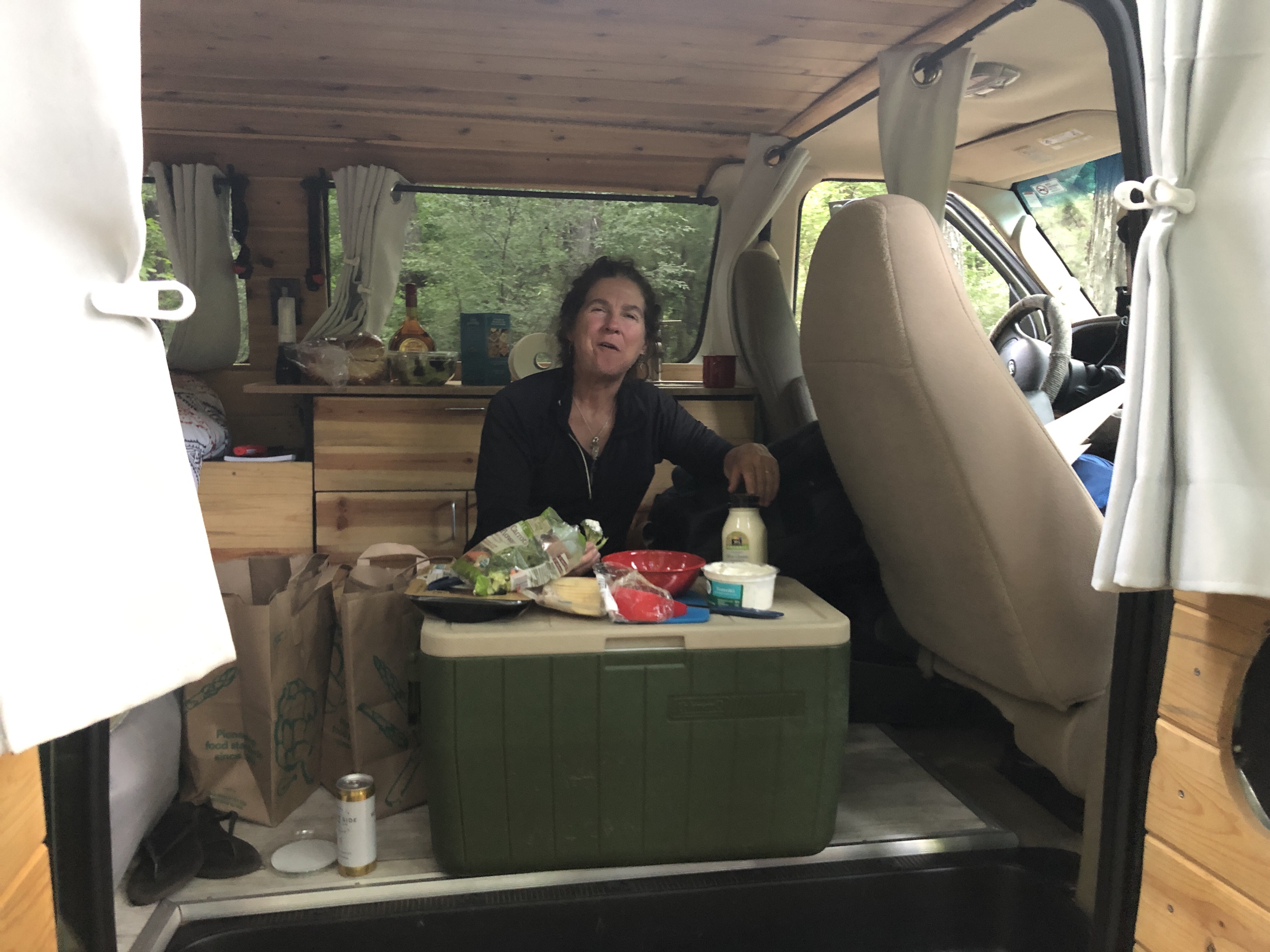 Now we’re curled up in Stevie for our first night of van camping