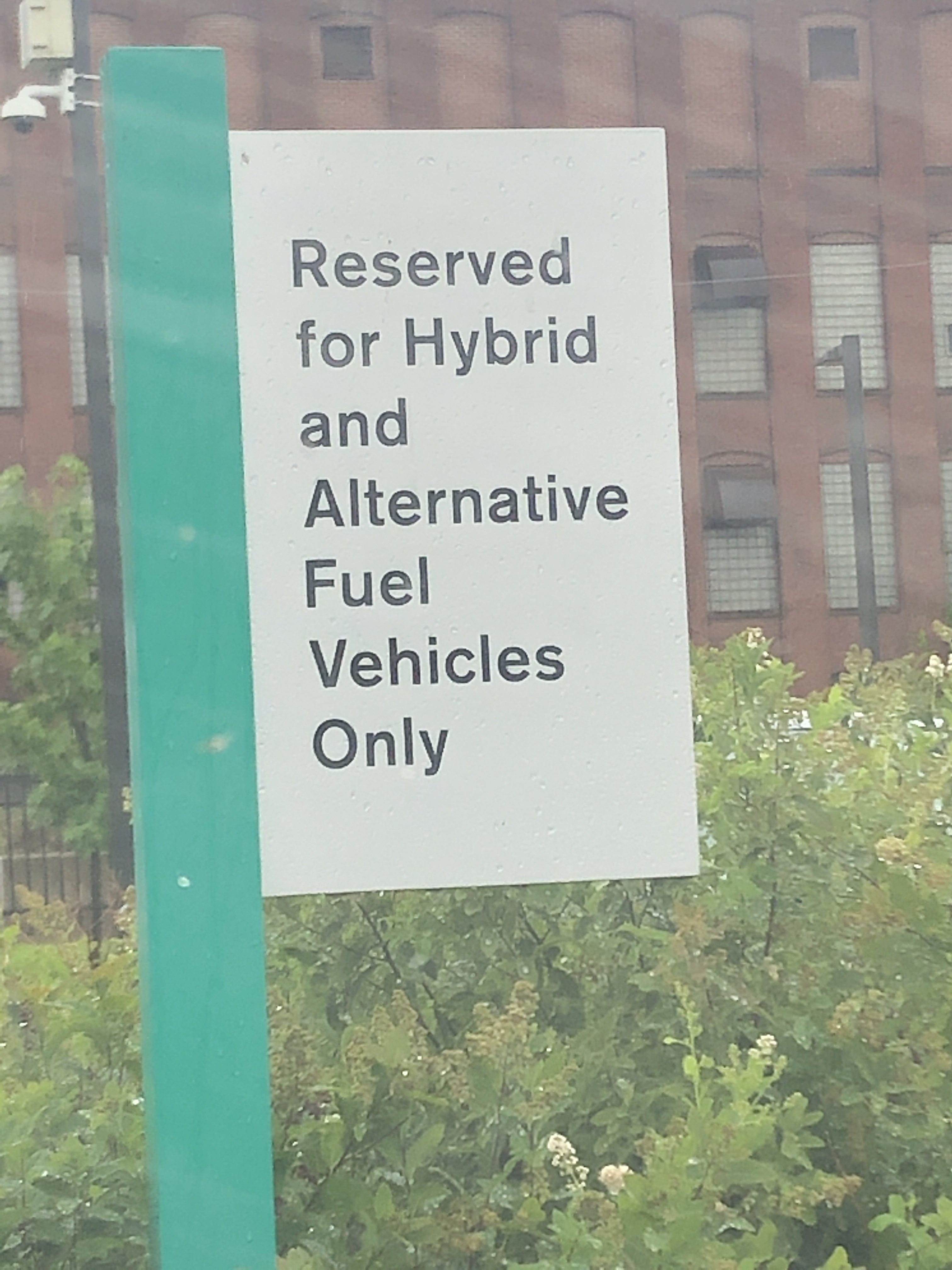 I drove to my meeting in Holyoke Massachusetts this morning arrive just one minute before the meeting and pouring rain and couldn’t find a parking spot until. I saw the spot Made just for the Prius I was driving