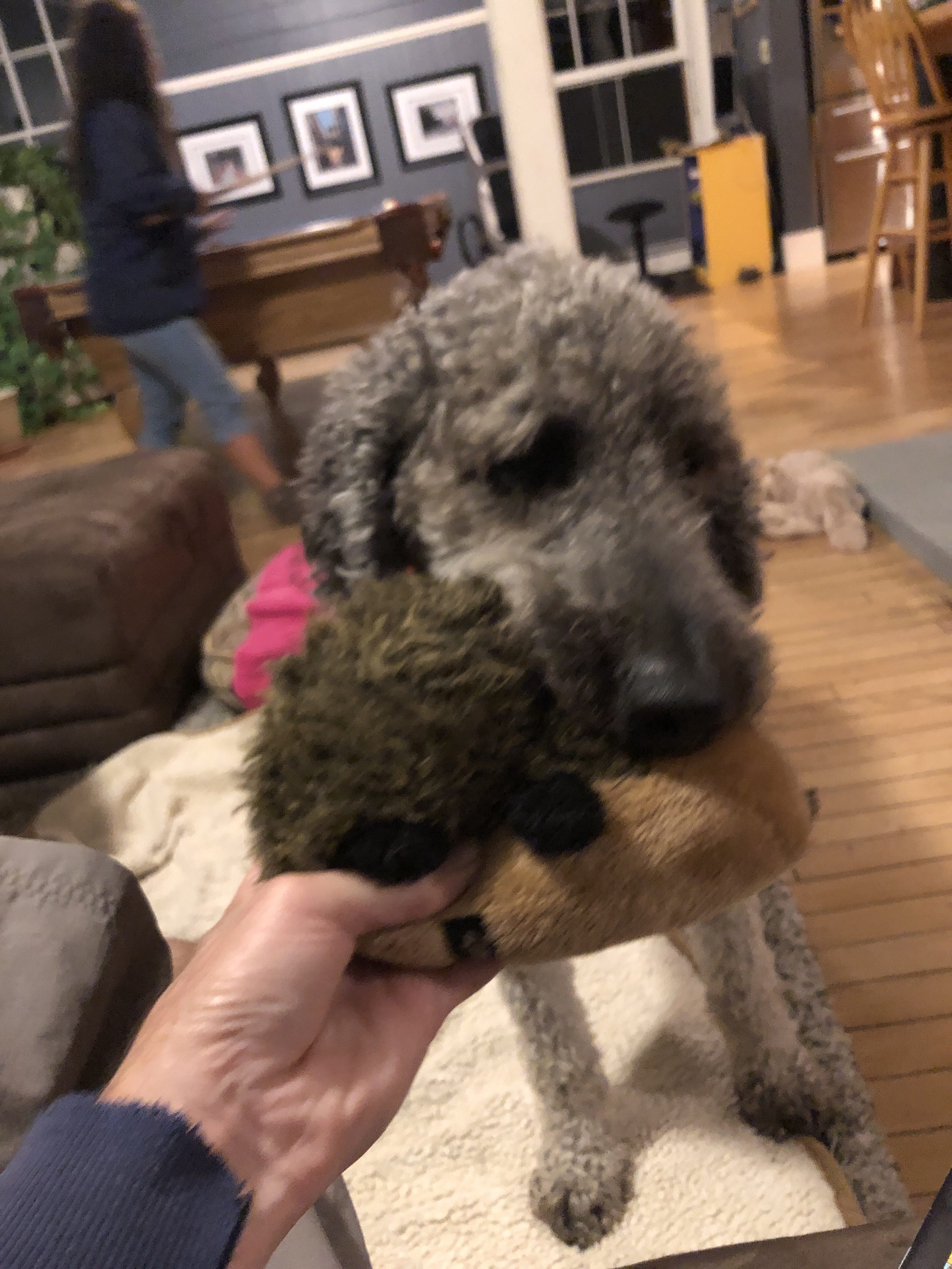 Just got home after 12 days on the road . It’s SOOOO nice to be home . We met friends Sue and Jim for dinner then came back to two tail wagging dogs . Satori, greeted me at the door with her favorite stuffed hedge hog “hedgie” for a game of who-has-hedgie (chase, catch tug-of-war)