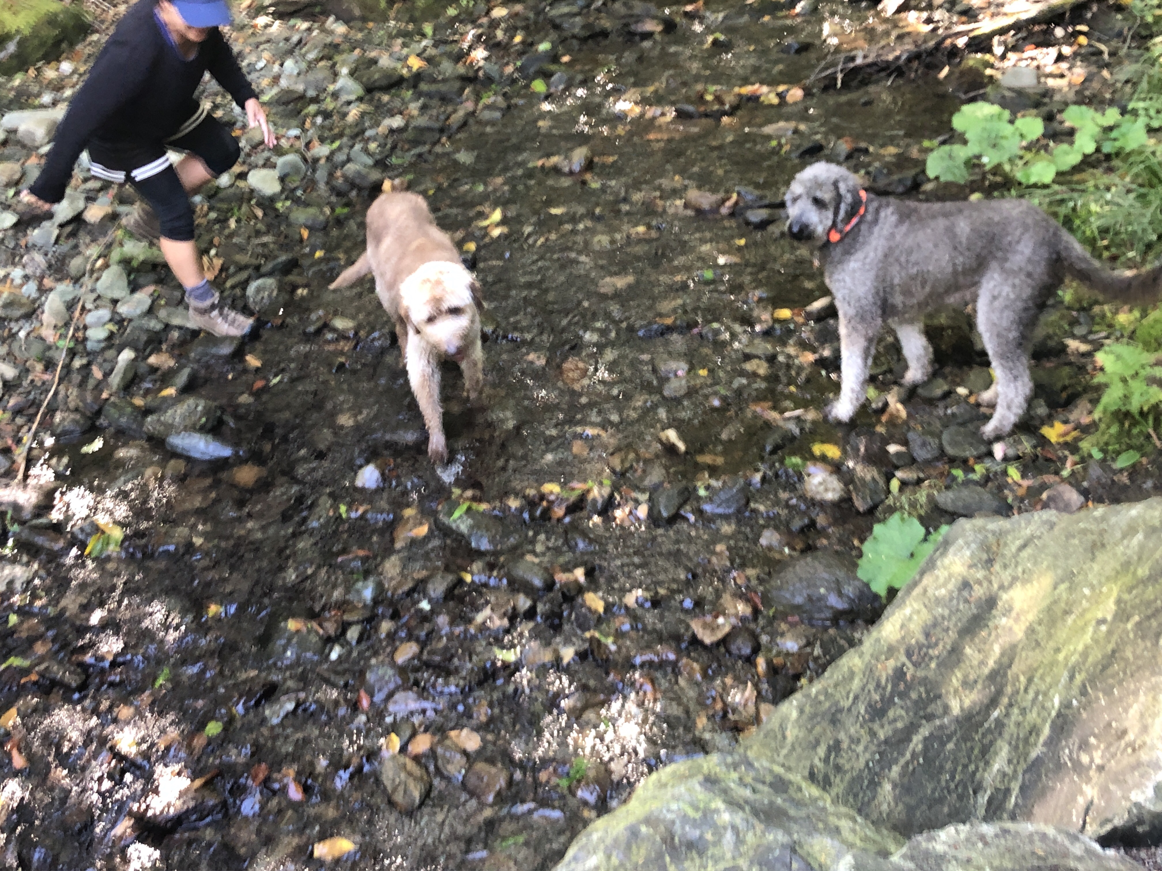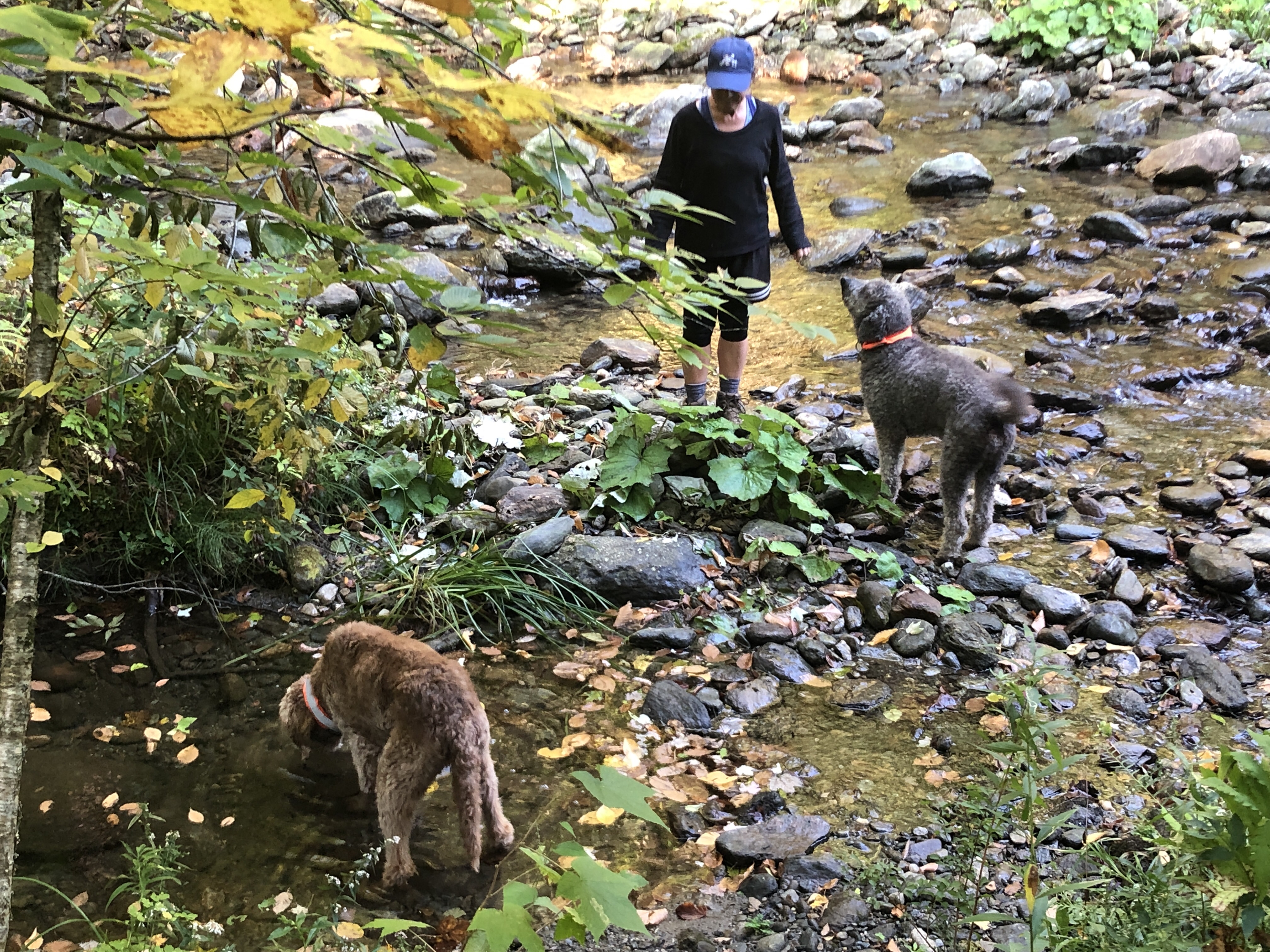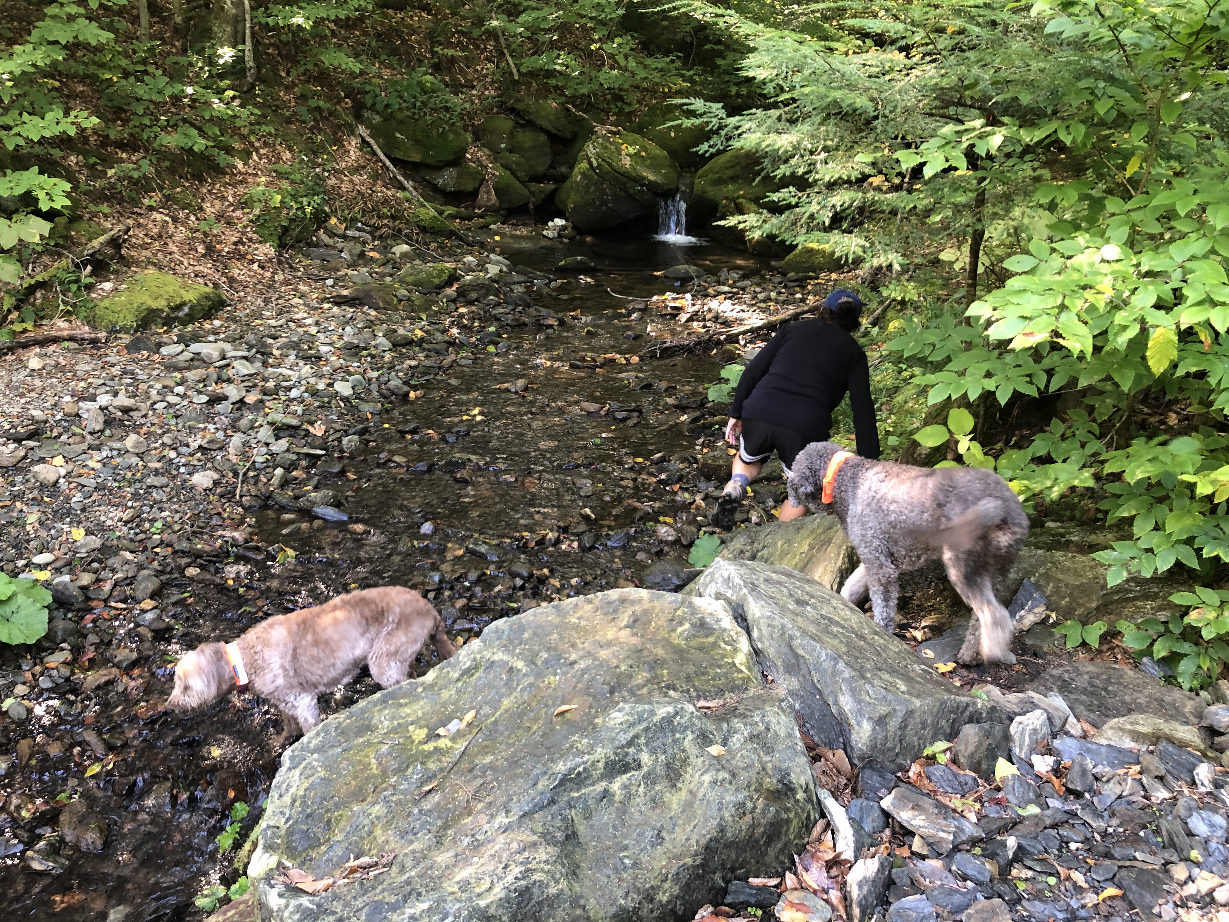 We begin the day with a really nice long doggie walk up in Honey Hollow. I was able to jump in a very cold stream with Chai