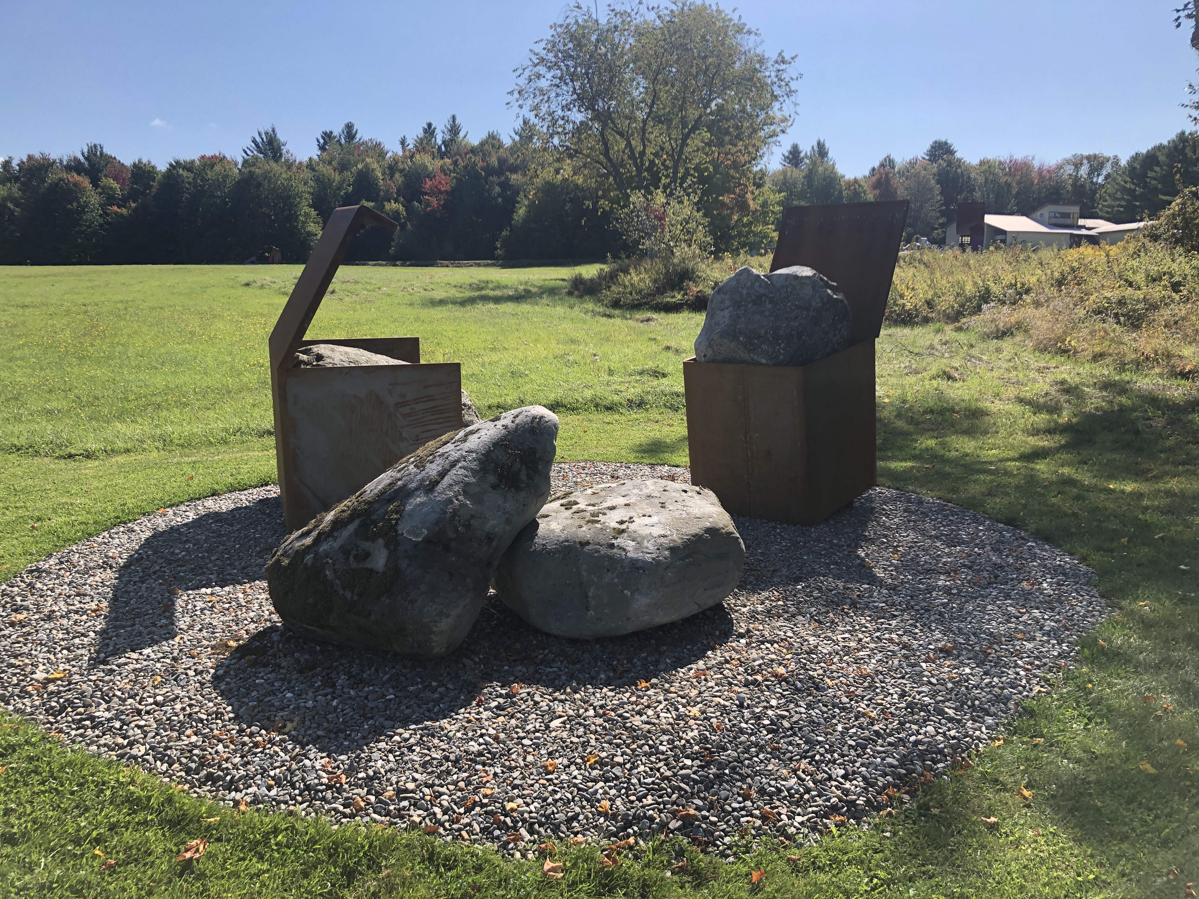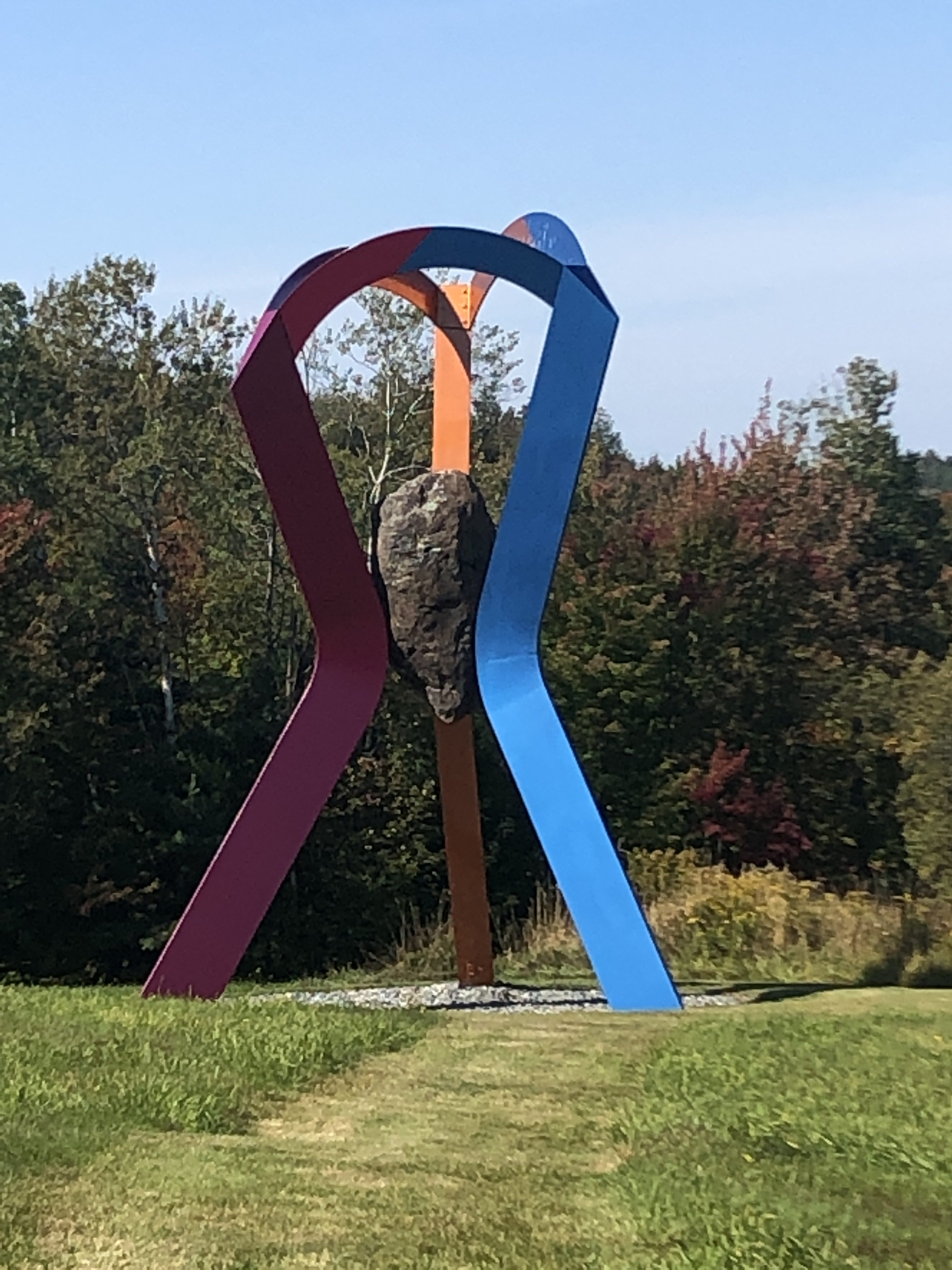 We drop the dogs off showered and headed the hour or so up to the border… We were going to be early so we decided to stop at cold Hollow sculpture Garden… It was something we always wanted to see employee was it worth it. The lovely co-owner Sarah showed us around. It’s all her Husband David’s work of beautiful steel, Stone and cement. We definitely have to come back up here for a longer look around. The pieces were simply amazing as was the setting… People as well