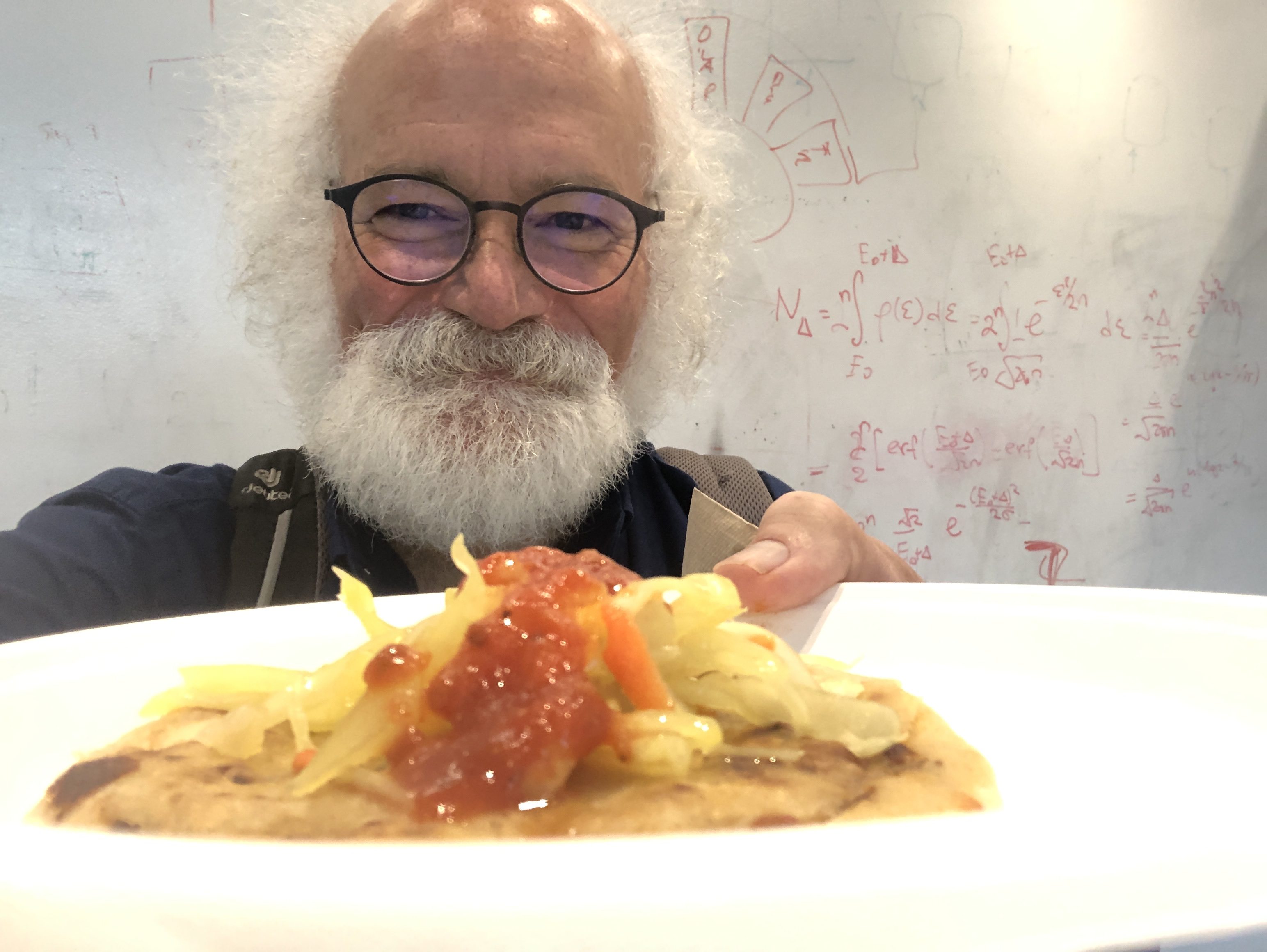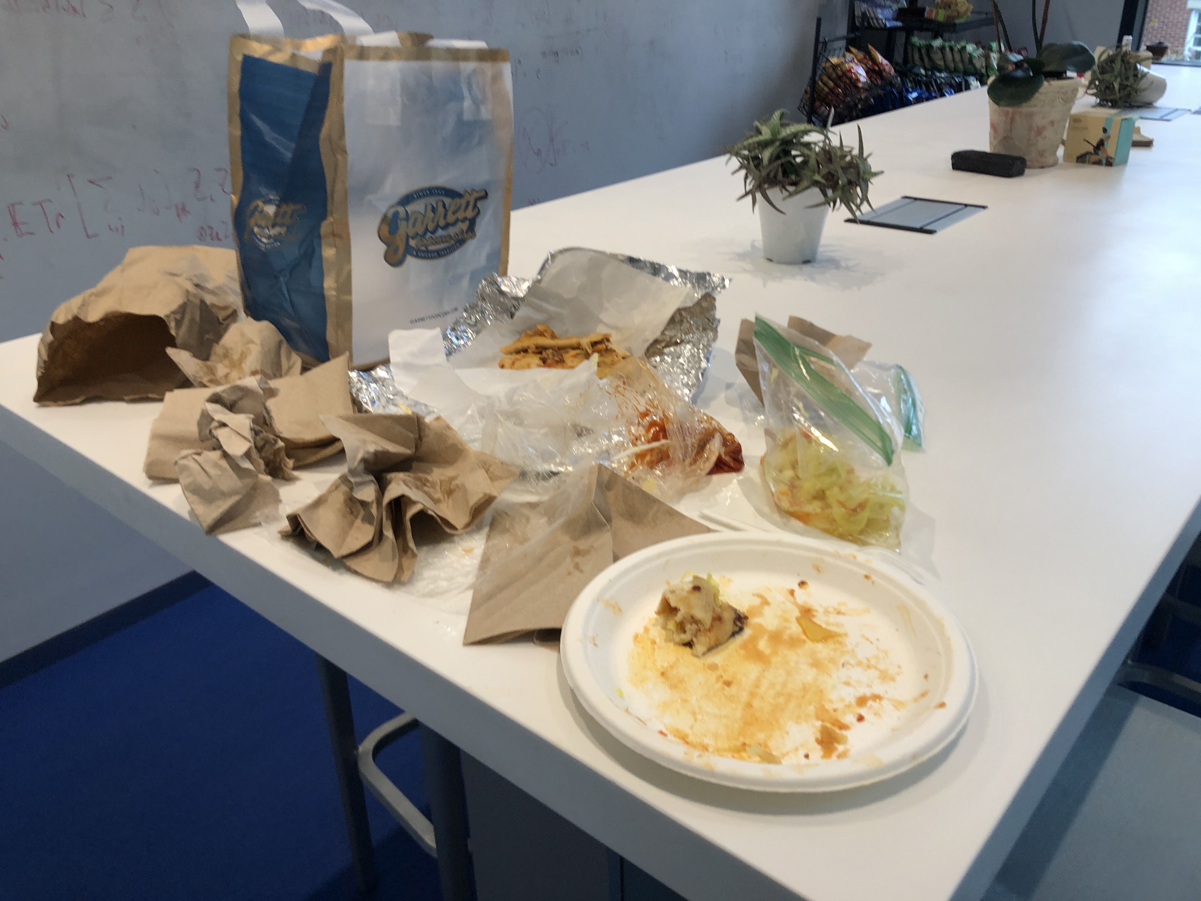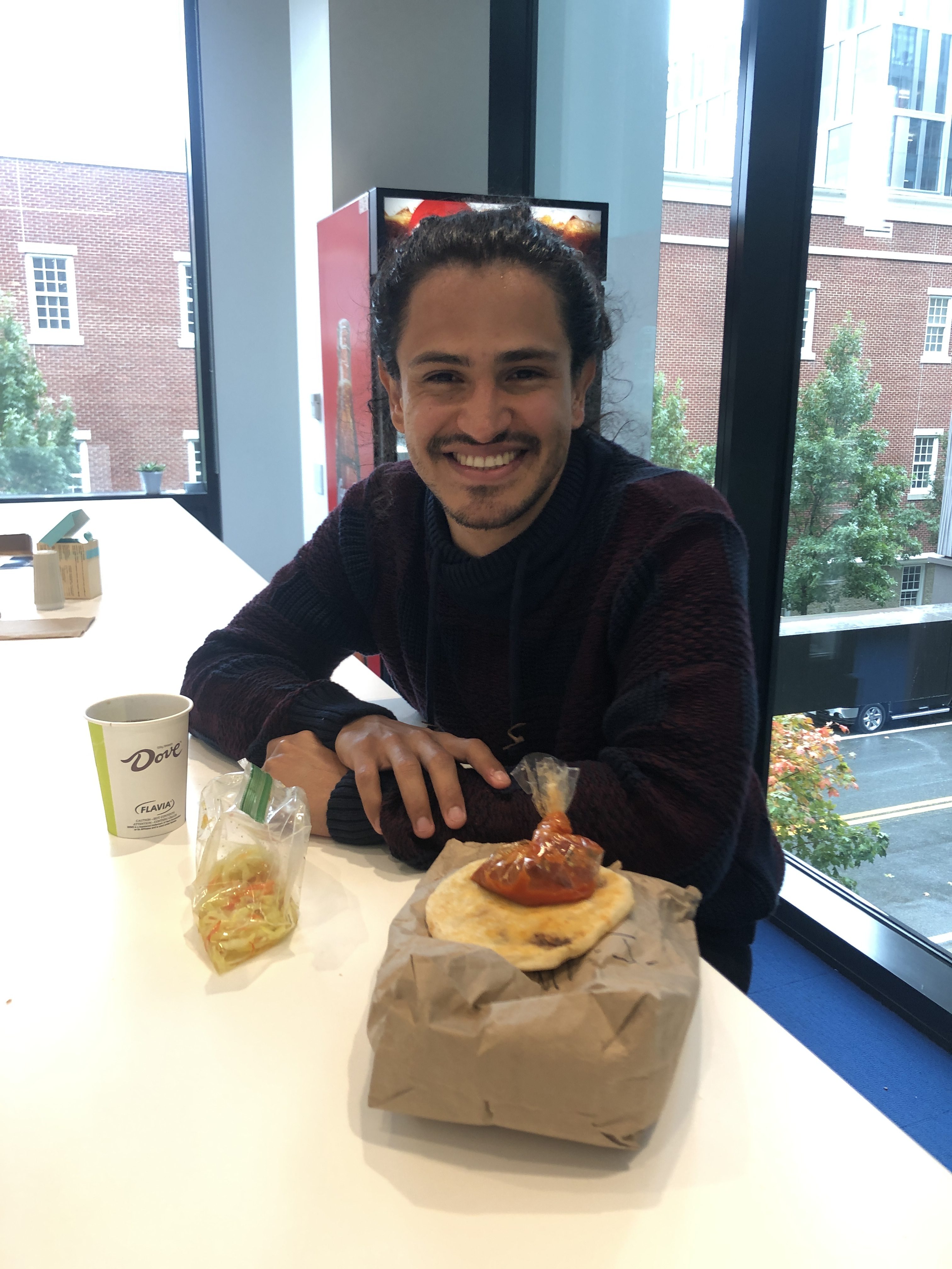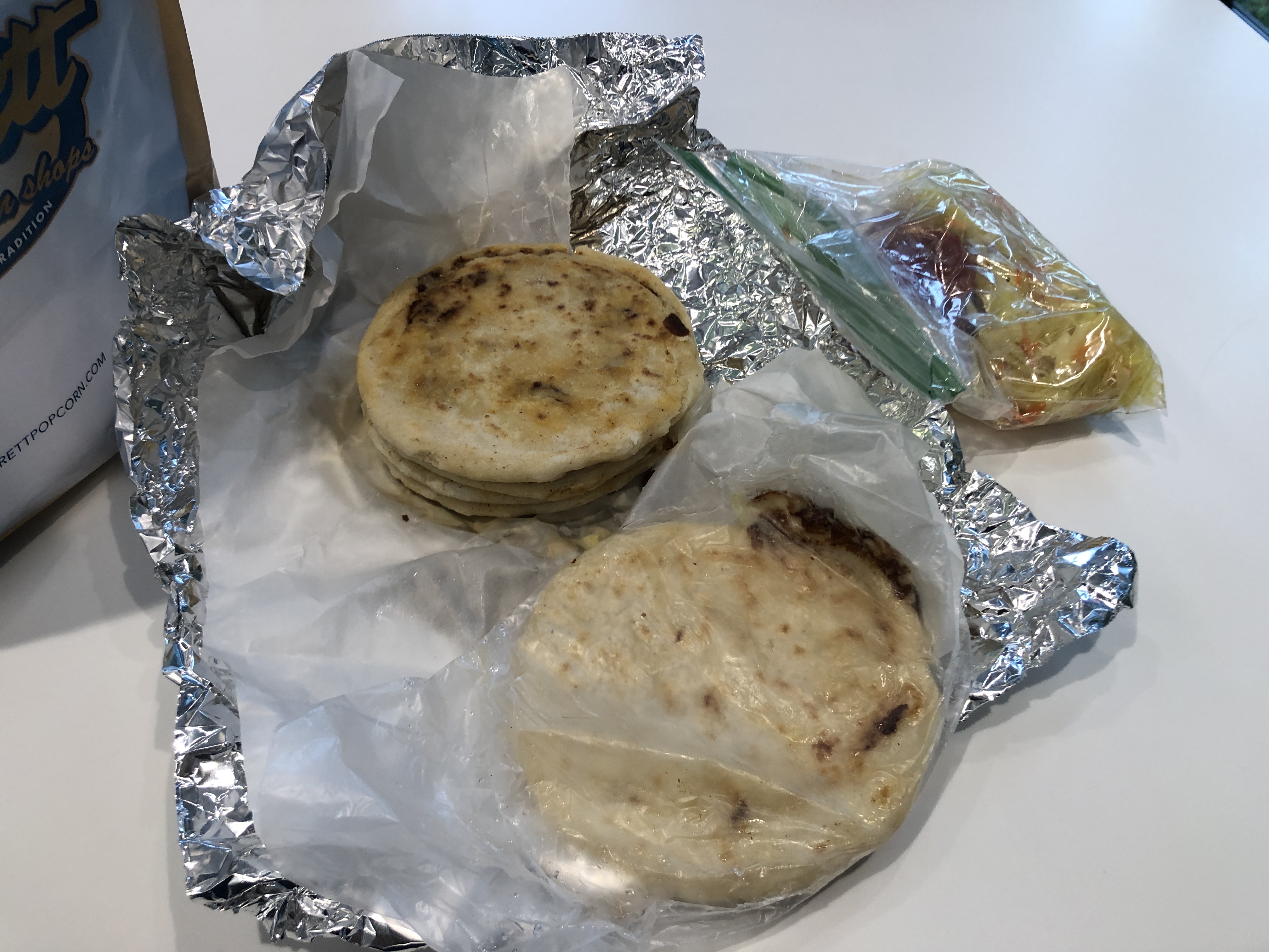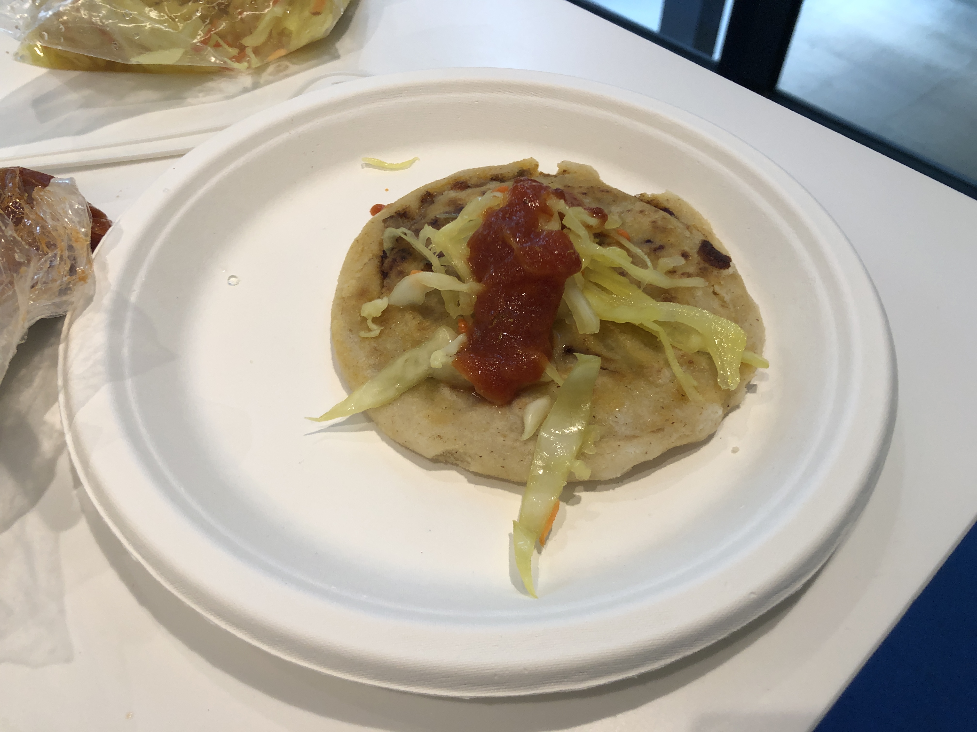 I had a nice surprise waiting for me… Daisy one of the people who works in our building had left me some homemade Salvadoran papusas. They’re made out of Masa and water and are served with this really cool pickled cabbage and red sauce. Really delicious.