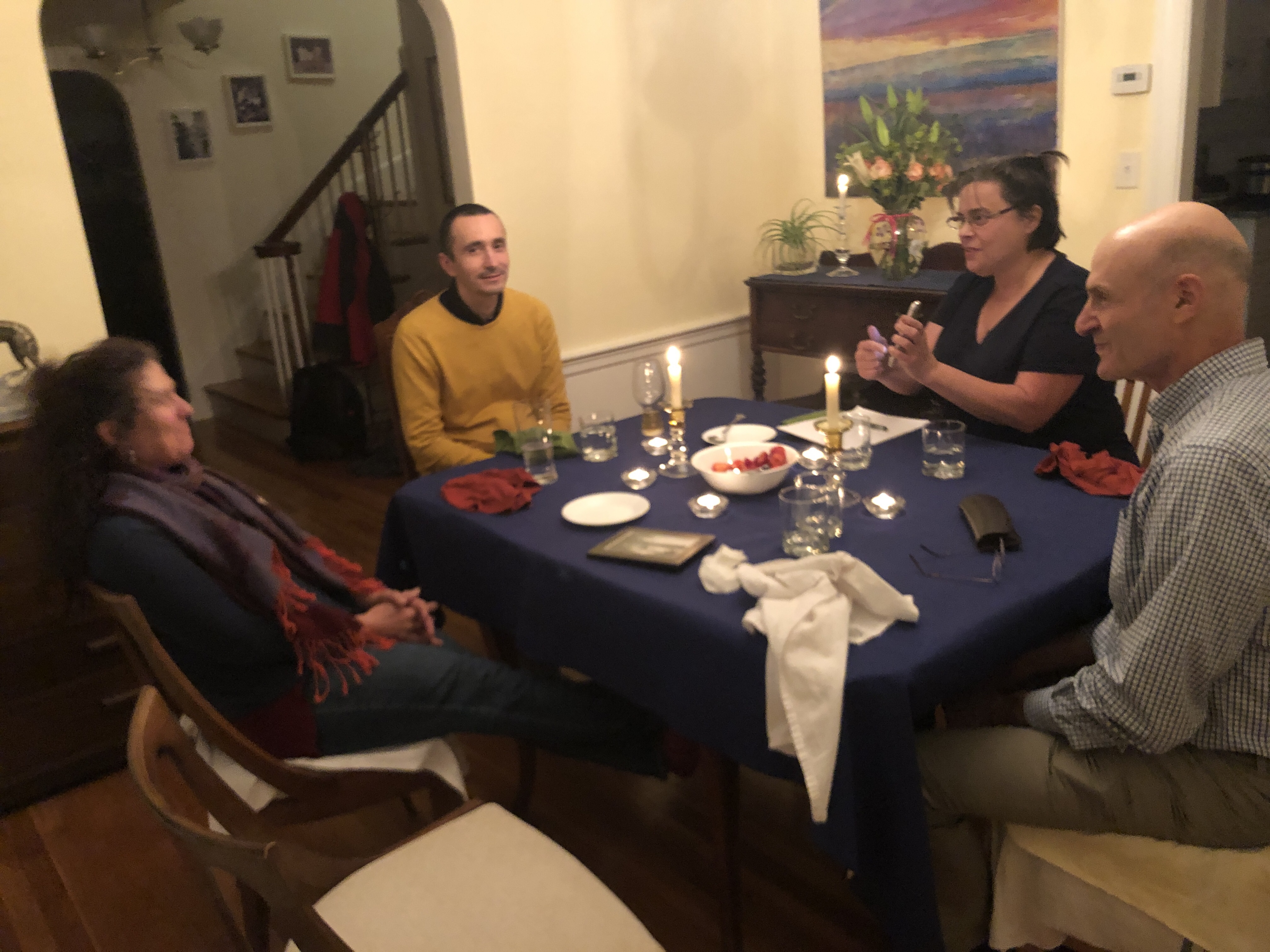 Long productive day working with Florin. Day ended with a really great visit with my cousins Sam and Martha . We hadn’t seen them in a long time . They invited forum to come along too which was really nice. It was so great catching up with them. One cool surprise was Martha’s paintings . She took up paintings g a few years back and she’s really, really good . We got to hear about Sams work on a new form of funcal MRI . It’s based on the change in the mechanical properties of neurons when they fire .