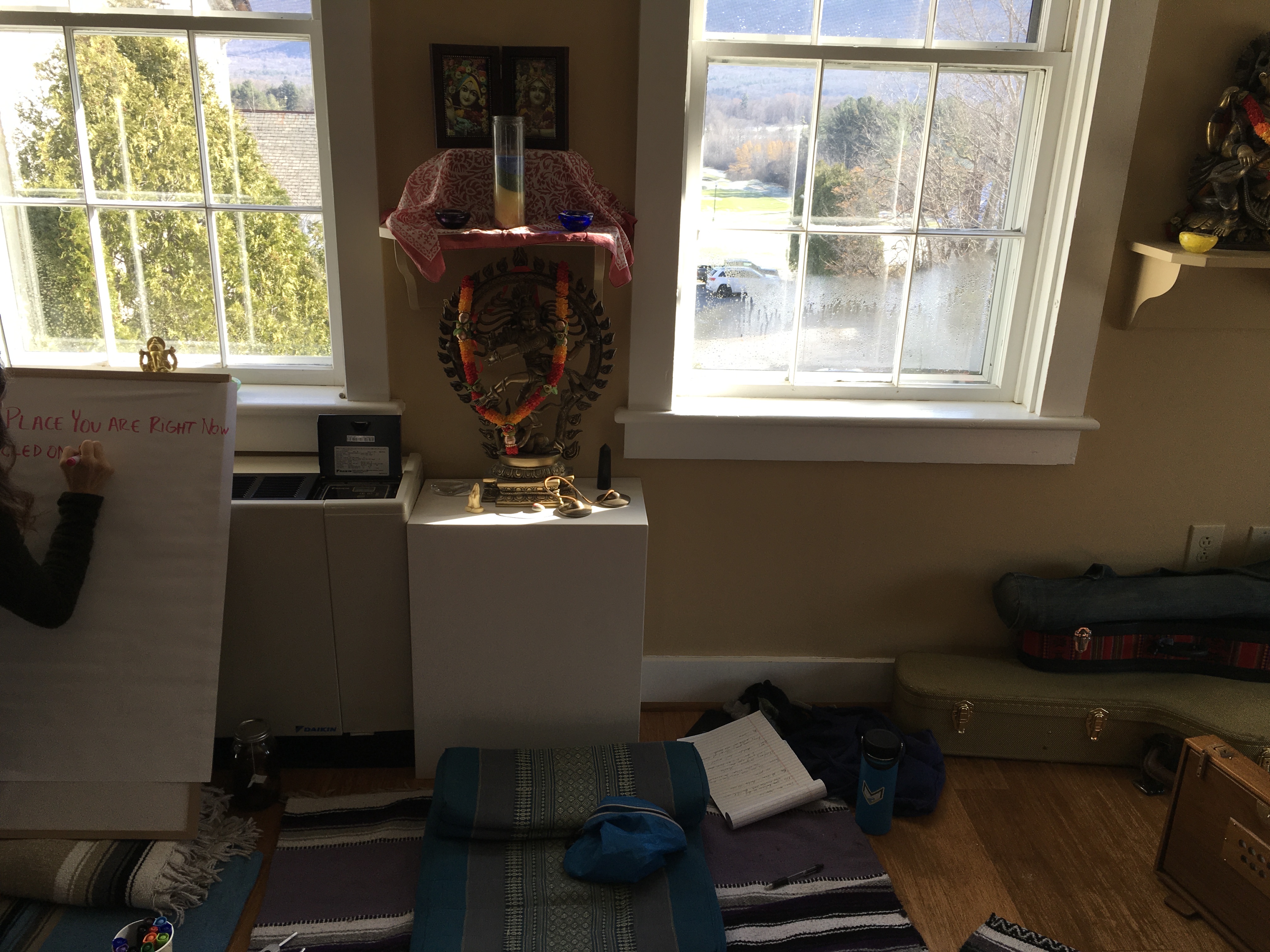 Diane and I spent a really relaxing and interesting day at a yin yoga and poetry workshop here in manchester vt. Its only a 3 min walk from our fromt door .. which was a good thing since it was 17 degrees F this morning