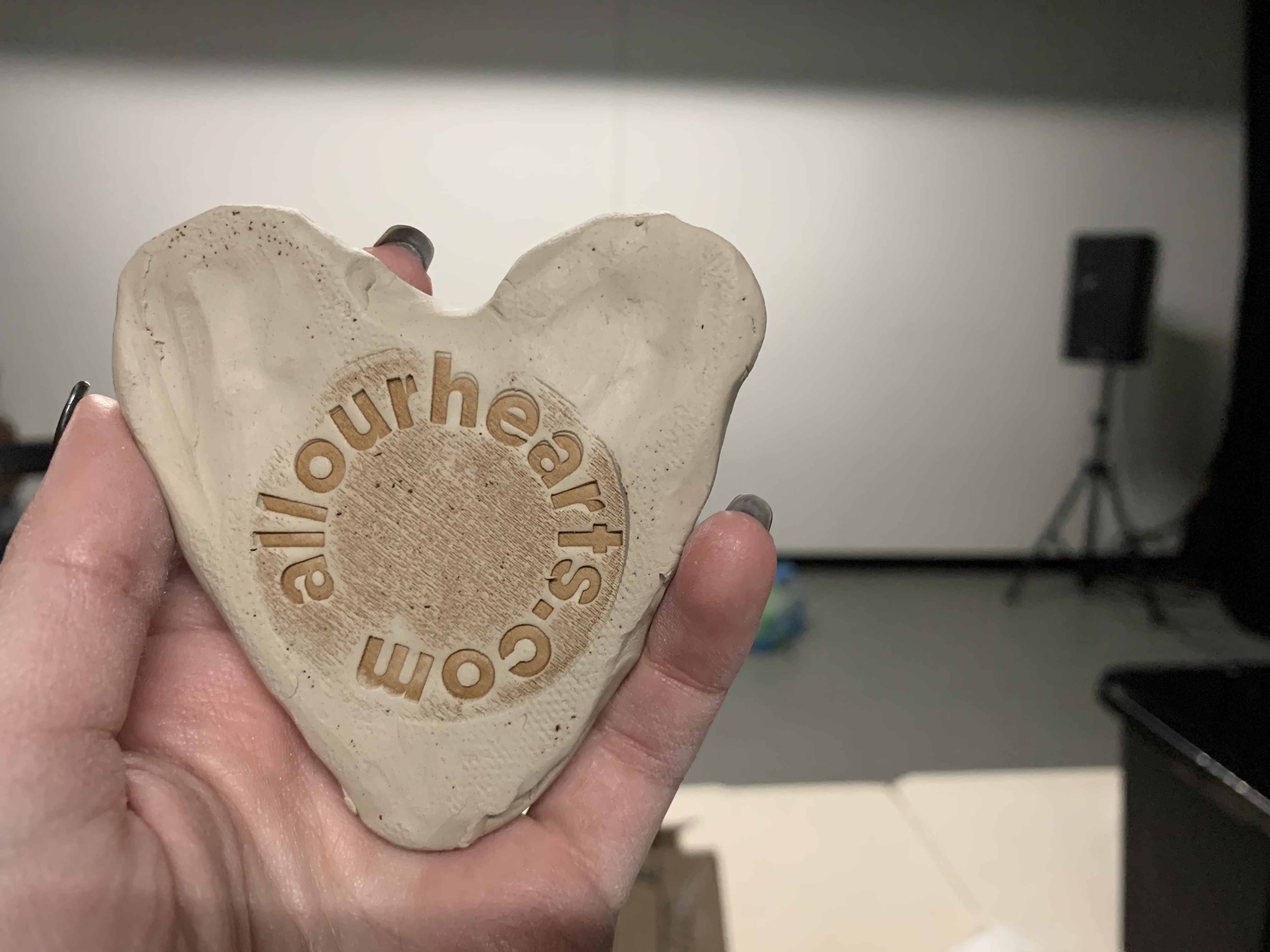 While we were her.. a project id helped on was going on at generator. My friend lena led a group of families through a project to make heart shape memorial stones remember opioid victims. My friend pike and I made the stamps used to put the url http://allourhearts.com on the back.. the families then wrote The loved ones name on the front , I just heard from lena that it worked well !