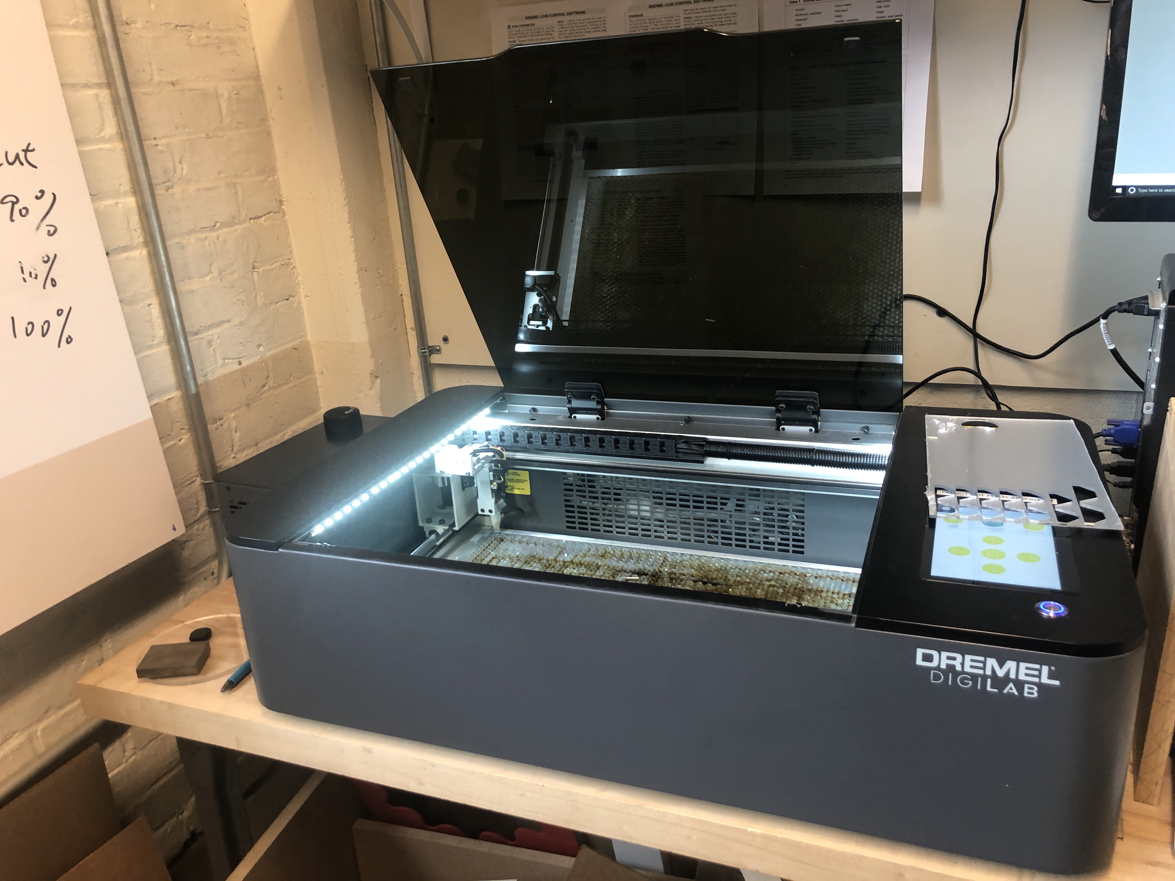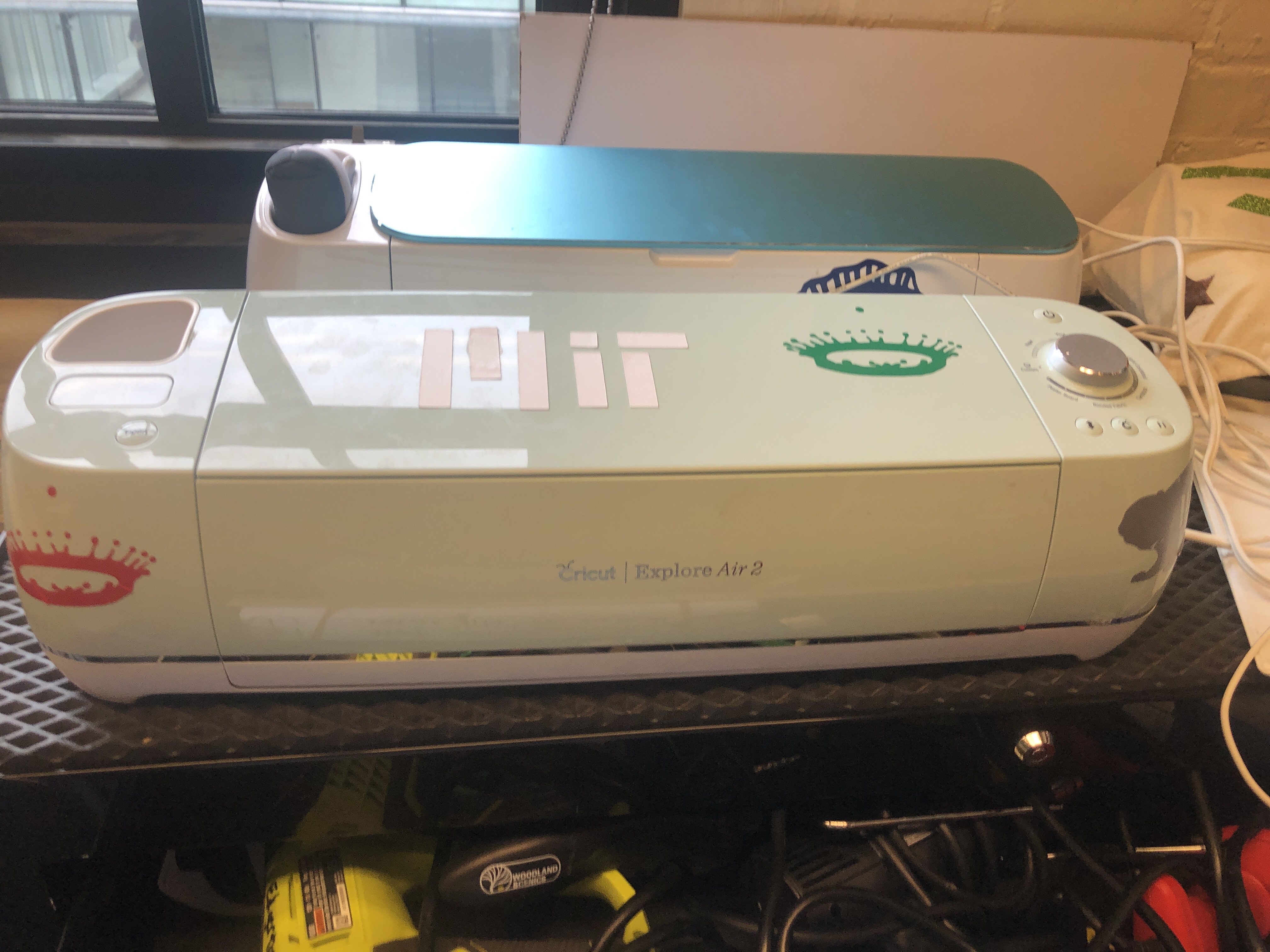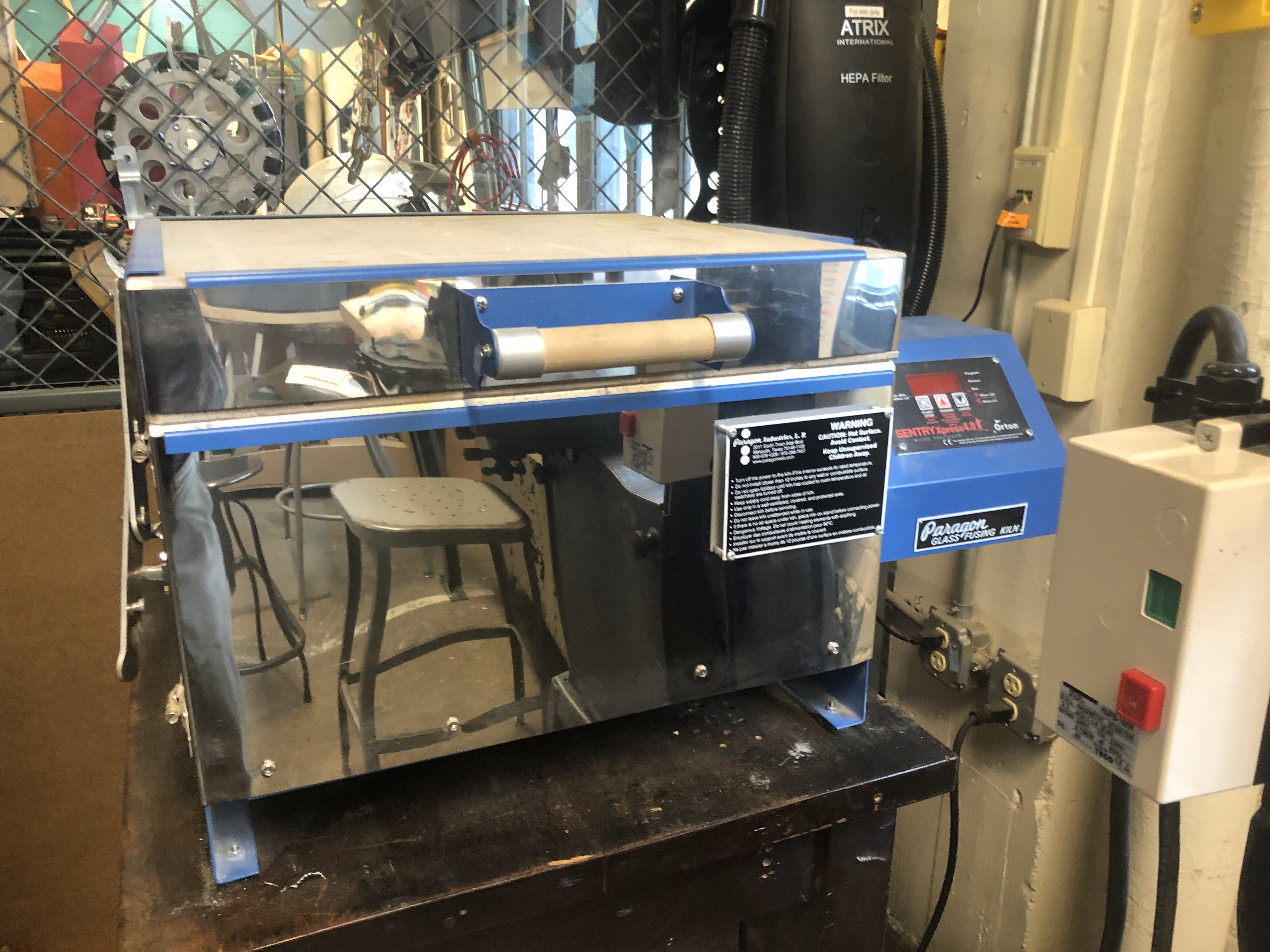 They had some nice tooling there for a small shop. Including a small compact vinyl cutter, glass fuse or, in a very compact laser cutter