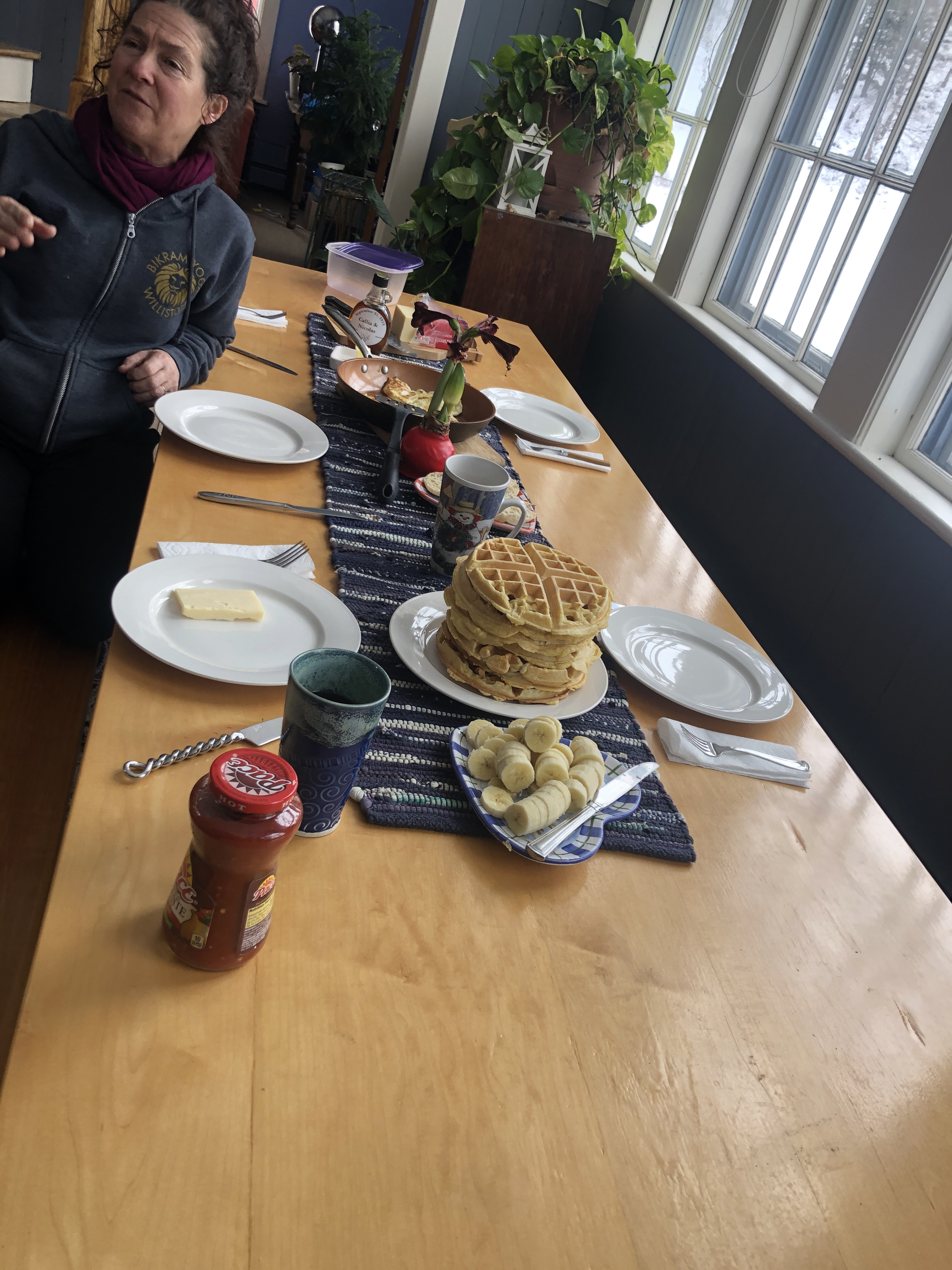 Nice quiet day around the house. It’s the first day that both Diane and I have been home together in almost 3 weeks. We spent some time working with roommates bringing in wood, cleaning up and had a really nice brunch
