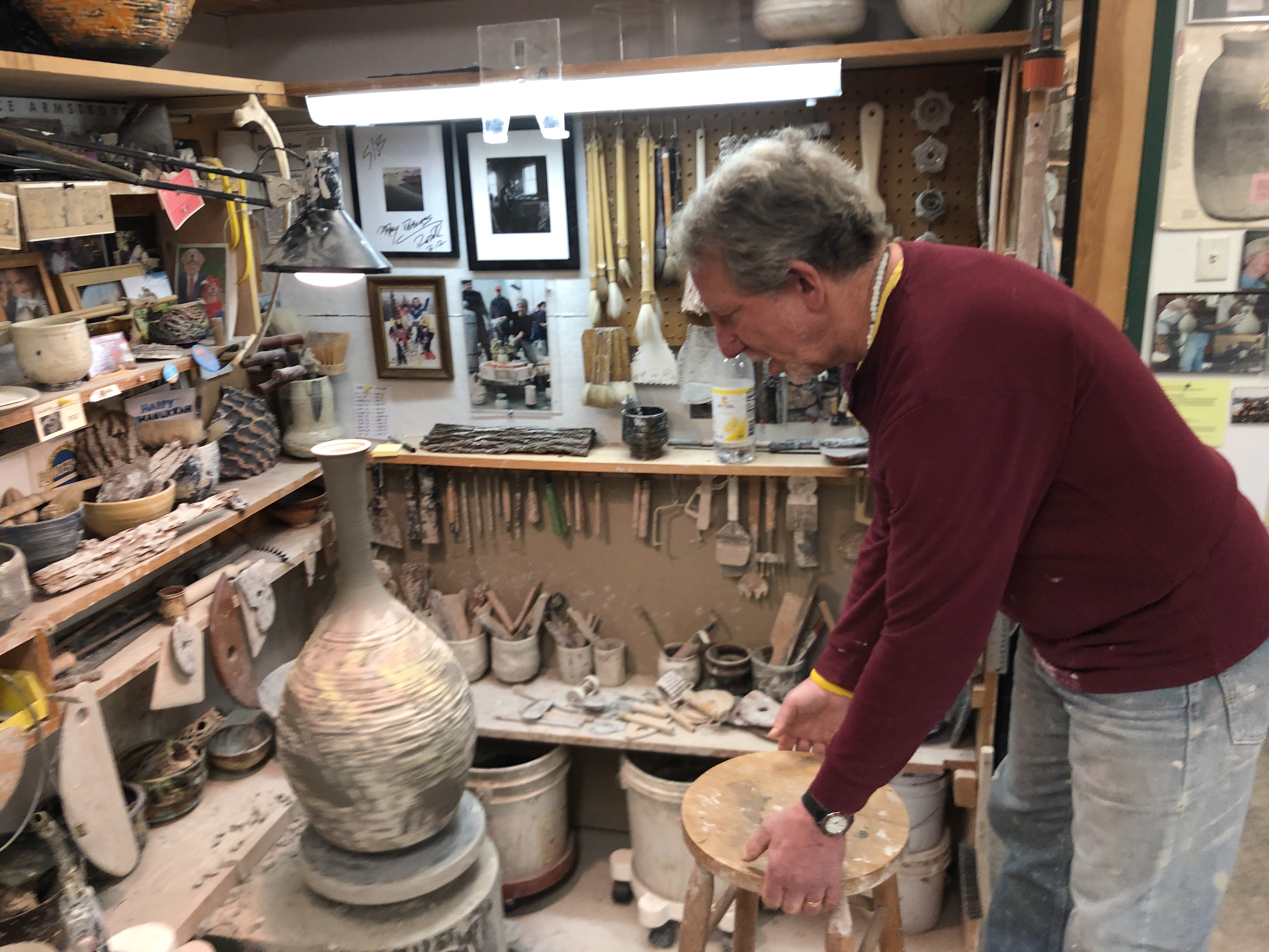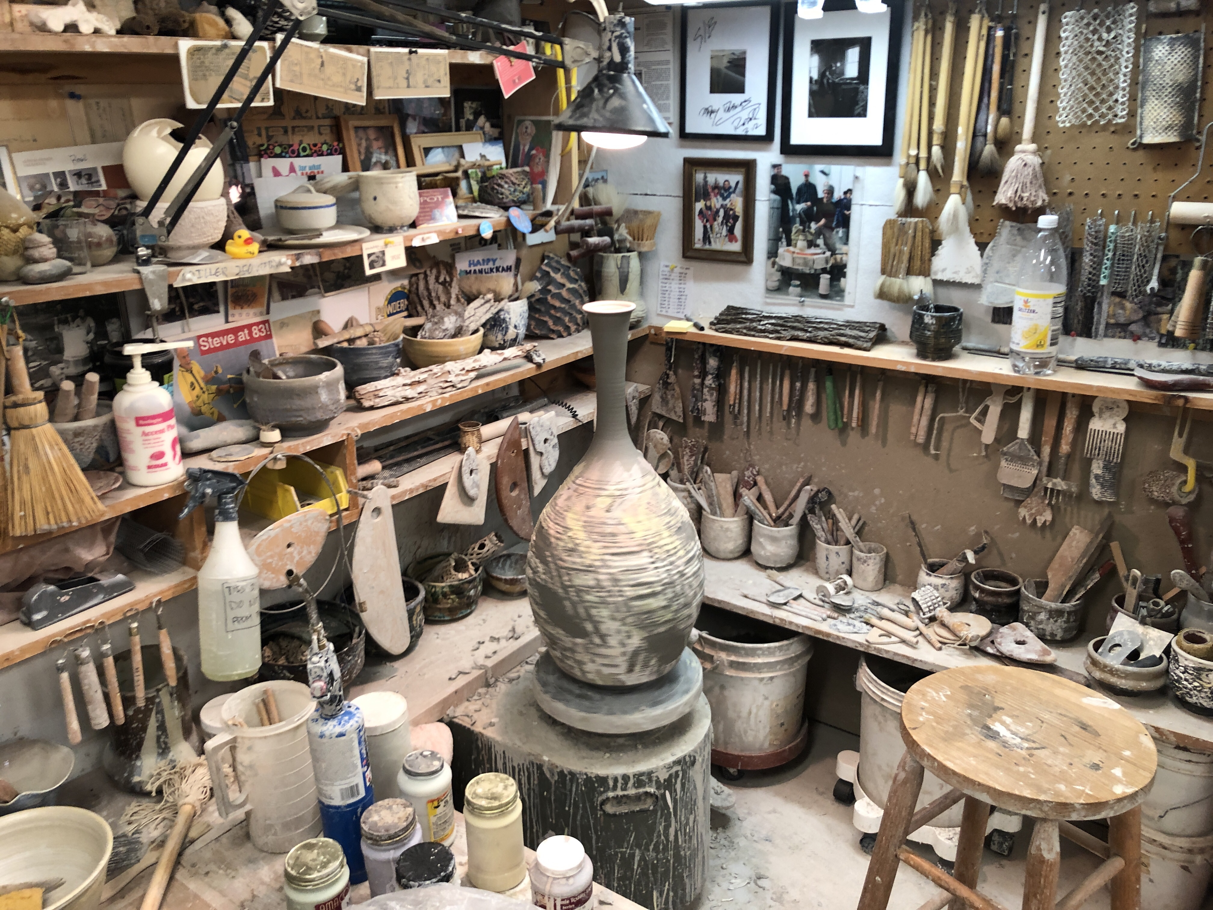 I took advantage of being there to see my friend Steve’s pottery studio. I sent Jarrod died 10 years ago. Steve chose to mark his sensitive I making a Chawan A day for 365 days. They are simple clay balls… Made all of these and created an experience called a Fathers Kaddish https://thepottersshopandschool.yolasite.com/a-fathers-kaddish.php