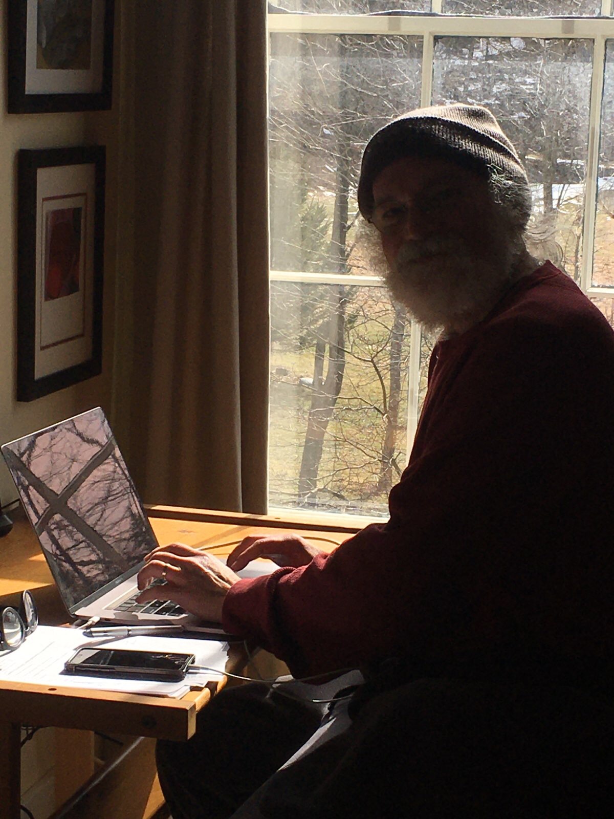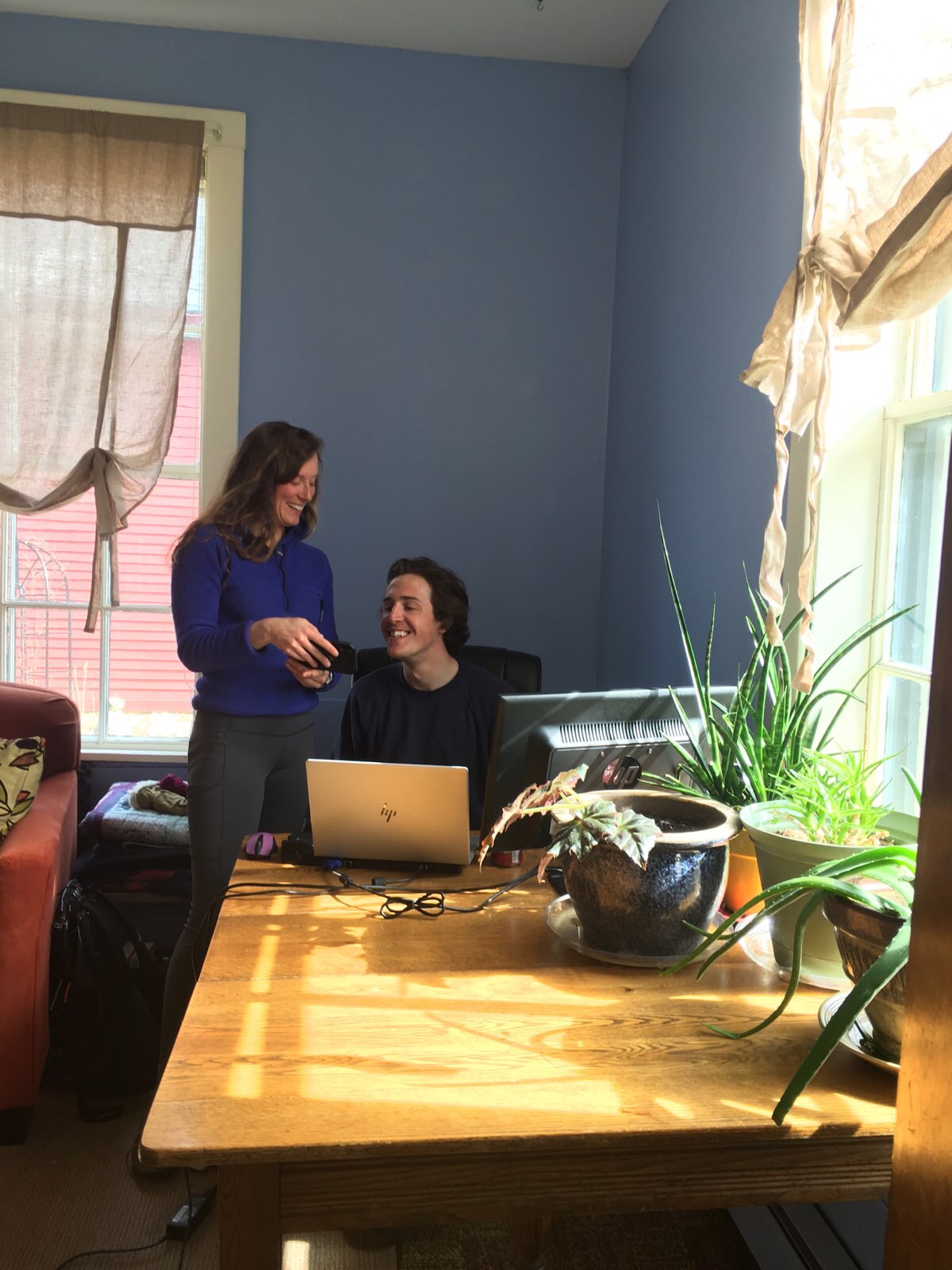 But what is an adjustment is that there are at least three sometimes four of us working at one time in the house. Diane took these pictures of Hunter, Caio, and me deep in the middle of our day jobs.