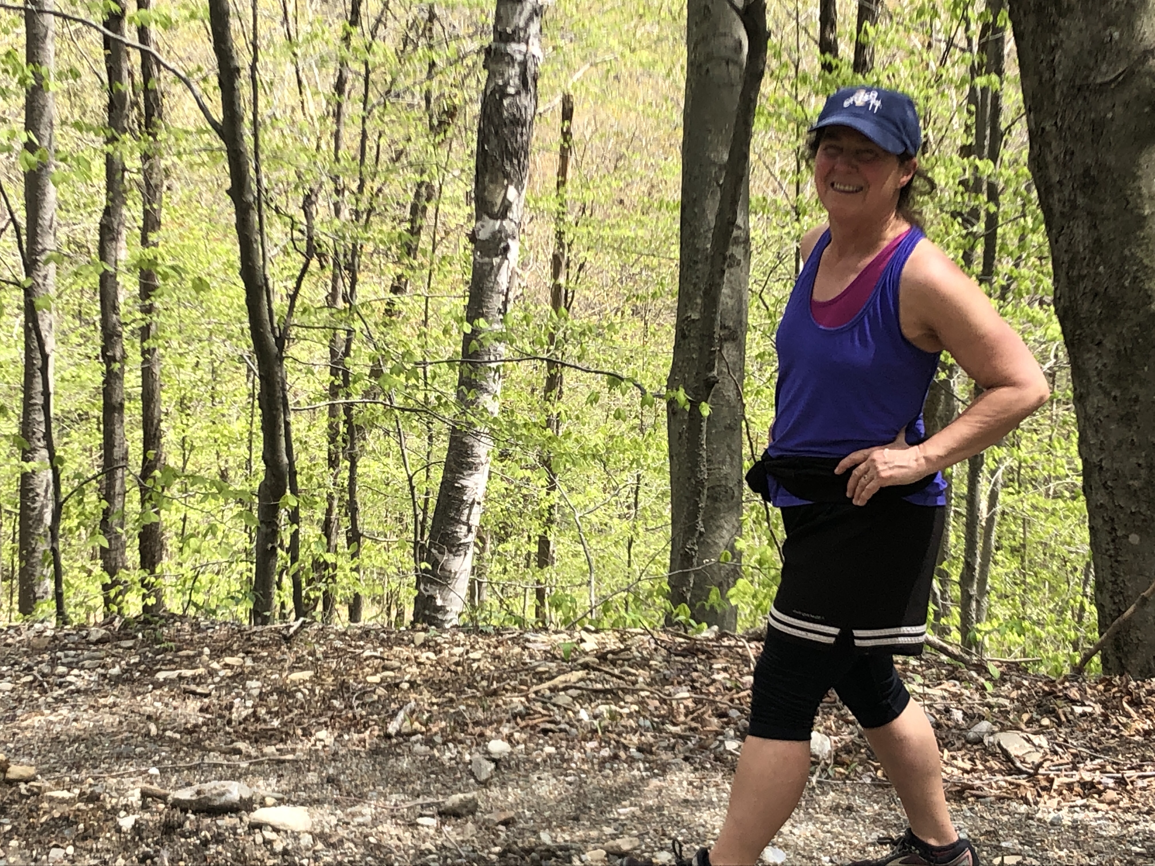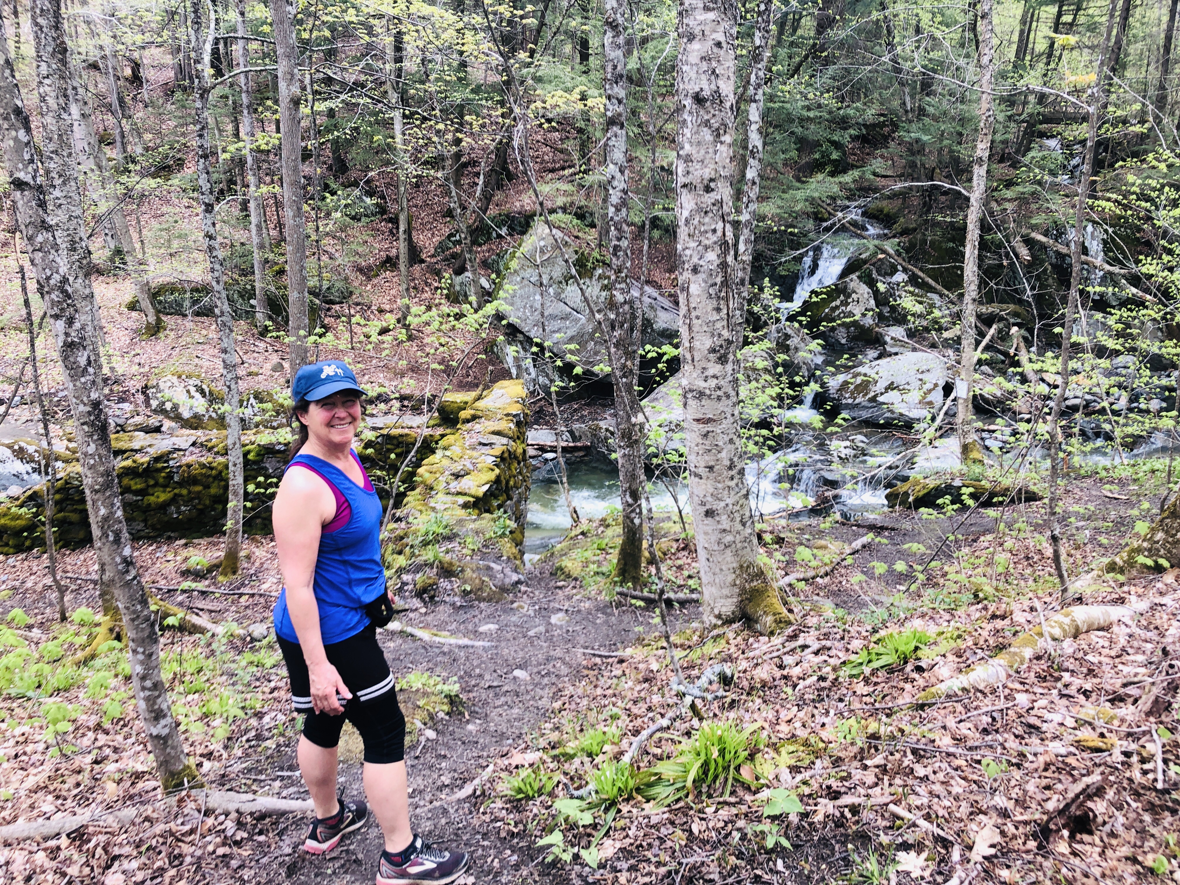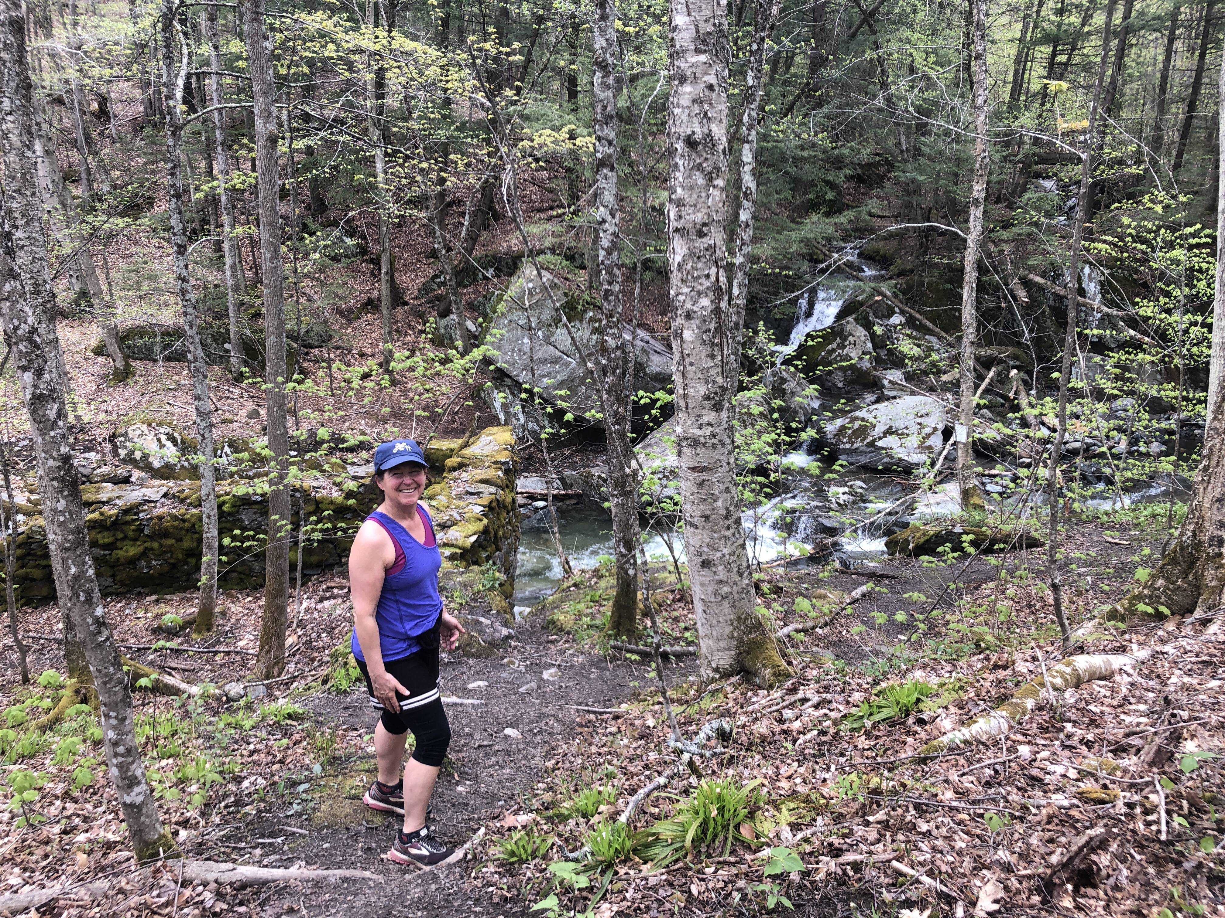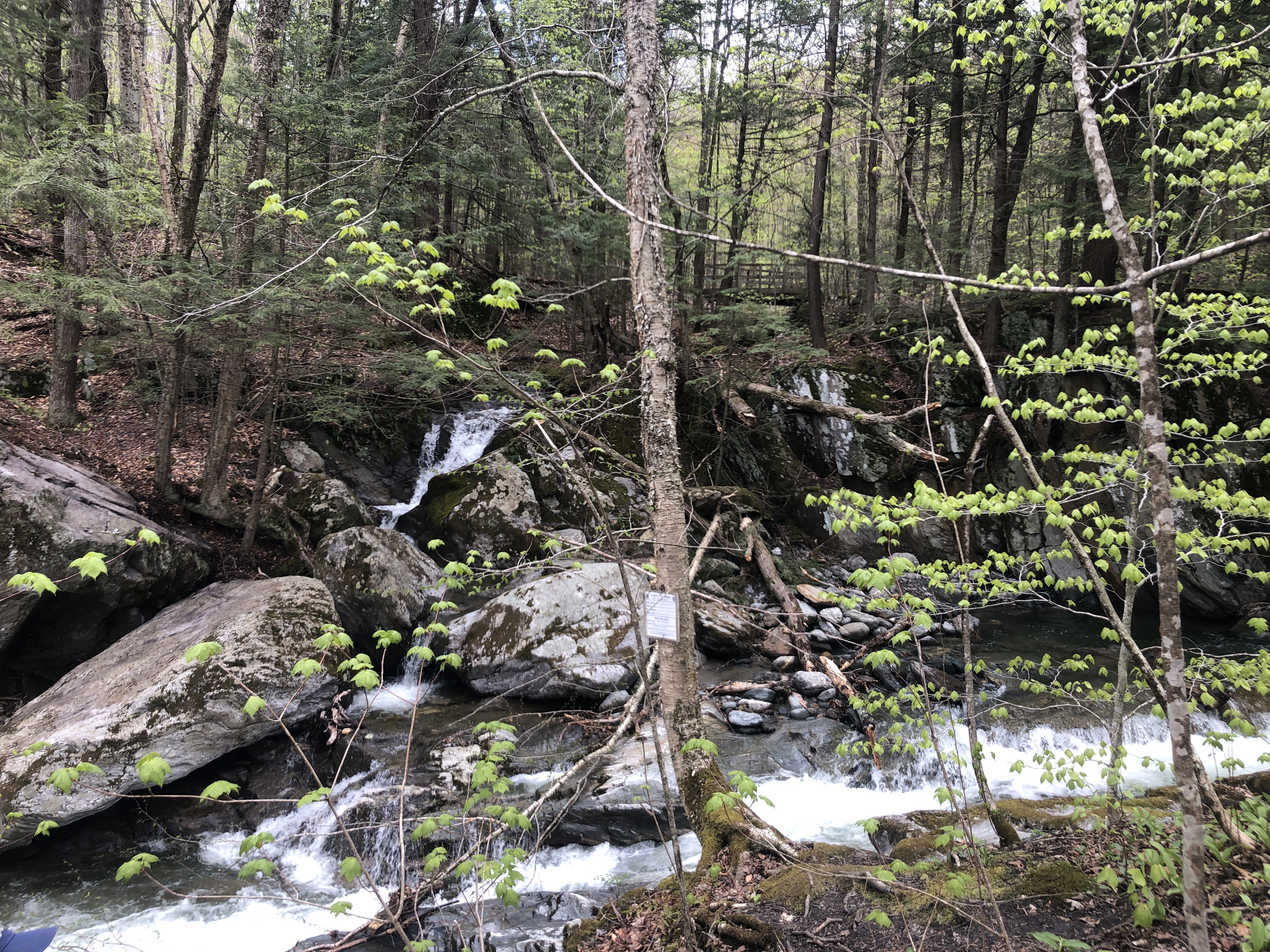 Late morning Diane and I did one of our favorite hikes in reverse. We walked/ran Up the catamount trail and down Honey Hollow. The trees had managed to sprout leaves in the last week so everything had that bright spring green.