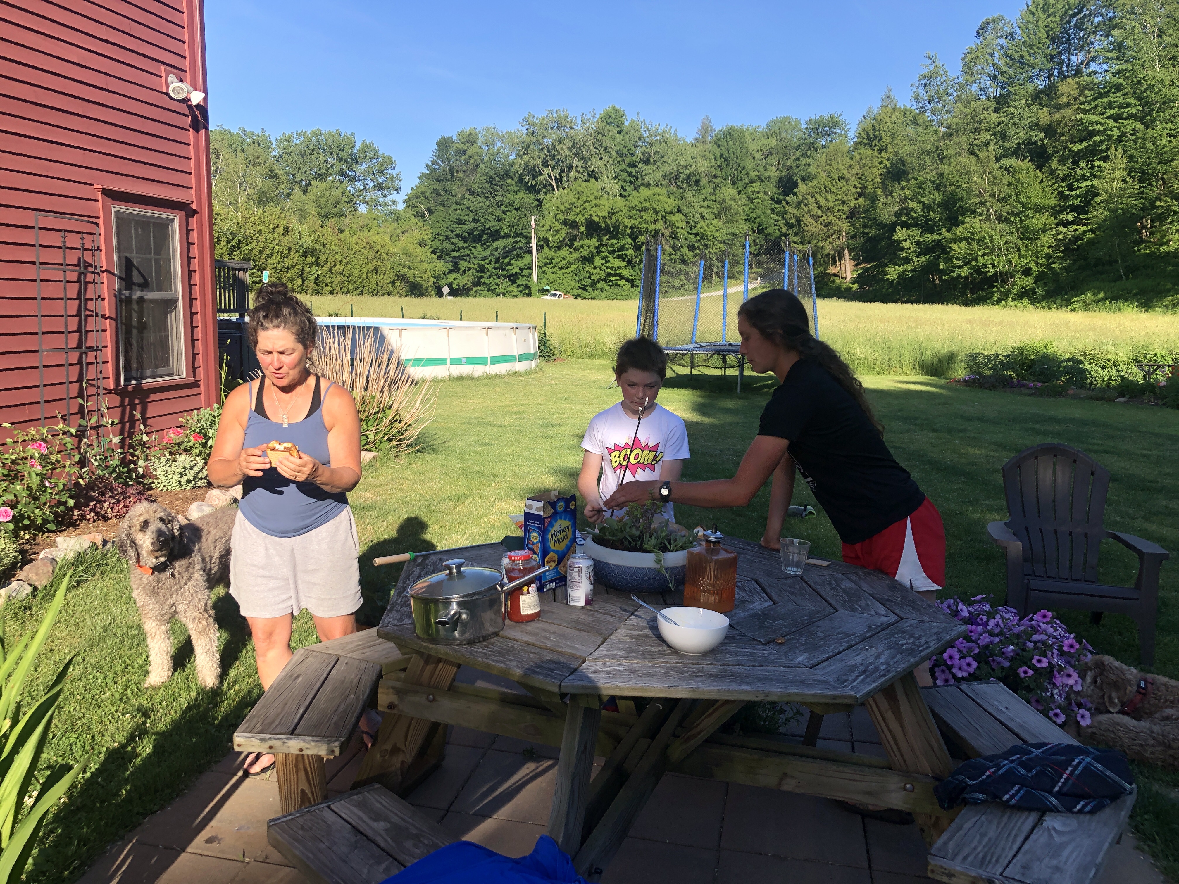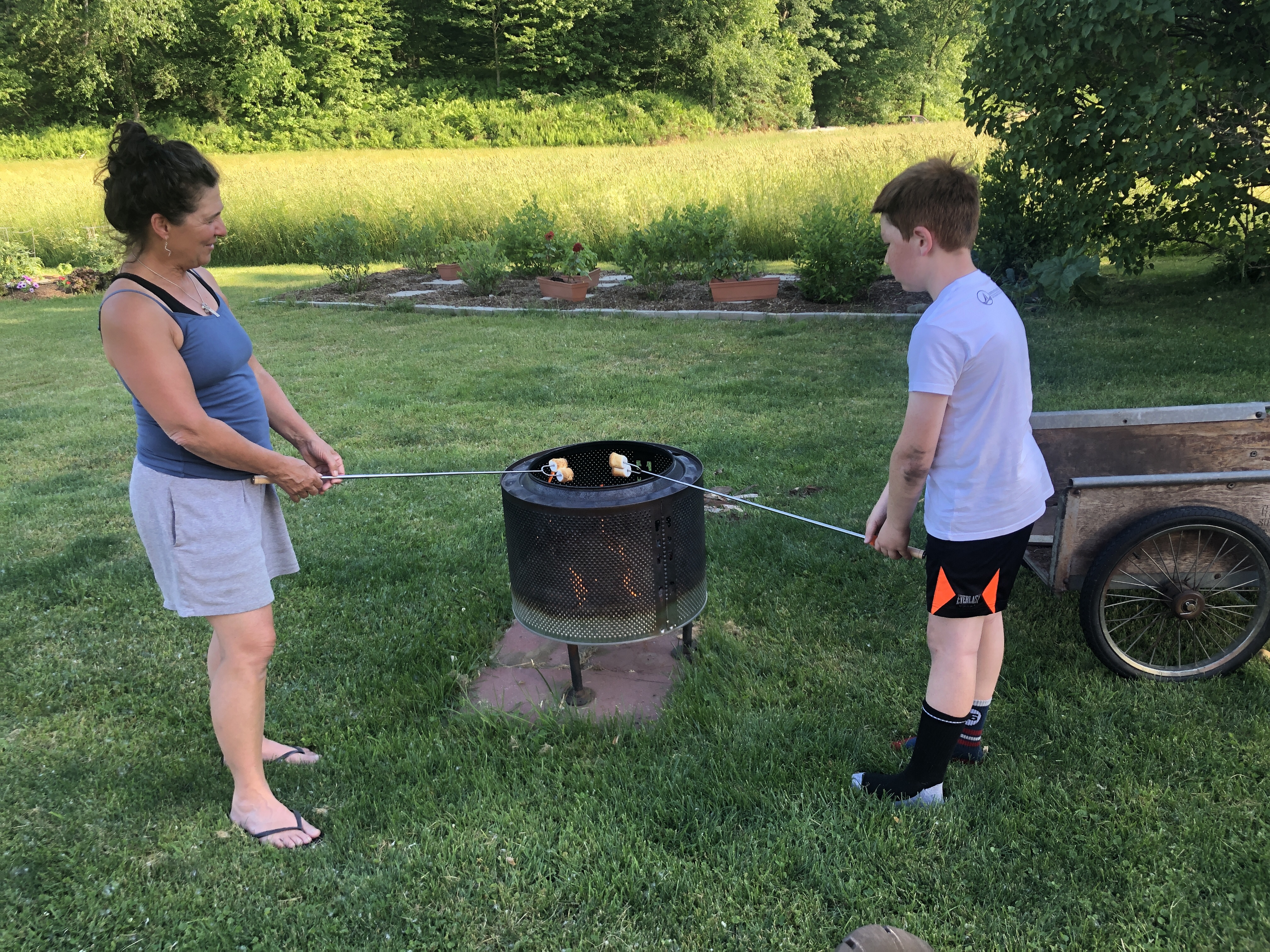 How are young friend Finn came to visit today. Our first outside visitor in a very long time. We stayed mostly outside and used masks while inside… It was sure good to see him. We floated in the pool, Finn helped us make a fire and we made s’more’s… And we made a cream Maura explosion in the backyard… Doesn’t get much better for a summer afternoon !