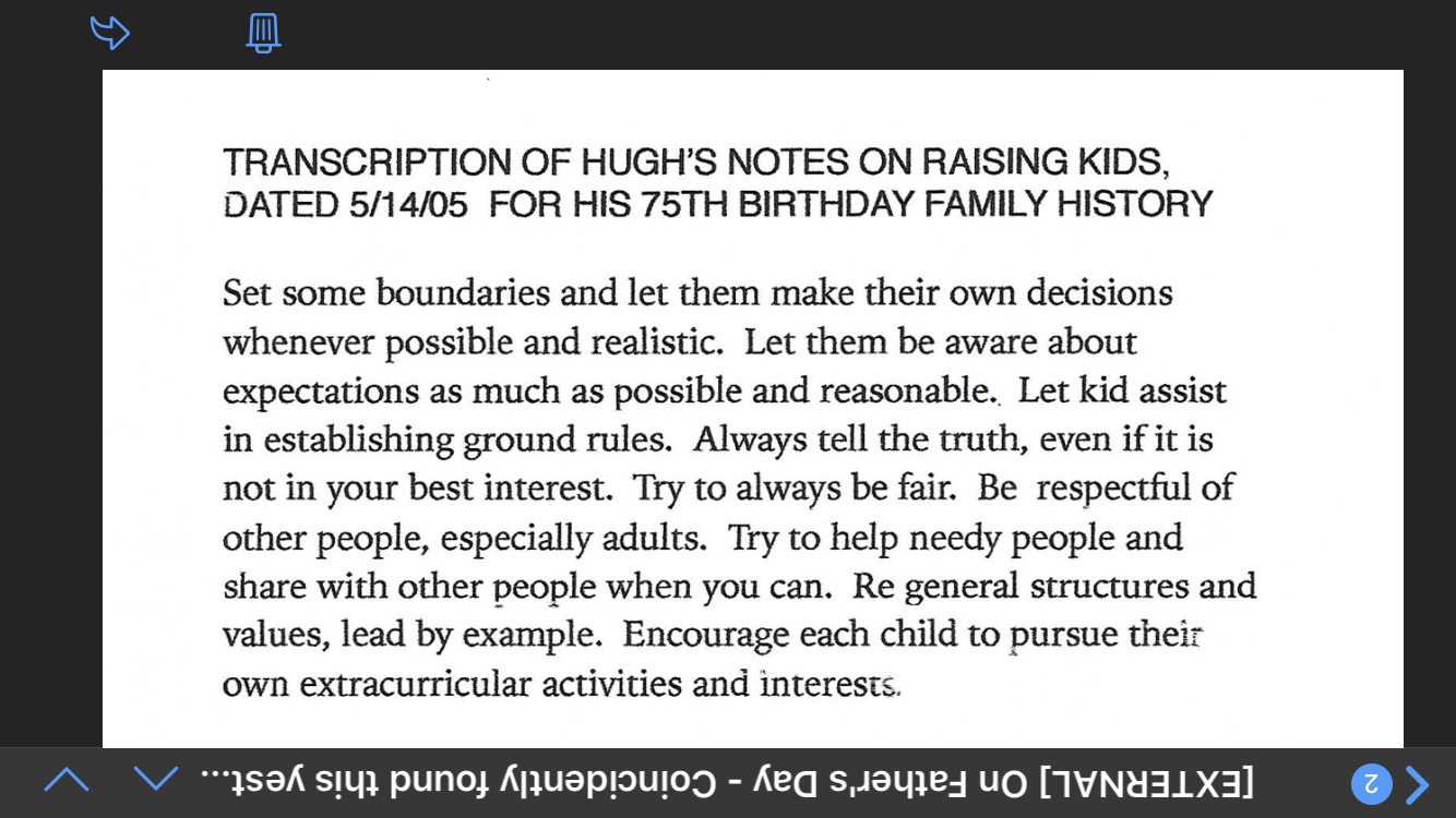 My mom found this great instructions that he had given us for raising kids back in 2005. He was a great example for being a dad