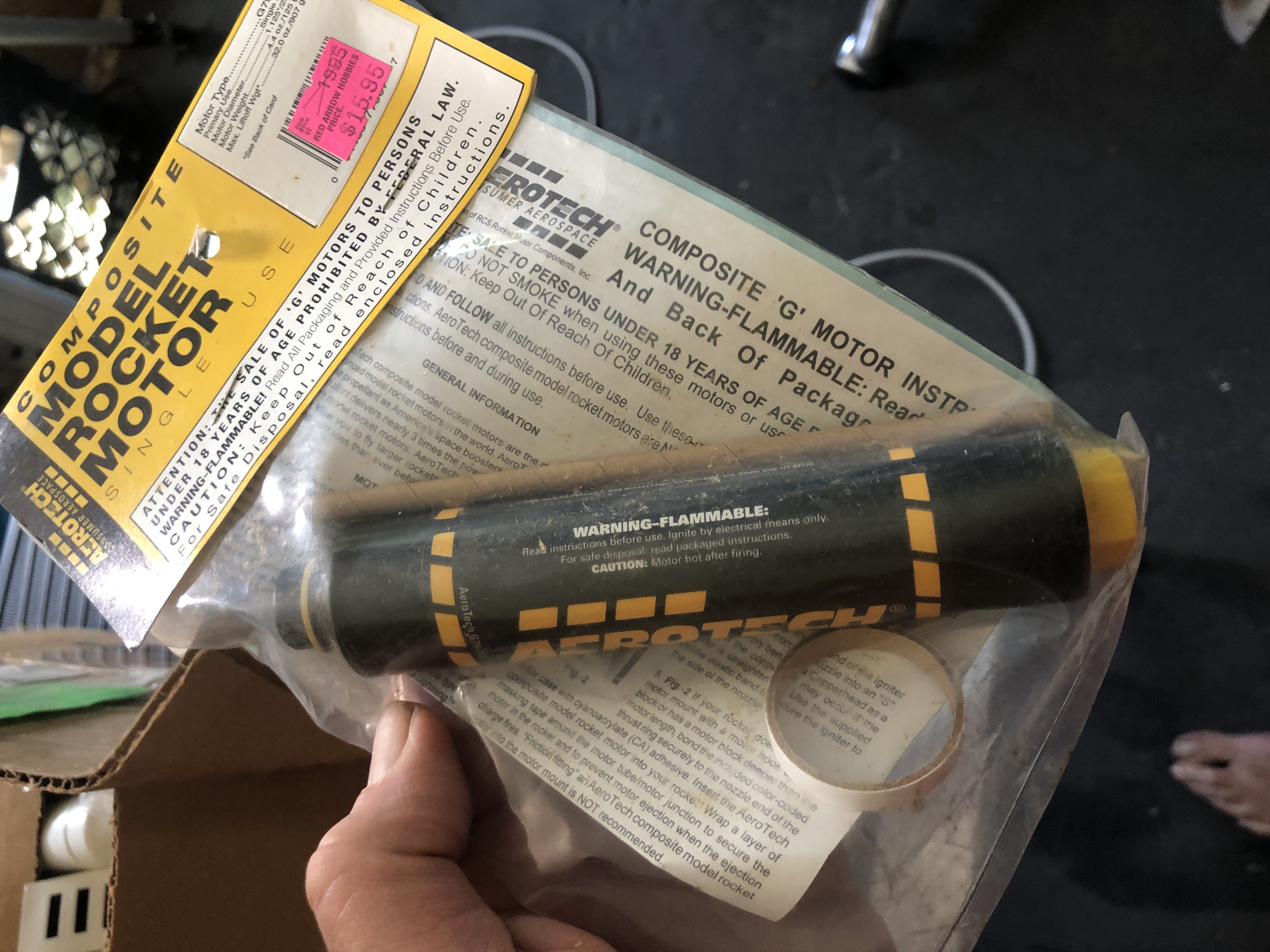 We were trying to find a way to launch Louise 3 1/2 pound head… We tried springs, we tried bungees… Which sort of worked but was kind of unimpressive I finally decided to resort to some “G” rocket engines… These are much bigger than the kind you let your kids play with