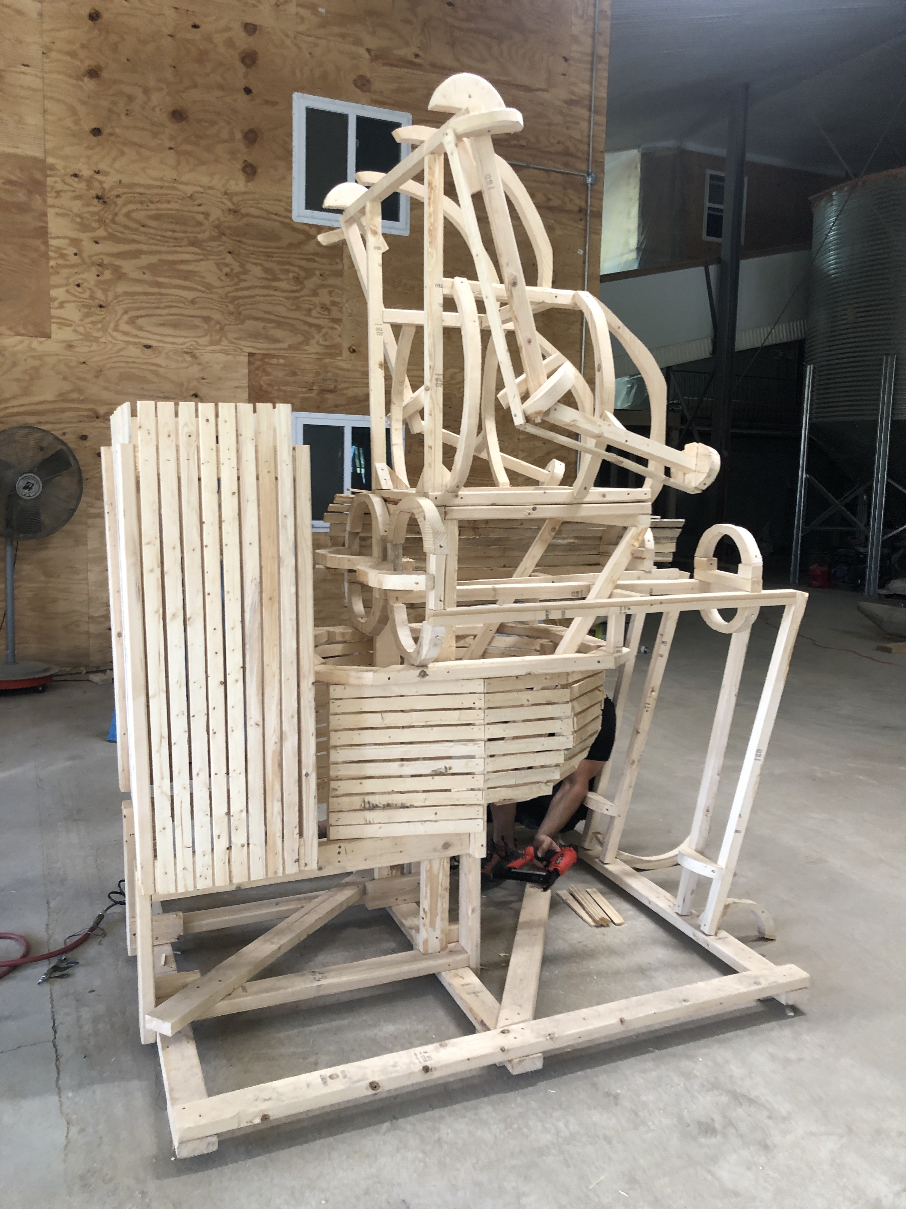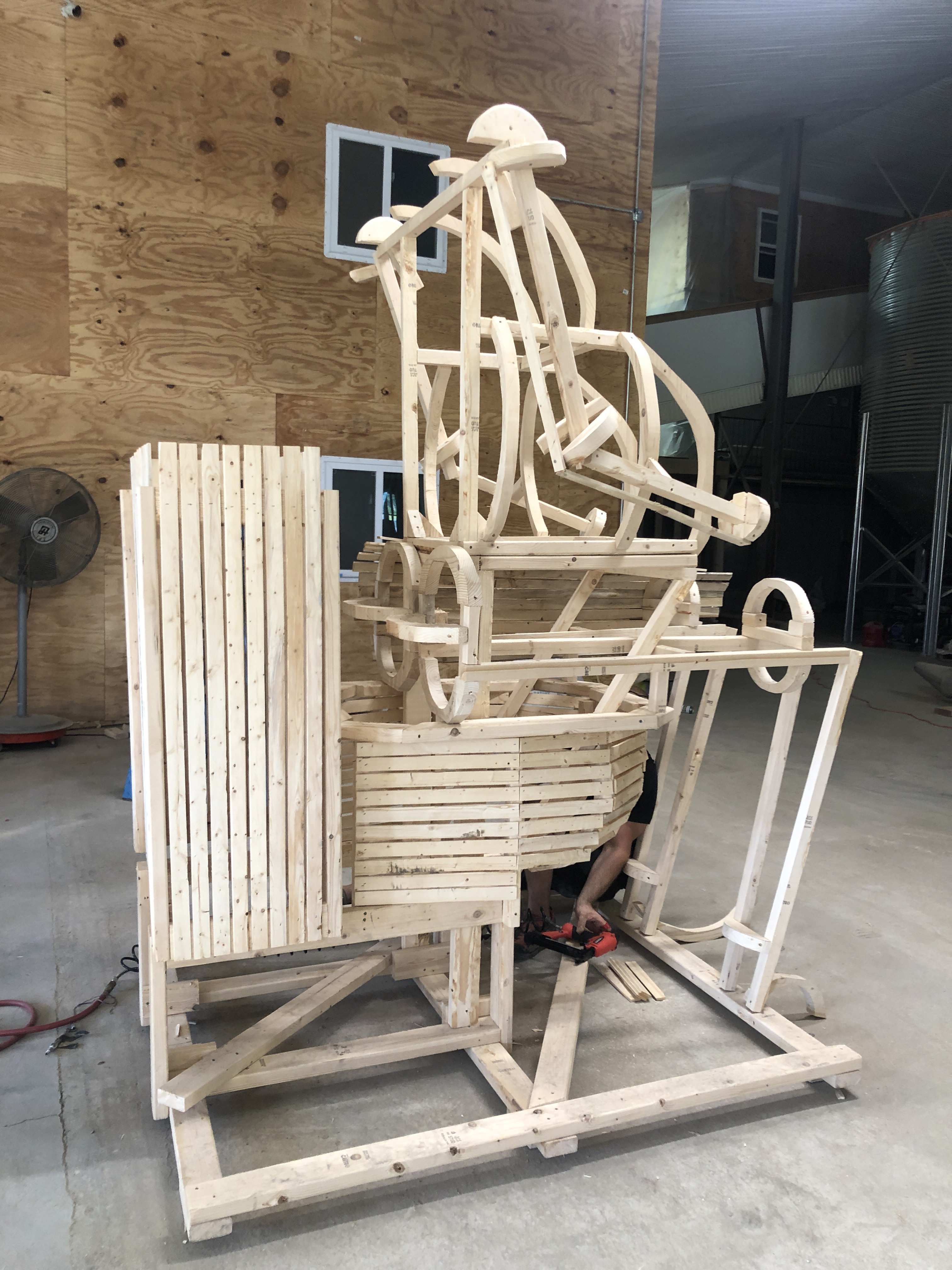 Spent most of the day working with my friends on the fire and water festival. We’re building a burning sculpture… Nowhere near as nice as our friend Chris could do it… But it’s fun to try to build something. This will be a 10 foot tall figure of king Louis sitting on his ‘throne’ Who’s head flies off at just the right moment.