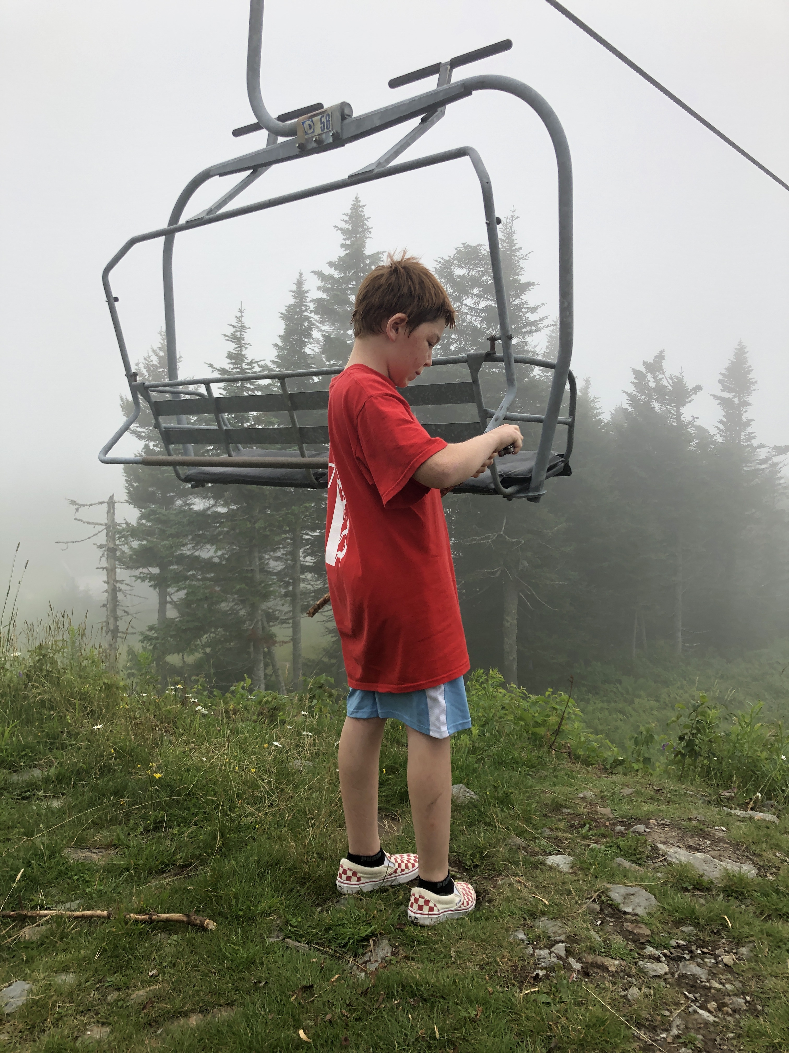 Long complicated day at work… But strangely fine. At Six Diane are young friend Finn And I climbed up Bolton. Finn had never been up that mountain before… So it was fun. We hiked up in a thick fog. It was actually cold enough at the top that we needed jackets. Hard to believe that it was in the 90s just last week and will be again this week
