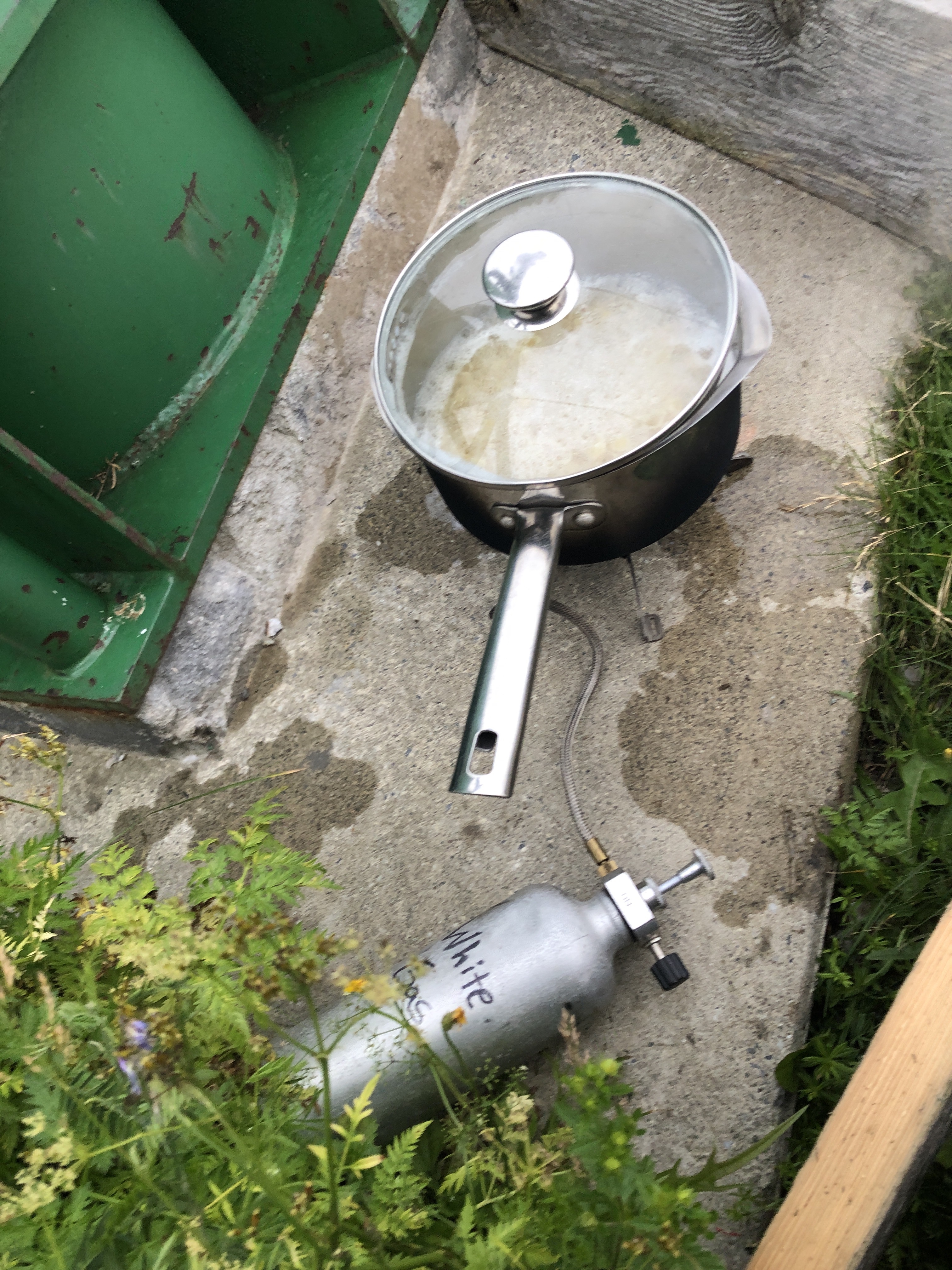 The three of us cooked macaroni and cheese on my old gas stove up there. Nothing taste better than eating outside like that