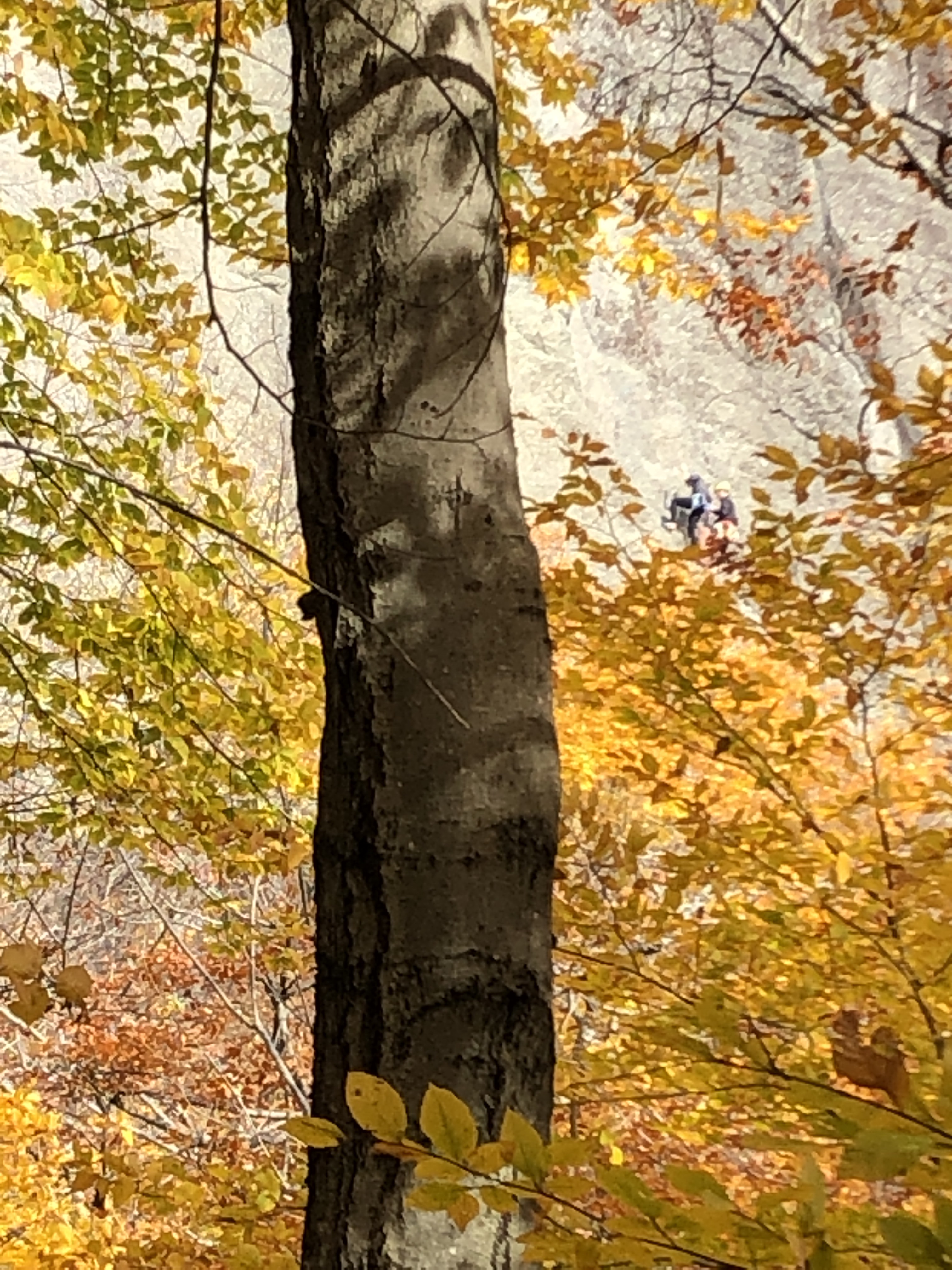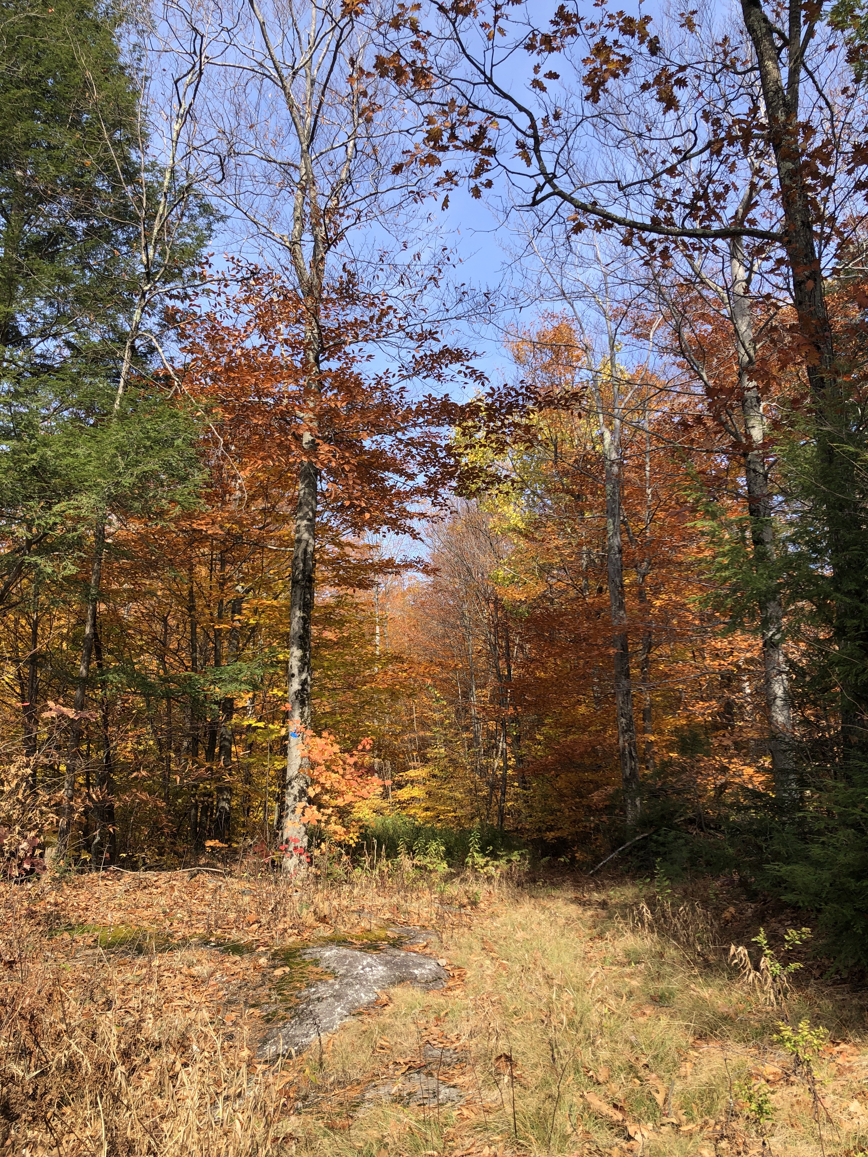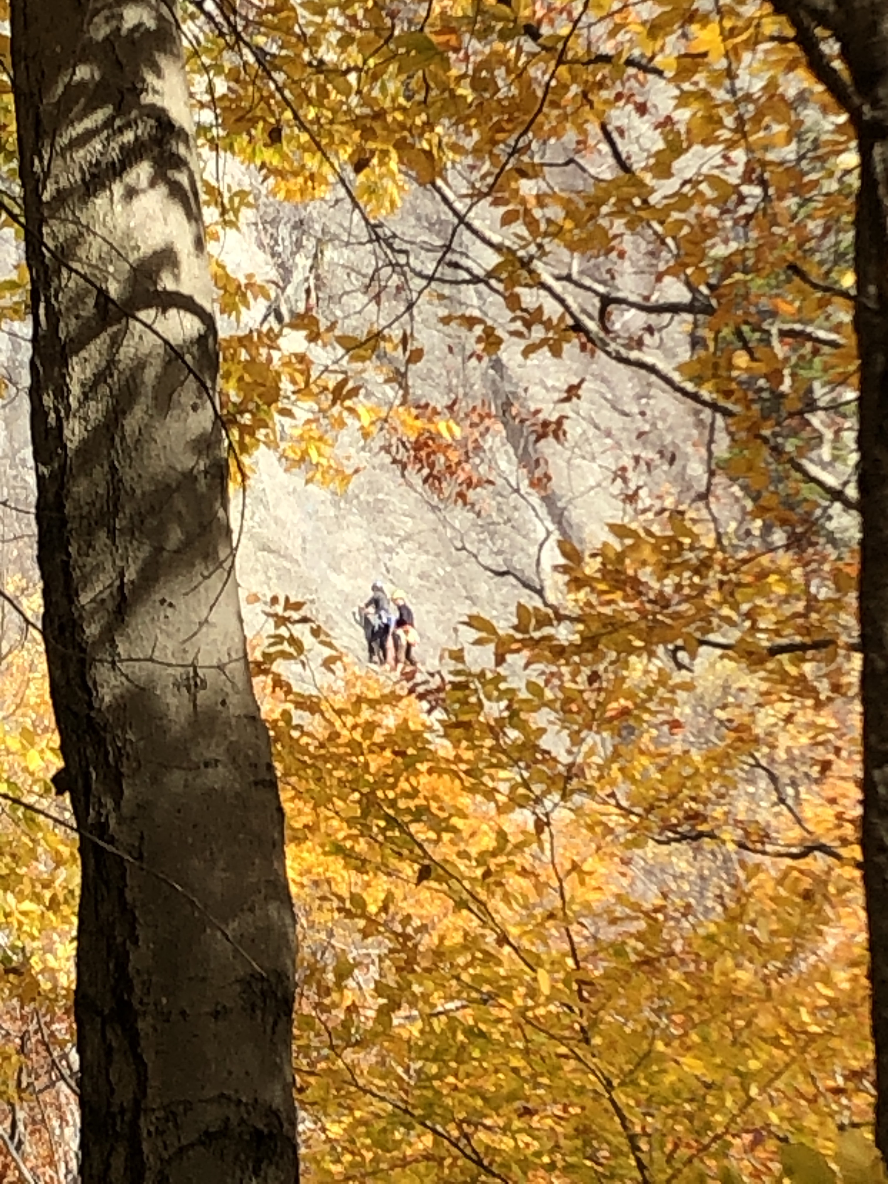 Today we started the catamount Trail north of I $.89. It’s down a little tiny road called Pineo Brook… It’s a private road and landowners and super excited about Hikers… But he’s letting us do it. We hiked up about 2 1/2 miles on the trail up to assure rock face when we saw some people climbing. It’s just beautiful
