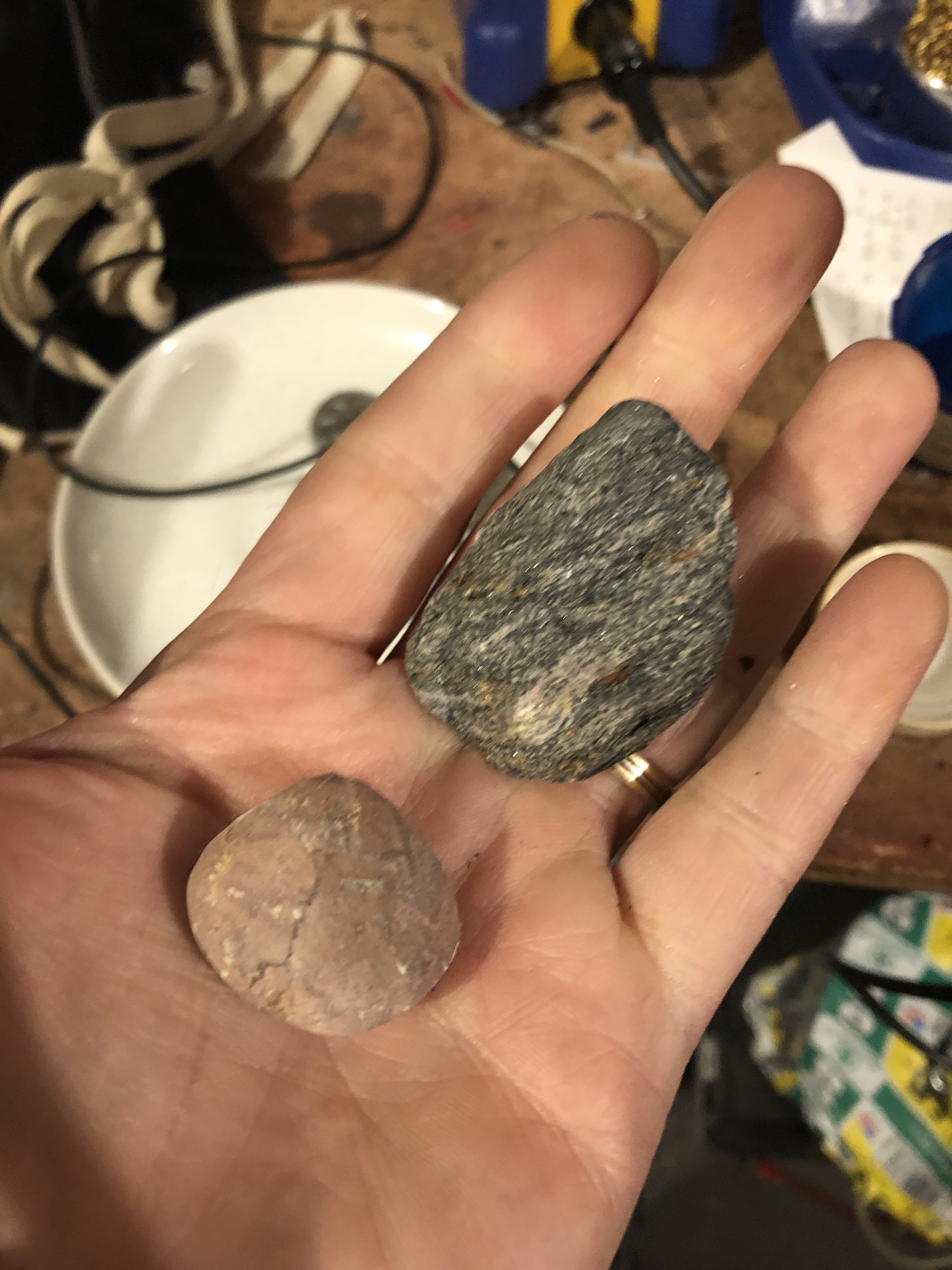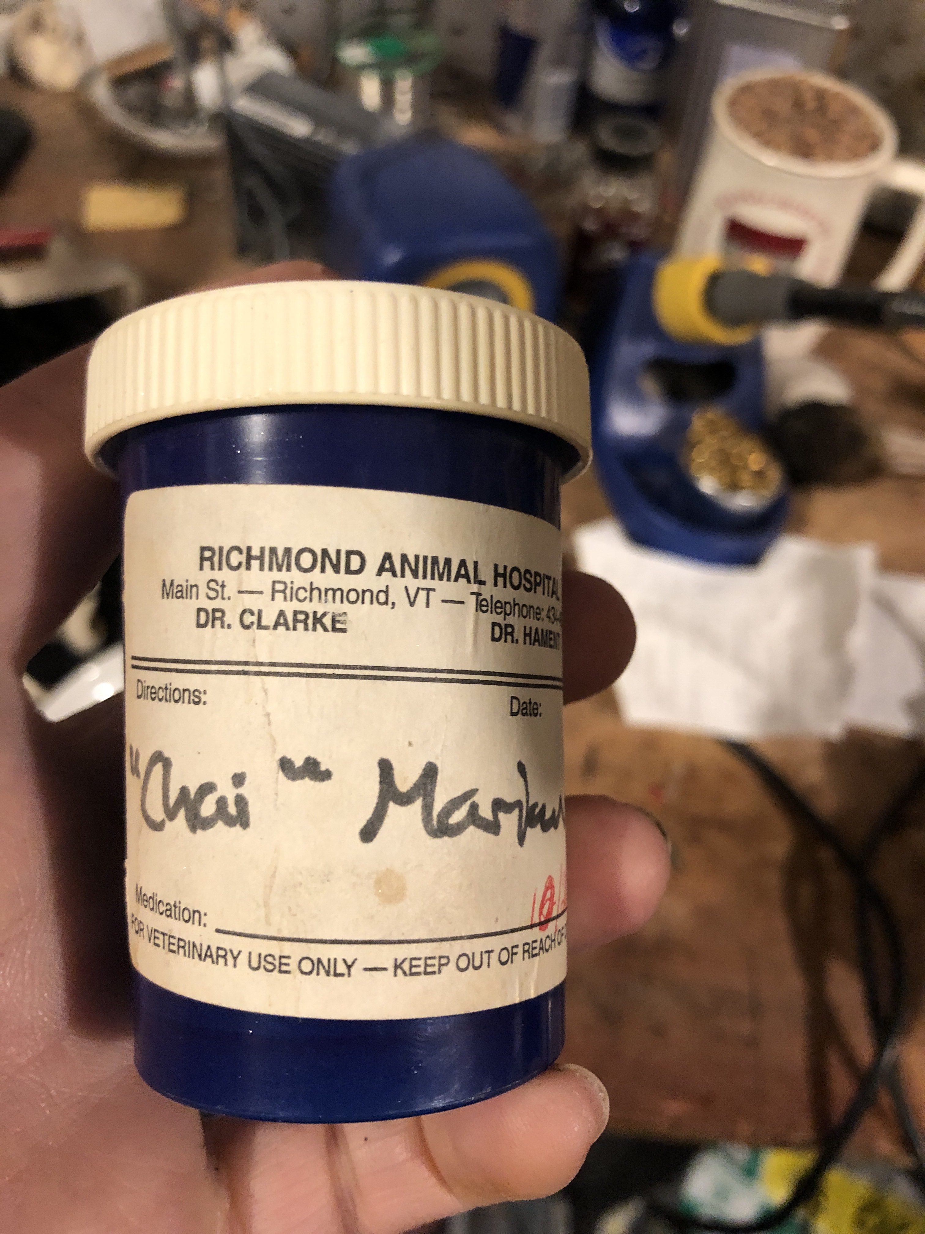 It’s so strange walking around the house and finding chai and Satoris things.… their toys, Bowls, leashes , collars… I miss those girls a lot. I miss the noises that they made. Today I came across a strange relic… It’s a container With two of the three stones that had to be surgically removed from chai over the years. She loves chasing and eating rocks.… It actually felt good to find them