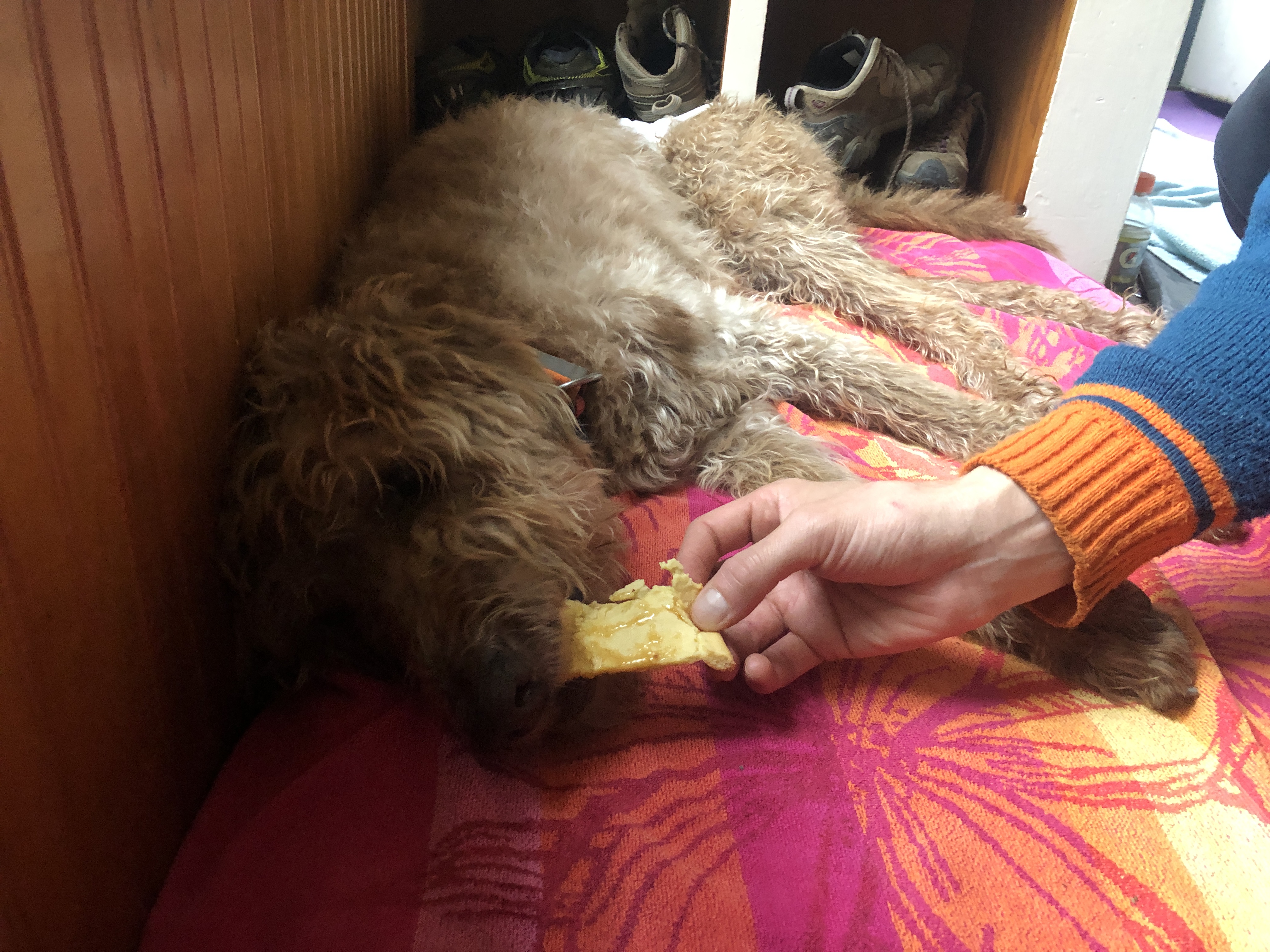 We found some stuff she can eat. She had some Dutch babies with maple syrup and some of her favorite Cabot sliced American cheese… Was time she’d really eaten in several days