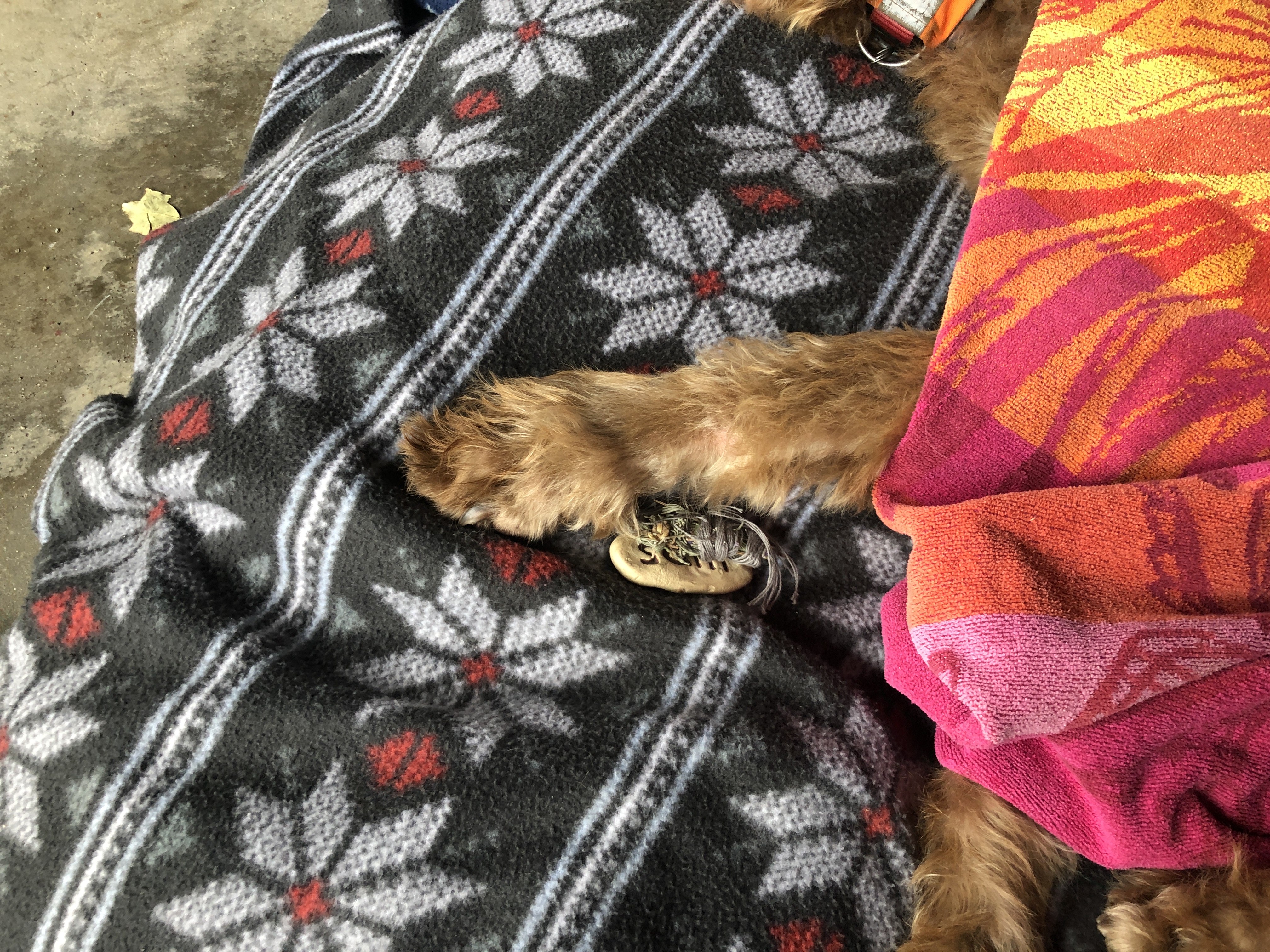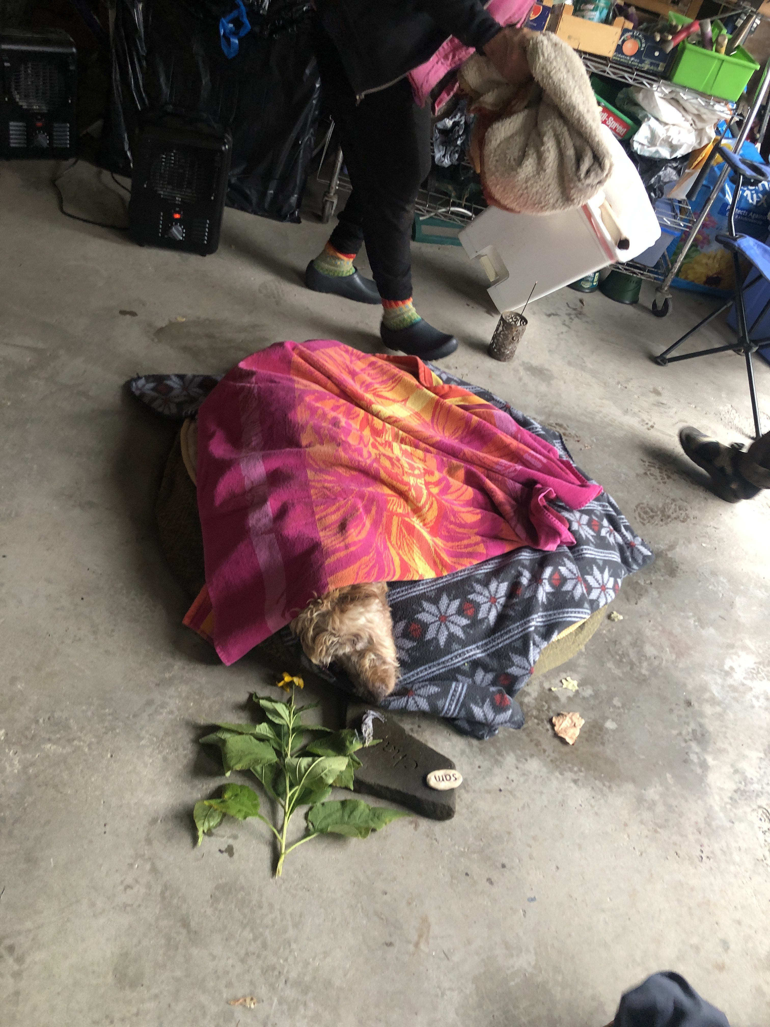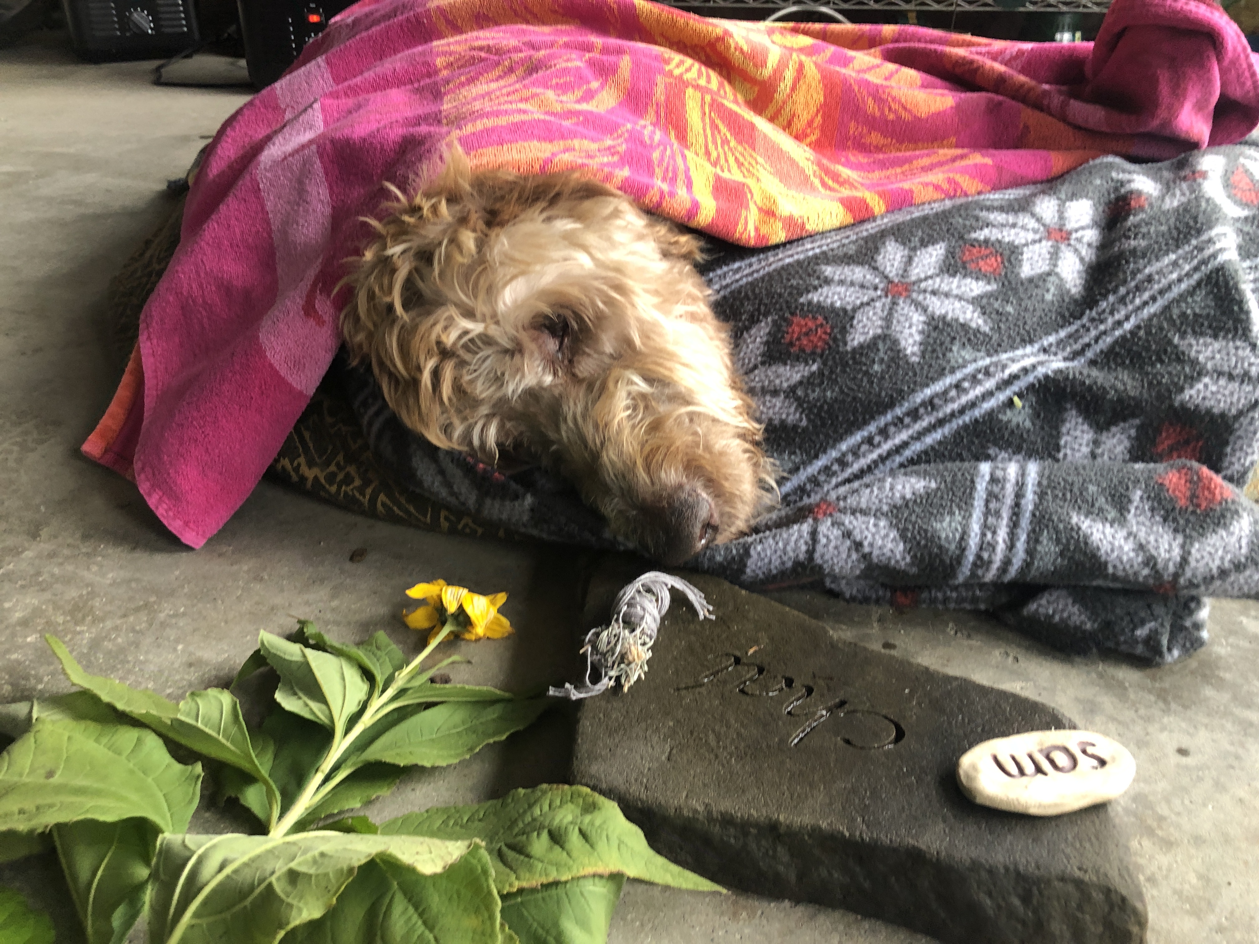 Around 12:30 colleen… Our wonderful holistic vet showed up and we catch outside to the garage. We put some heaters in there and put her on her bed… A place where she loves to hang out.… It was a very peaceful time
