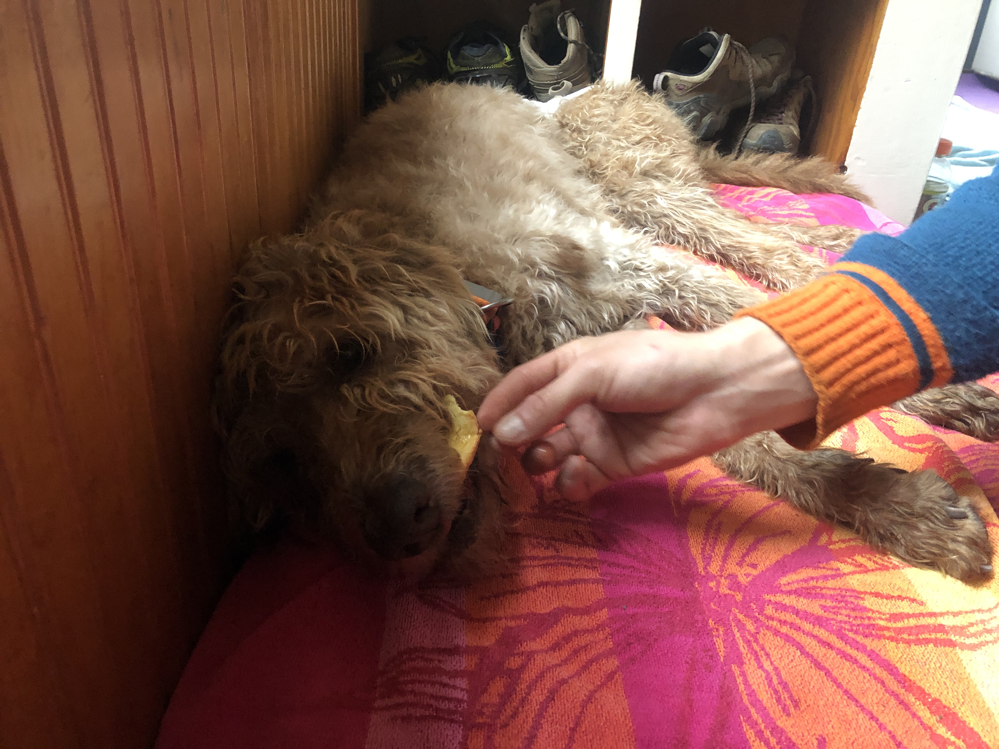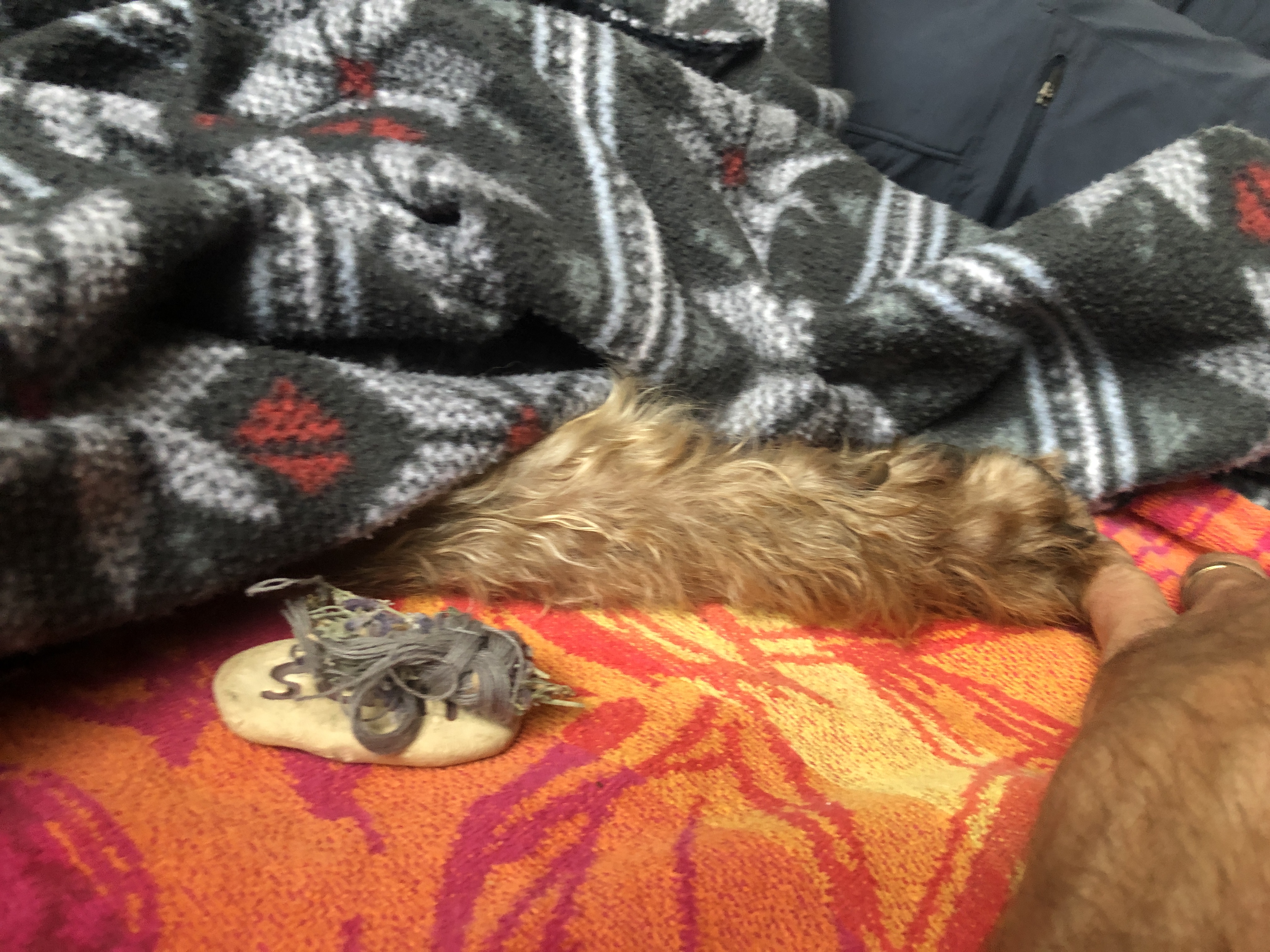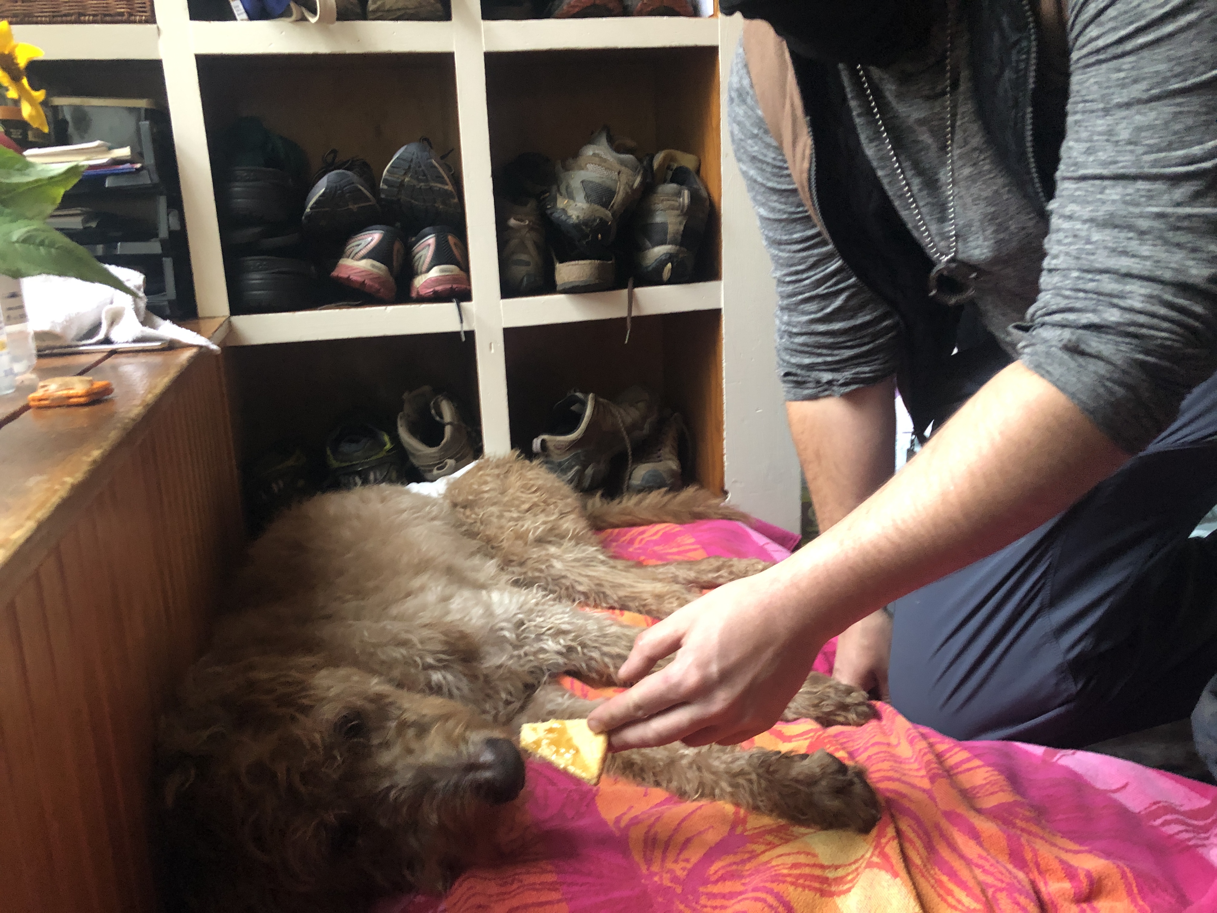 Around 12:30 colleen… Our wonderful holistic vet showed up and we catch outside to the garage. We put some heaters in there and put her on her bed… A place where she loves to hang out.… It was a very peaceful time