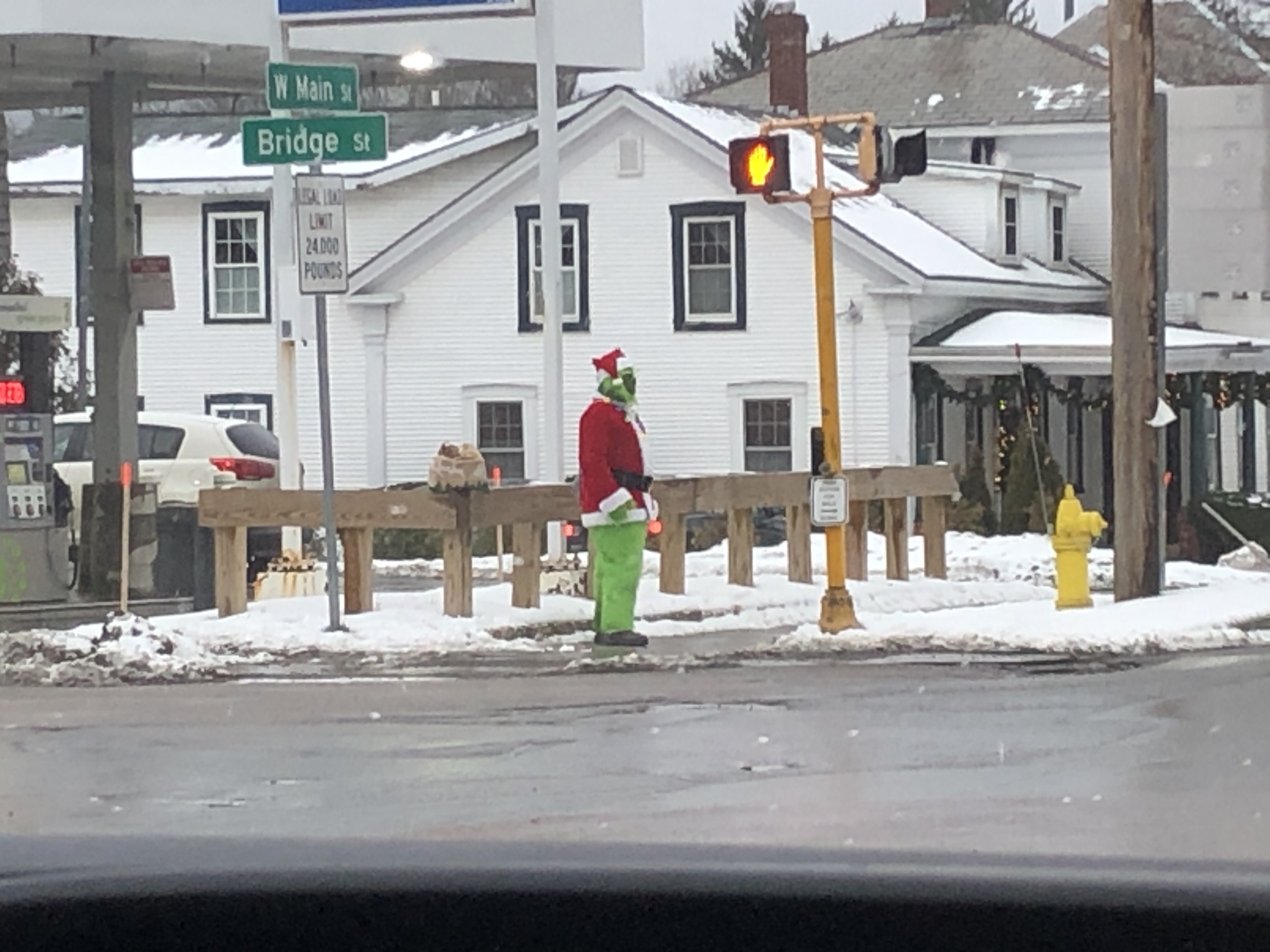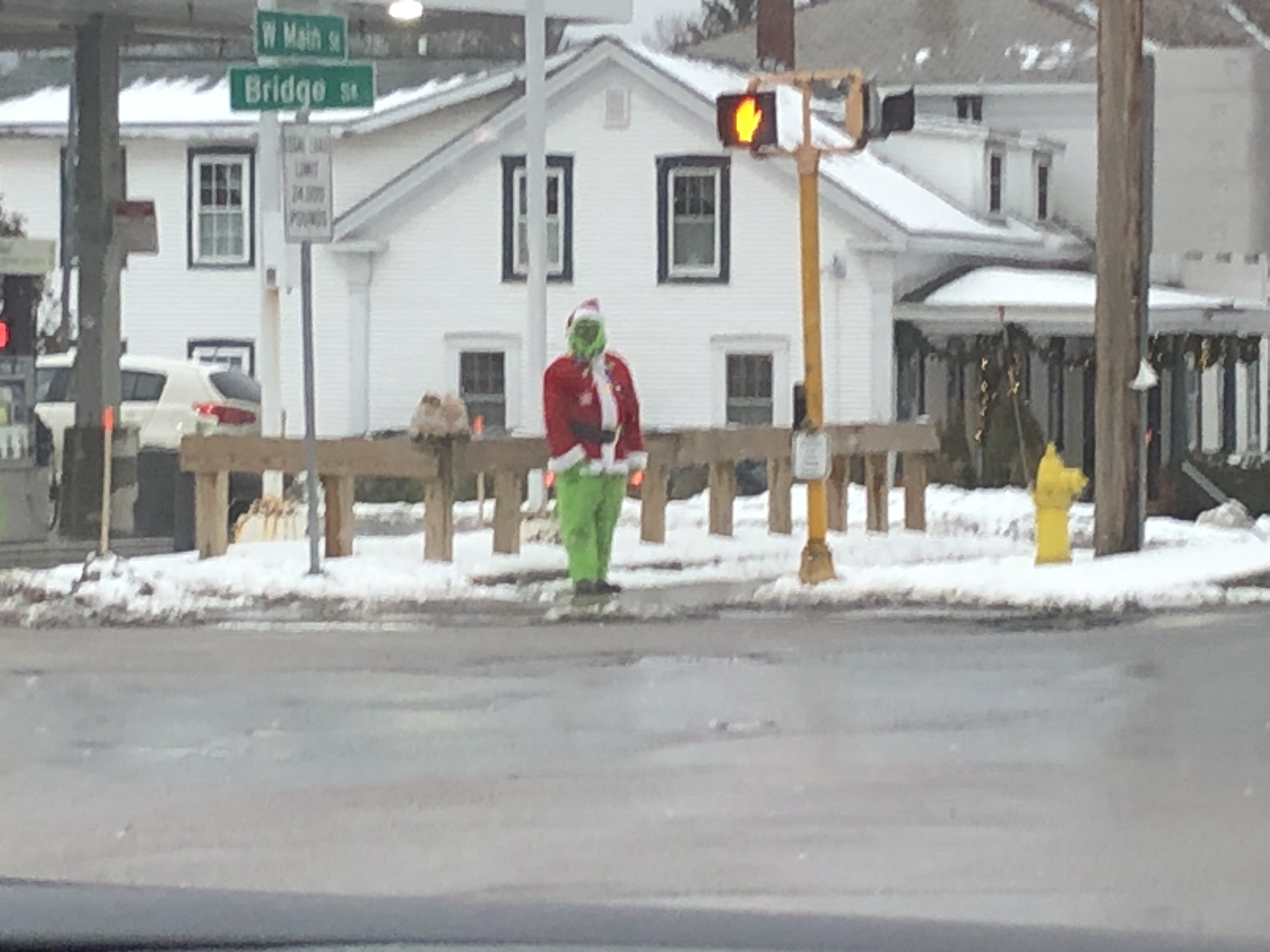 ‘Diane and I were driving through town this afternoon and we saw this guy standing on the corner… He was still there an hour and a half later. It was great to see someone in the Christma mood